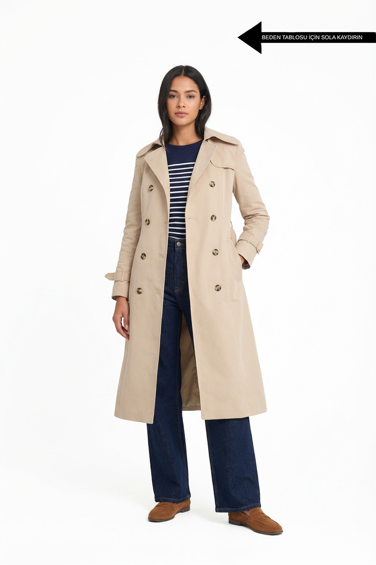 You can choose the trench coat, which attracts attention with its double-breasted closure and belt detail, in your daily style, or you can combine it with a fine-heeled shoe and skirt for night elegance.