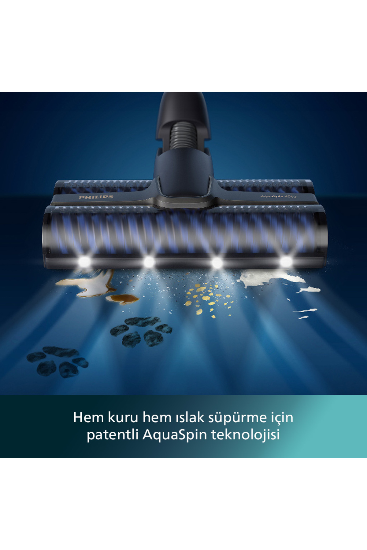 Wipe with a single vacuum cleaner, draw and sweep liquids Dry sweeper head and handheld use AquaSpin brushes that remain always clean Automatic self-cleaning and charging station in 4 minutes Always clean with clean water: PowerCyclone Aqua Single Vacuum Cleaner 3 operations With a single vacuum cleaner, you can sweep and wipe your floors wet and dry.
