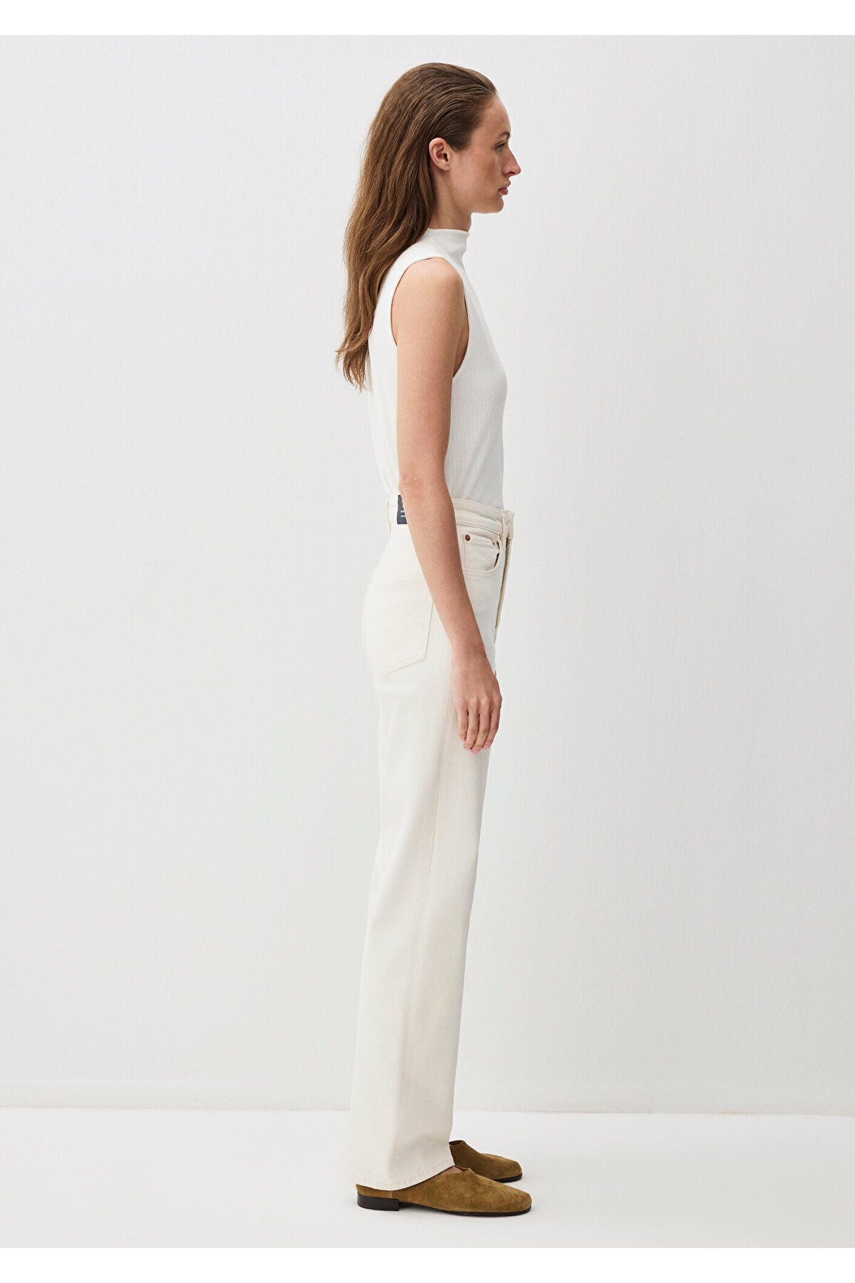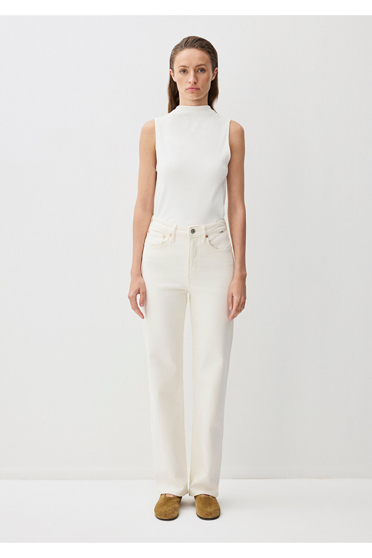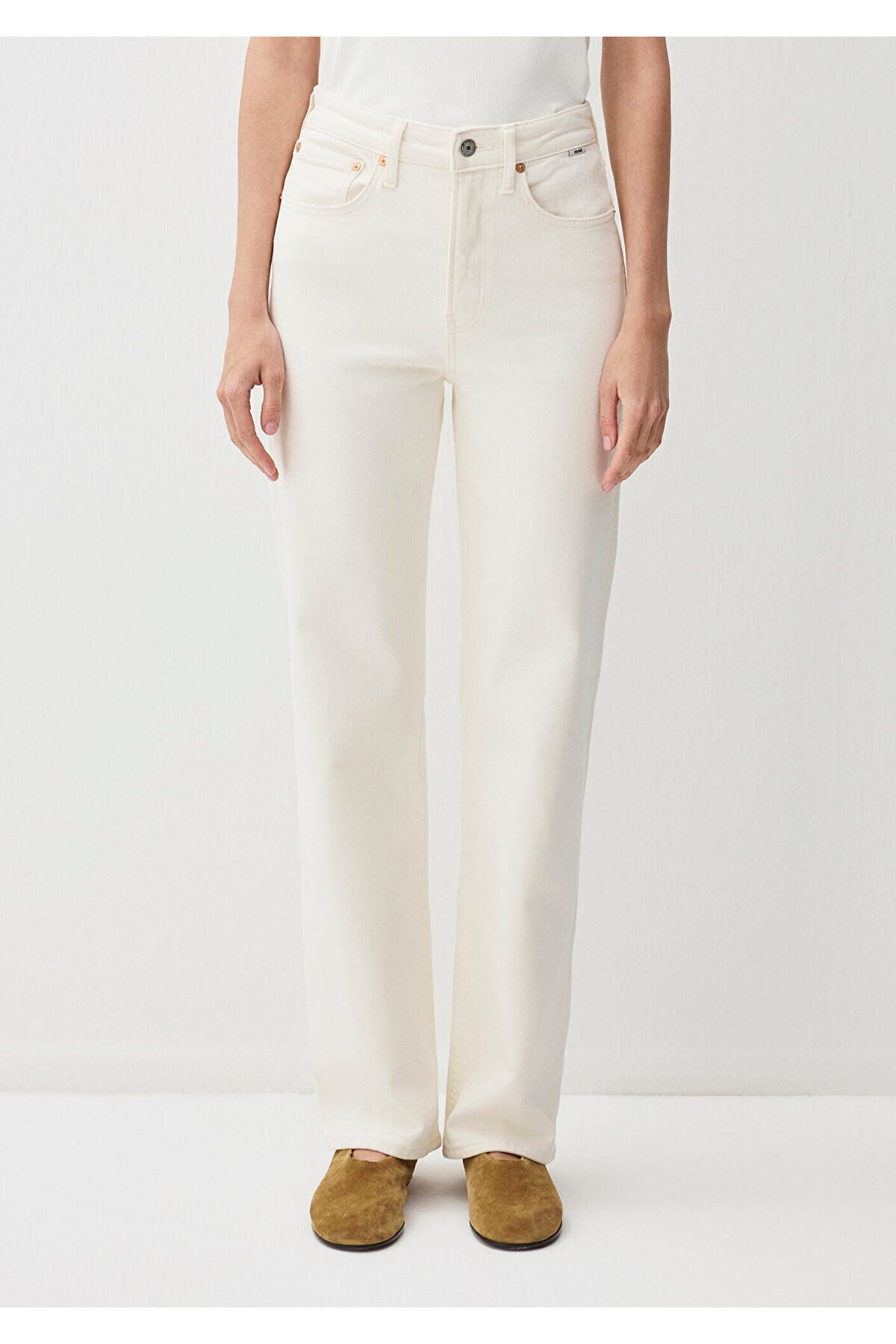 Straight High Waist Flat Leg Mannequin size: Height: 175 cm / Waist: 57 cm /Chest: 76 cm / Hip: 89 cm Materiel: 98% Cotton 2% Elastane Fabric Type: Denim Cuff: Flat Leg Sleeve: Flat Leg Gender: Women Fit: Straight Production Location: Turkey Waist: High Waist