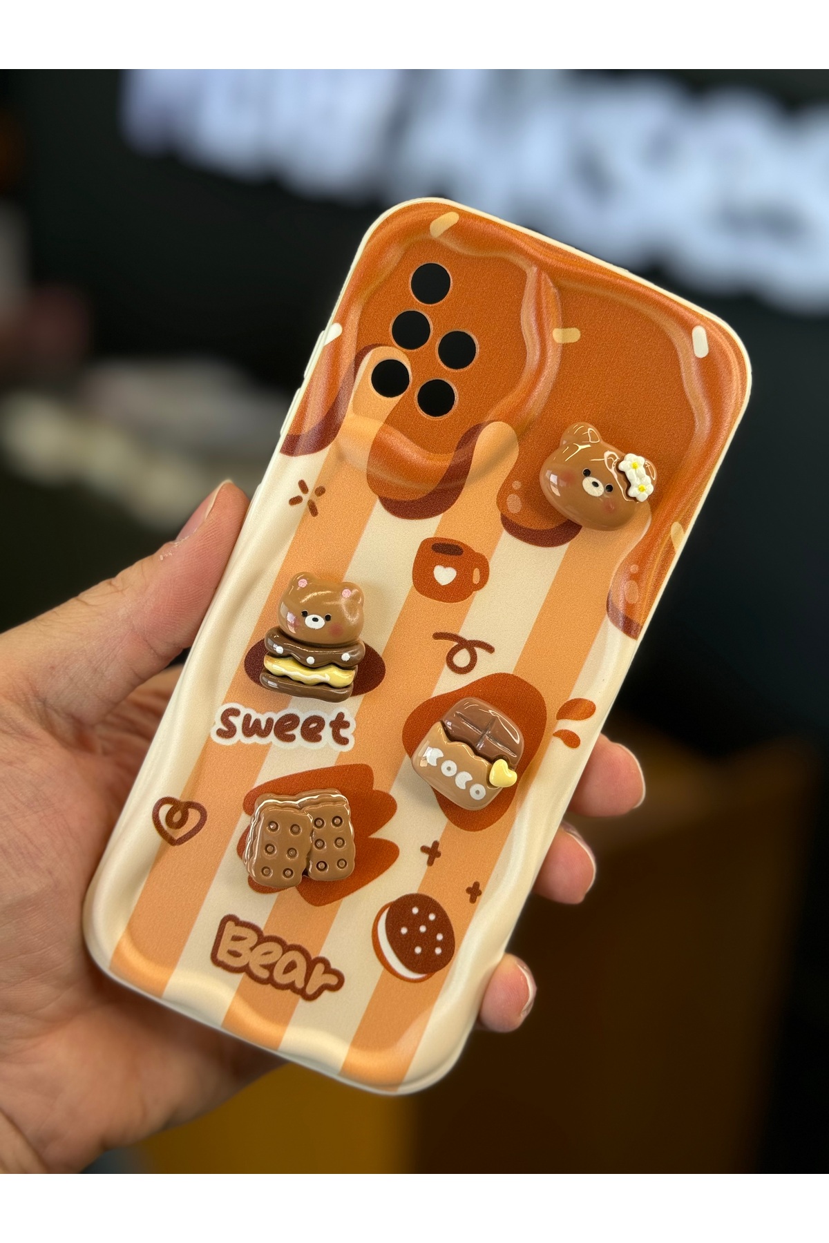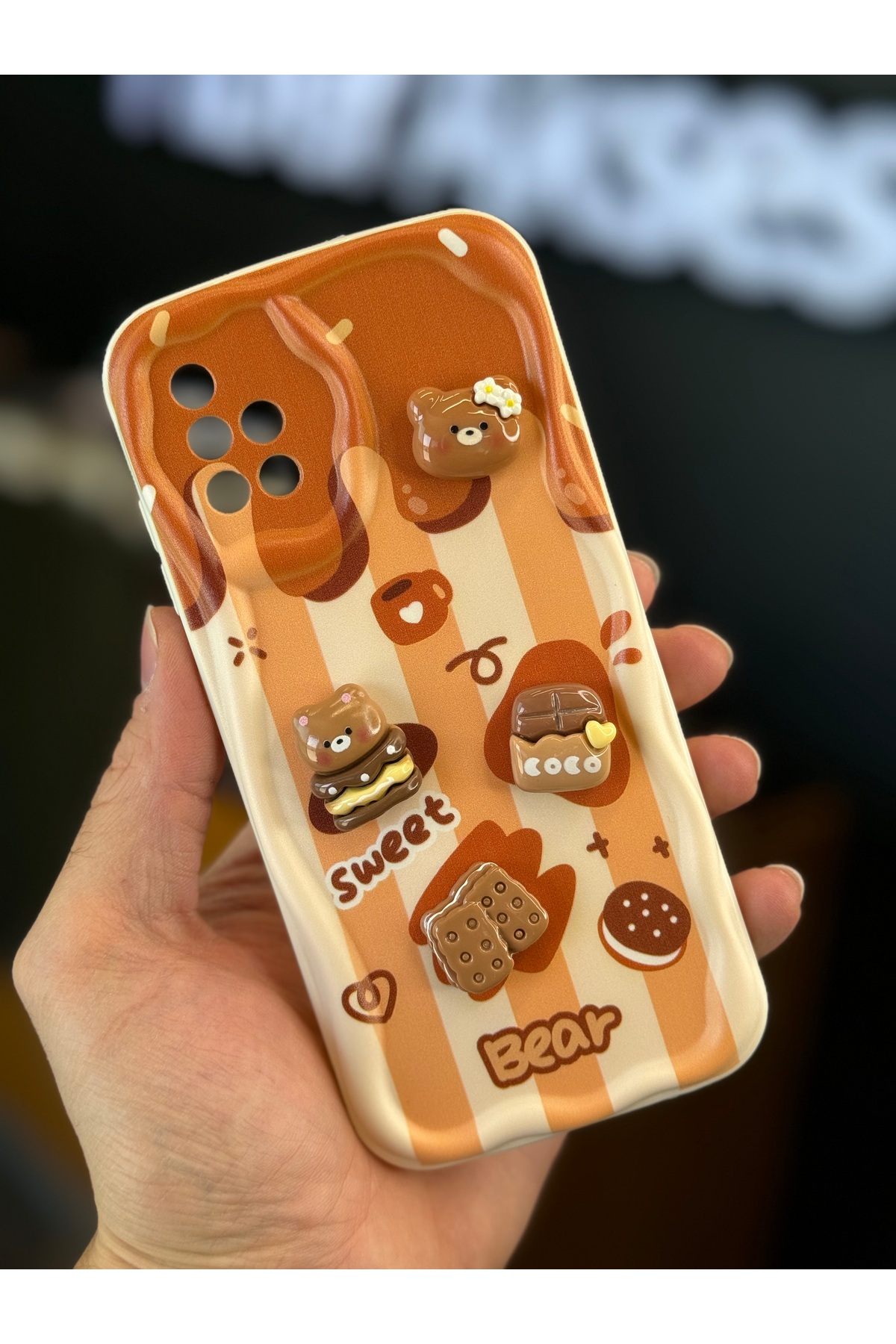 Fibaks Galaxy A51 Case Design Patterned Camera Protected Teddy Bear Biscuit Colorful Cofffe Silicone Cover | ByTR