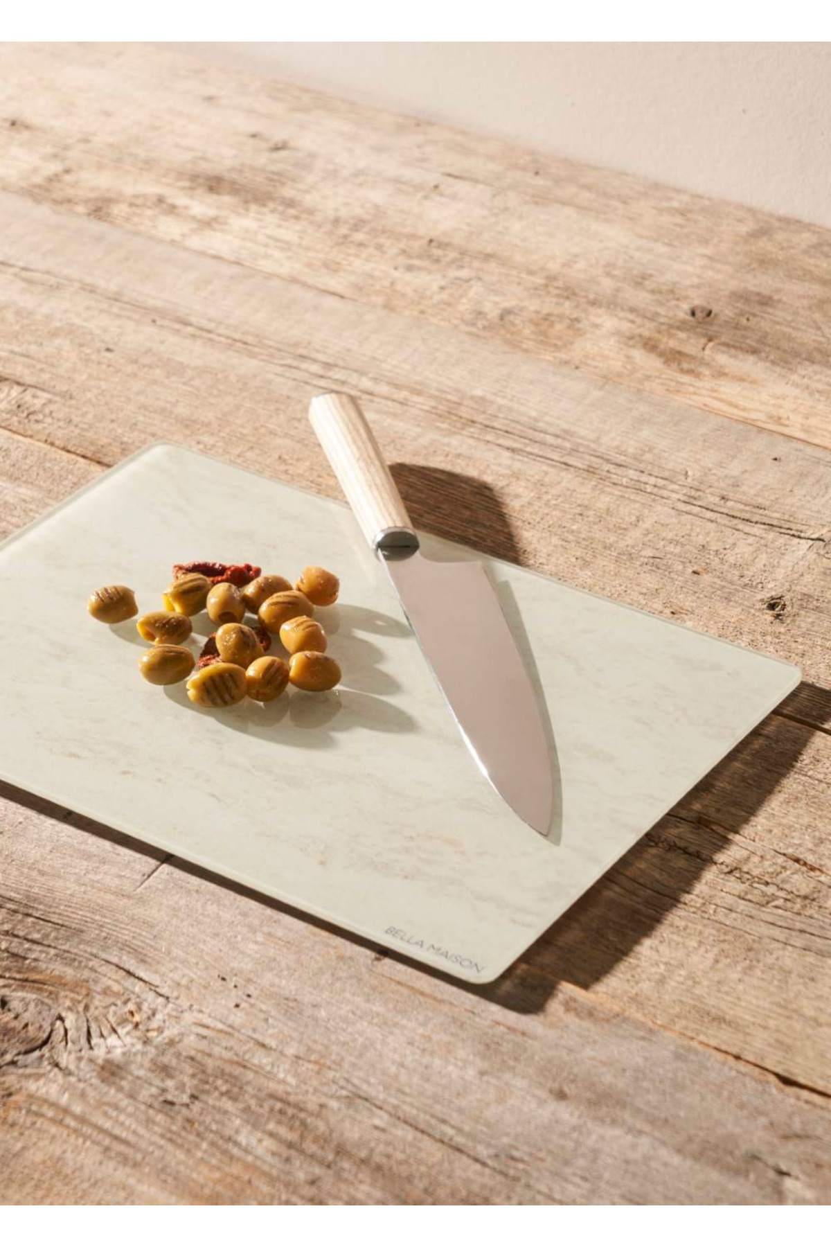 Add both aesthetics and functionality to your kitchens with a marble-looking glass cutting board.