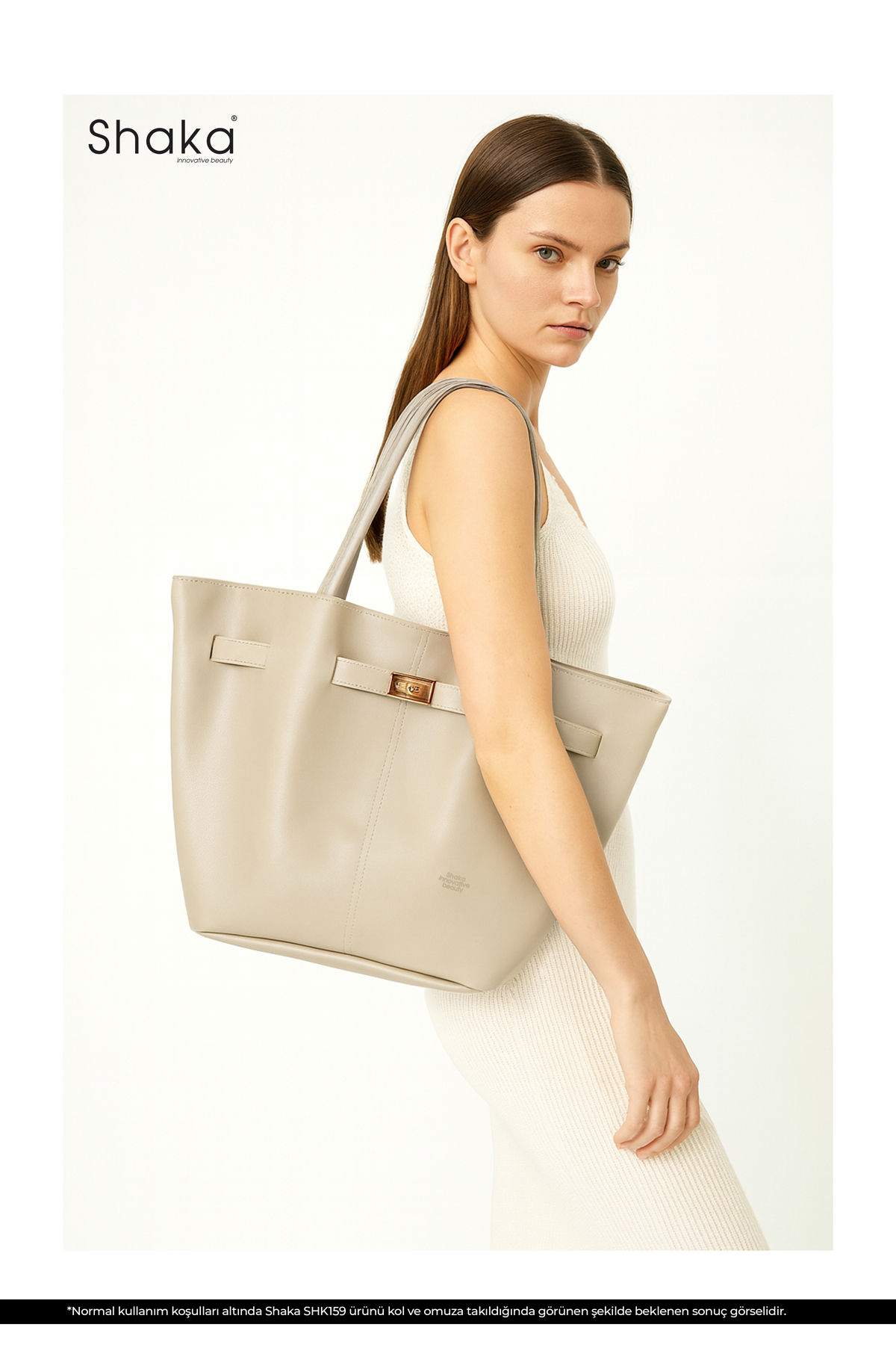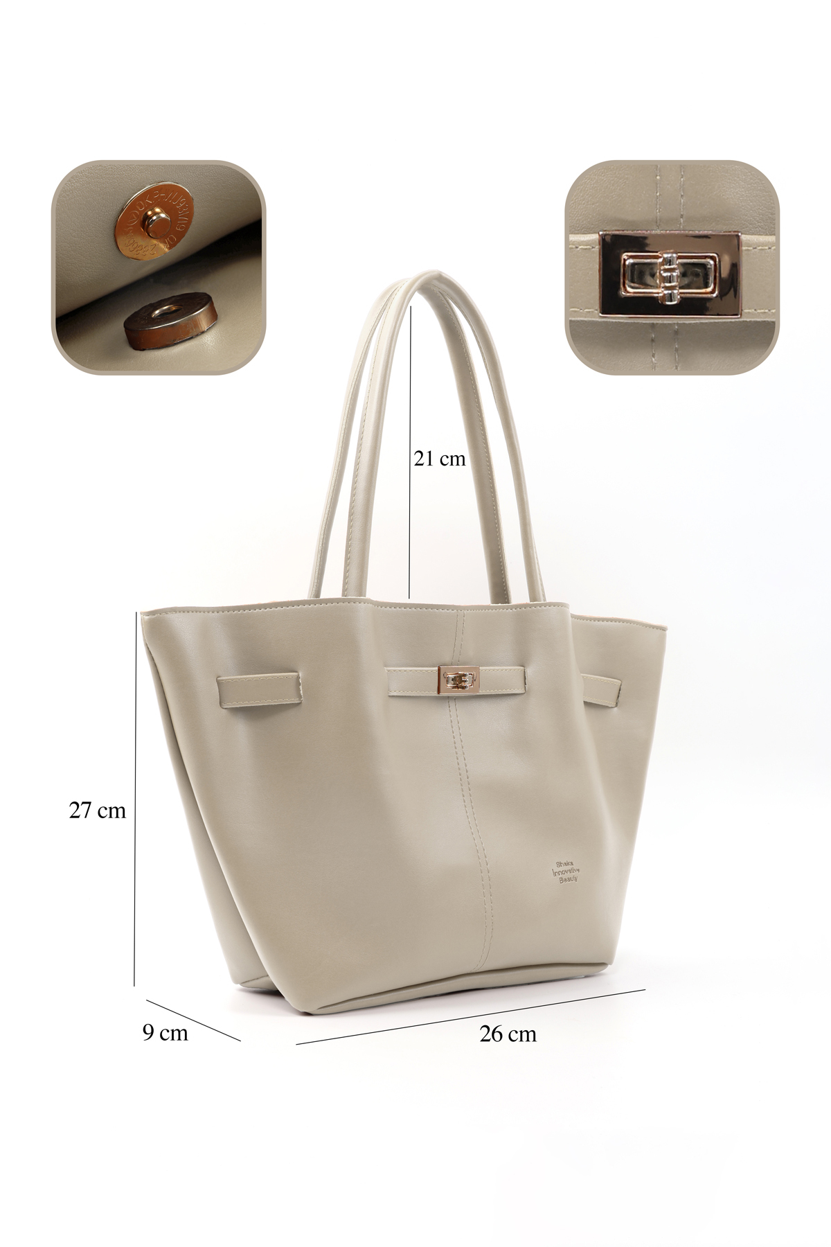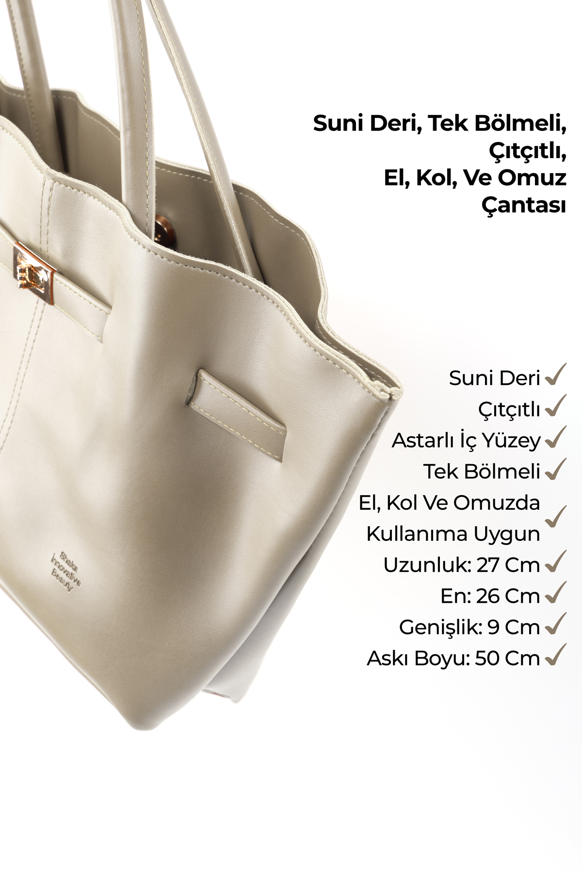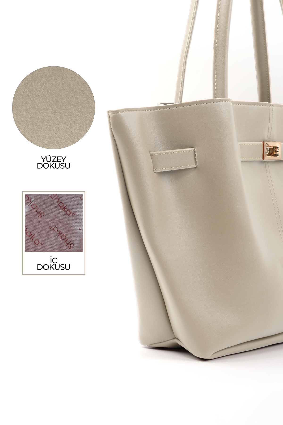 SHAKA Mink Shk159 Faux Leather, Lined, Snap Fastener, Lock Detailed Hand, Sleeve and Shoulder Bag | ByTR