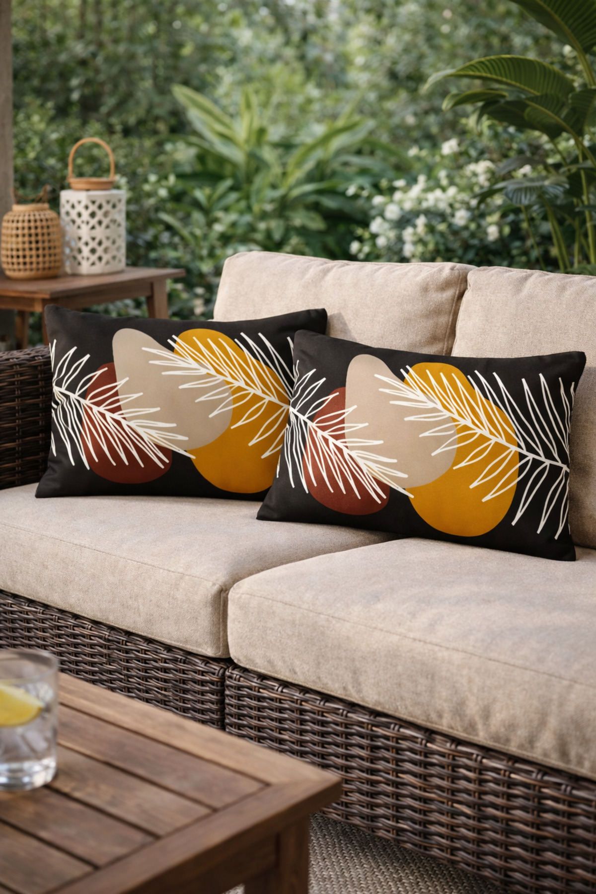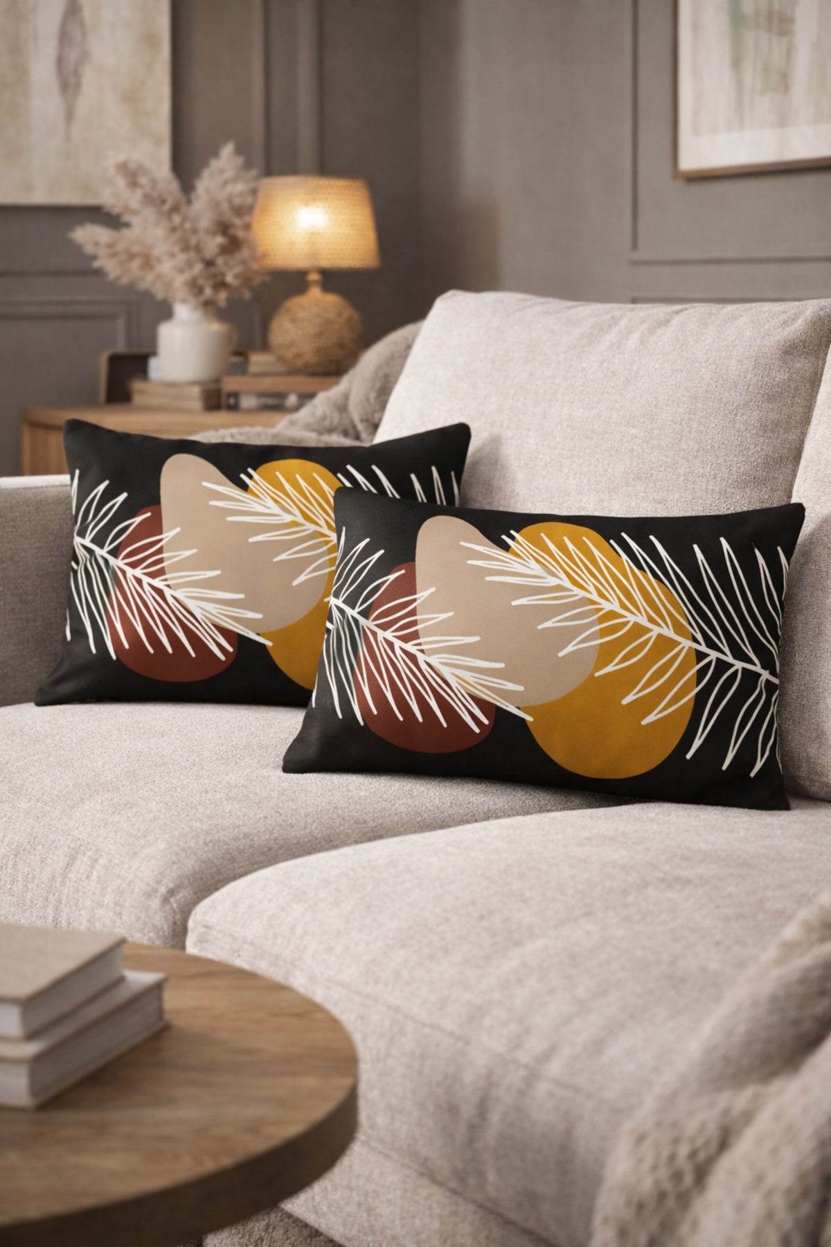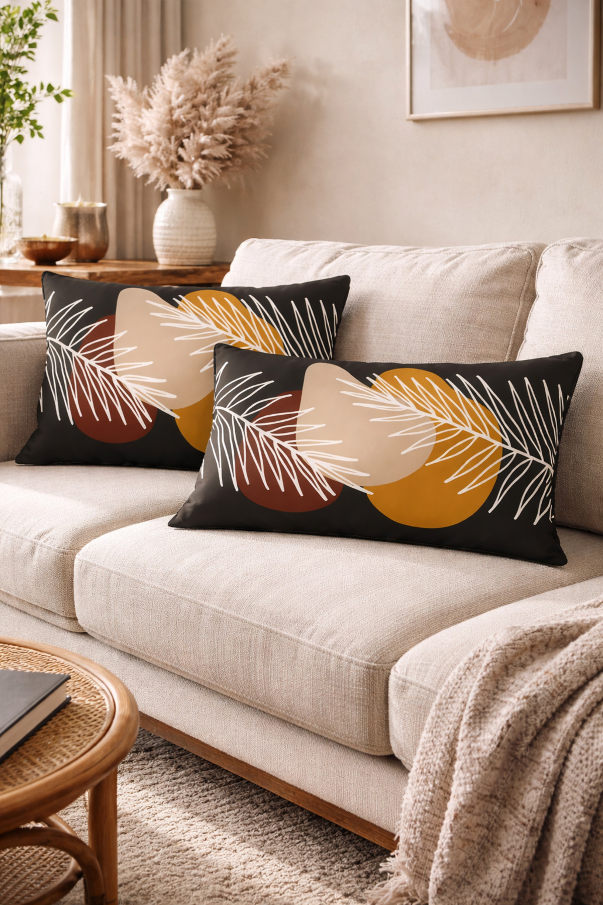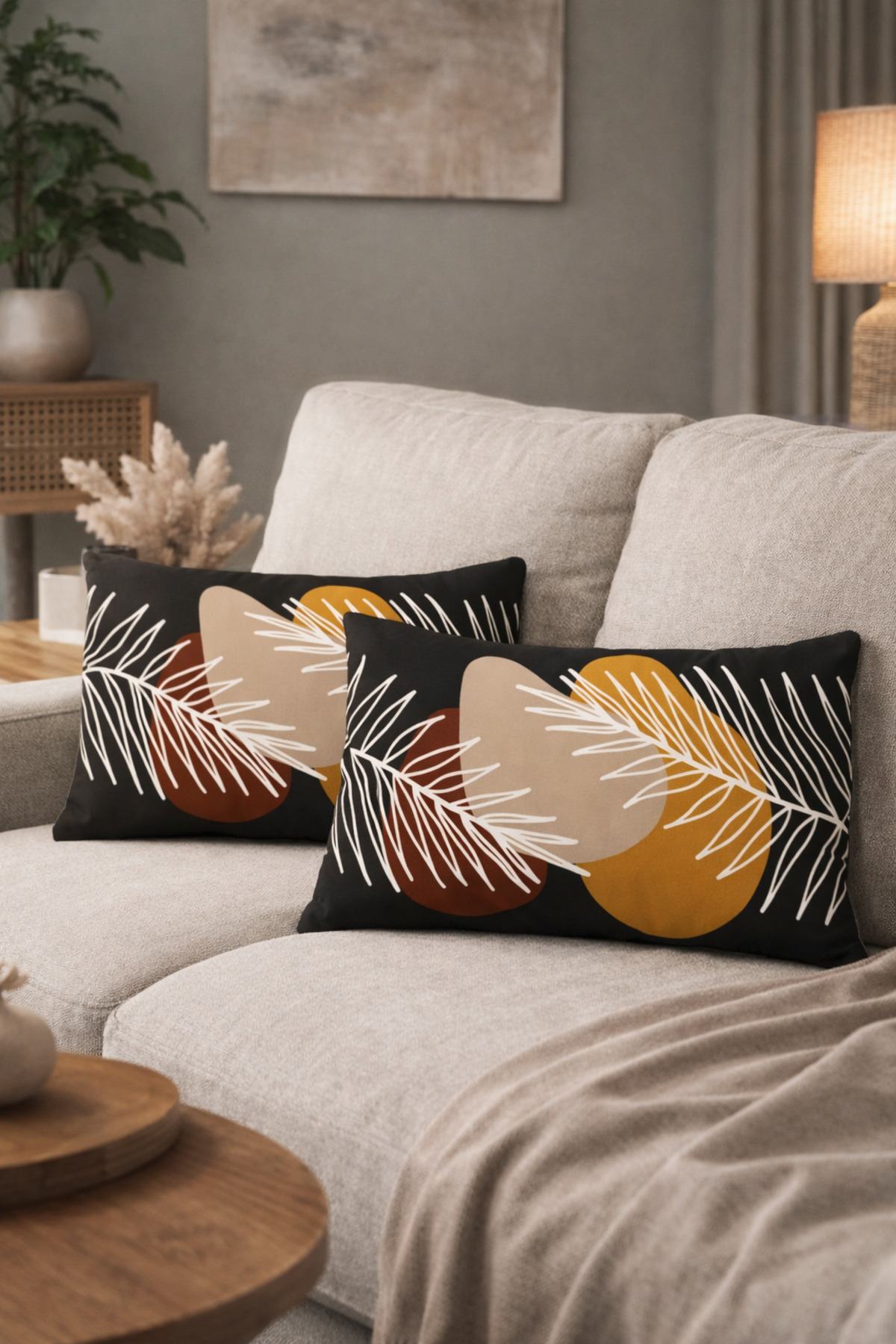 SasoHome 2-Piece Rectangular Pillowcase with Palm Leaves Pattern on Modern Pastel Floor | ByTR