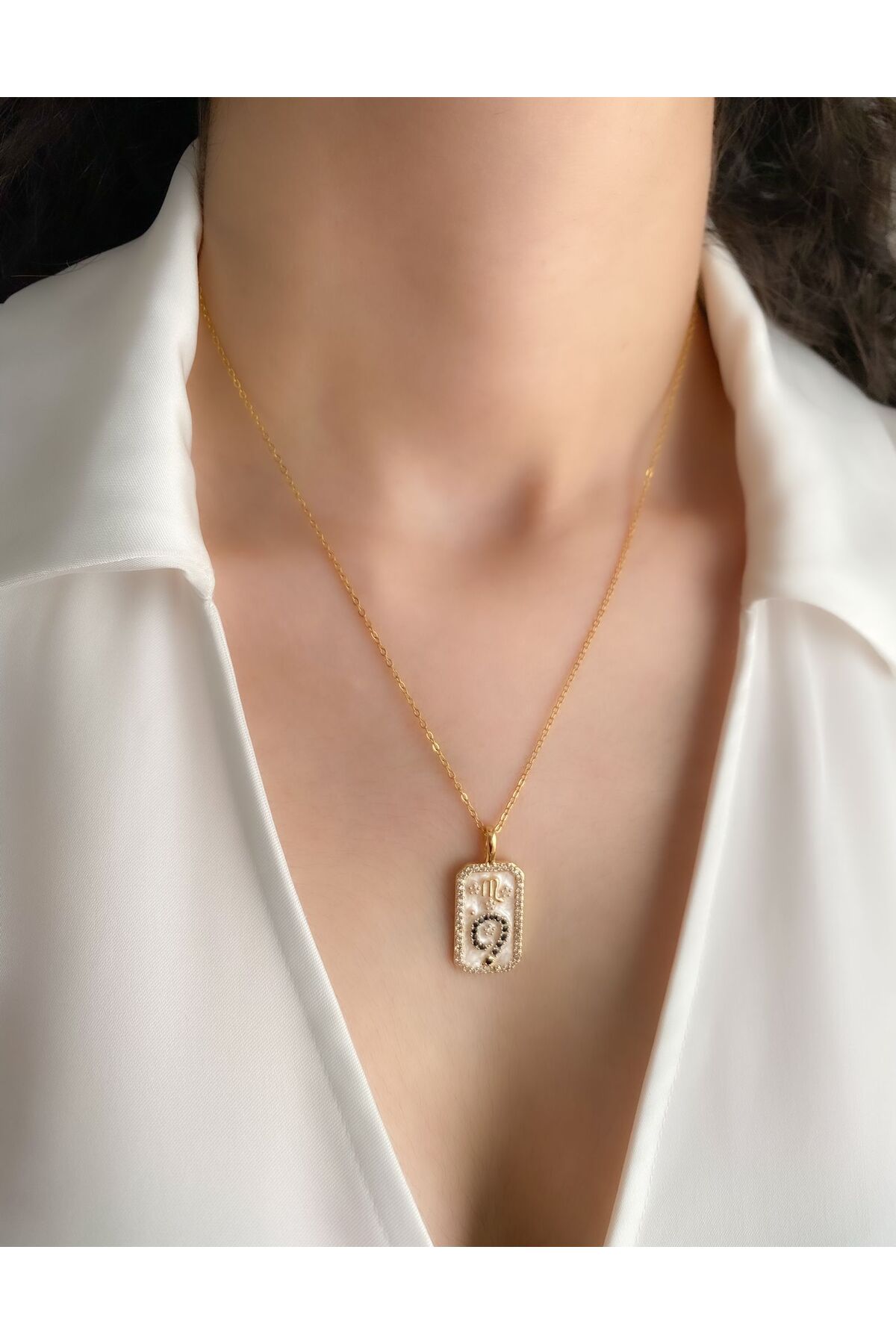 DEMOKAN Women Steel Necklace Horoscope Series Pearl Plate Scorpio Sign Necklace | ByTR