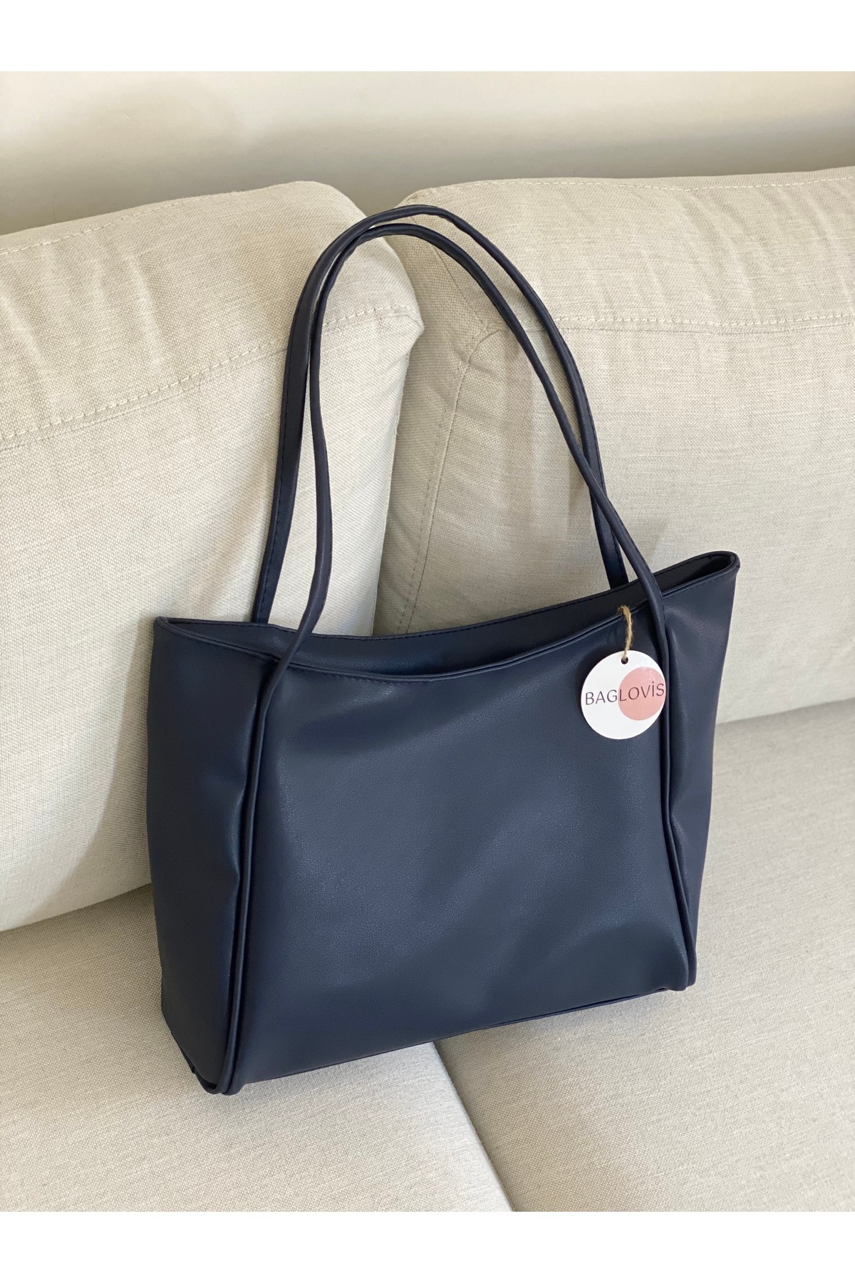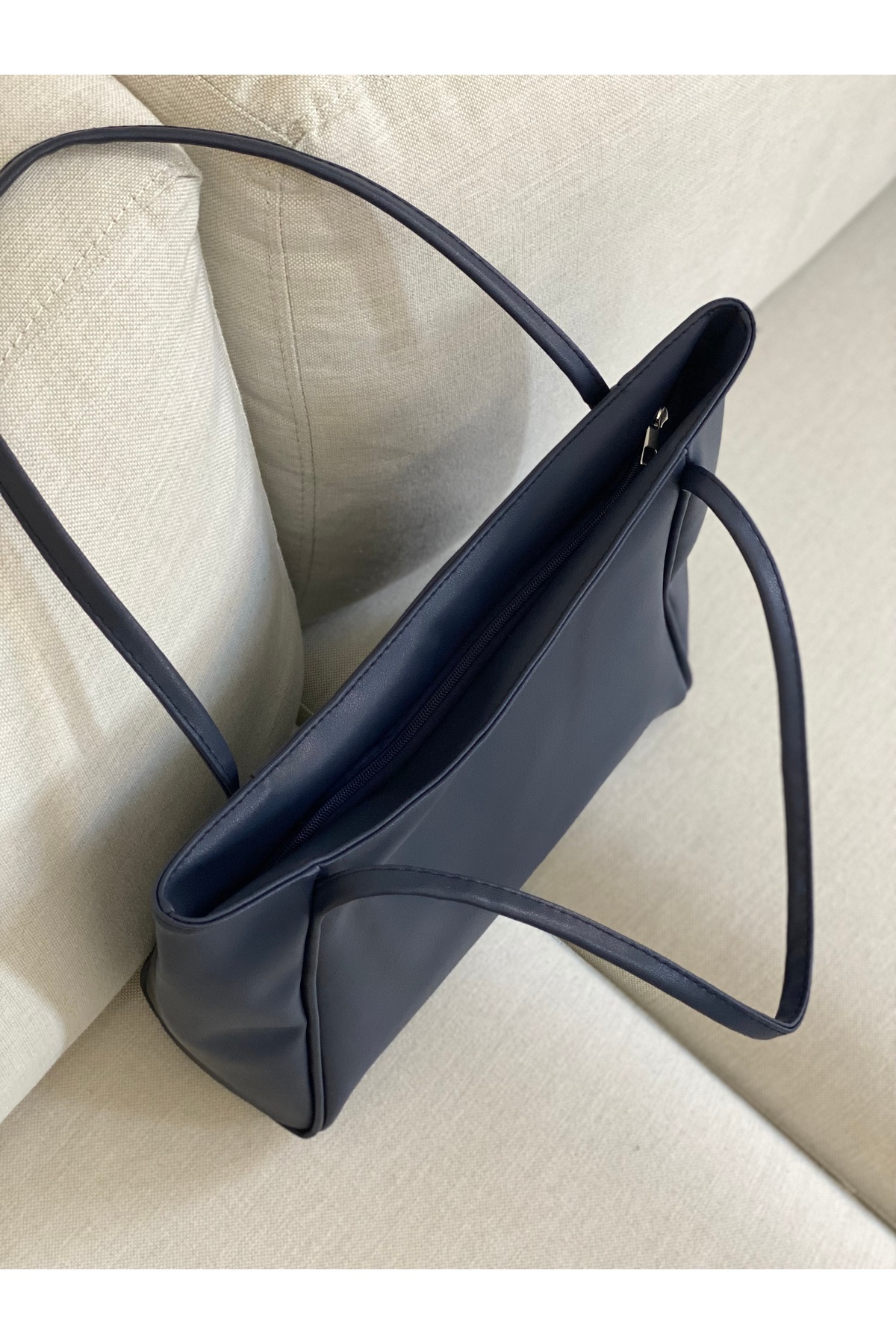 BAGLOVİS Women's Oversized Navy Soft Faux Leather Zipper Shoulder Bag EN42 BOY28 | ByTR