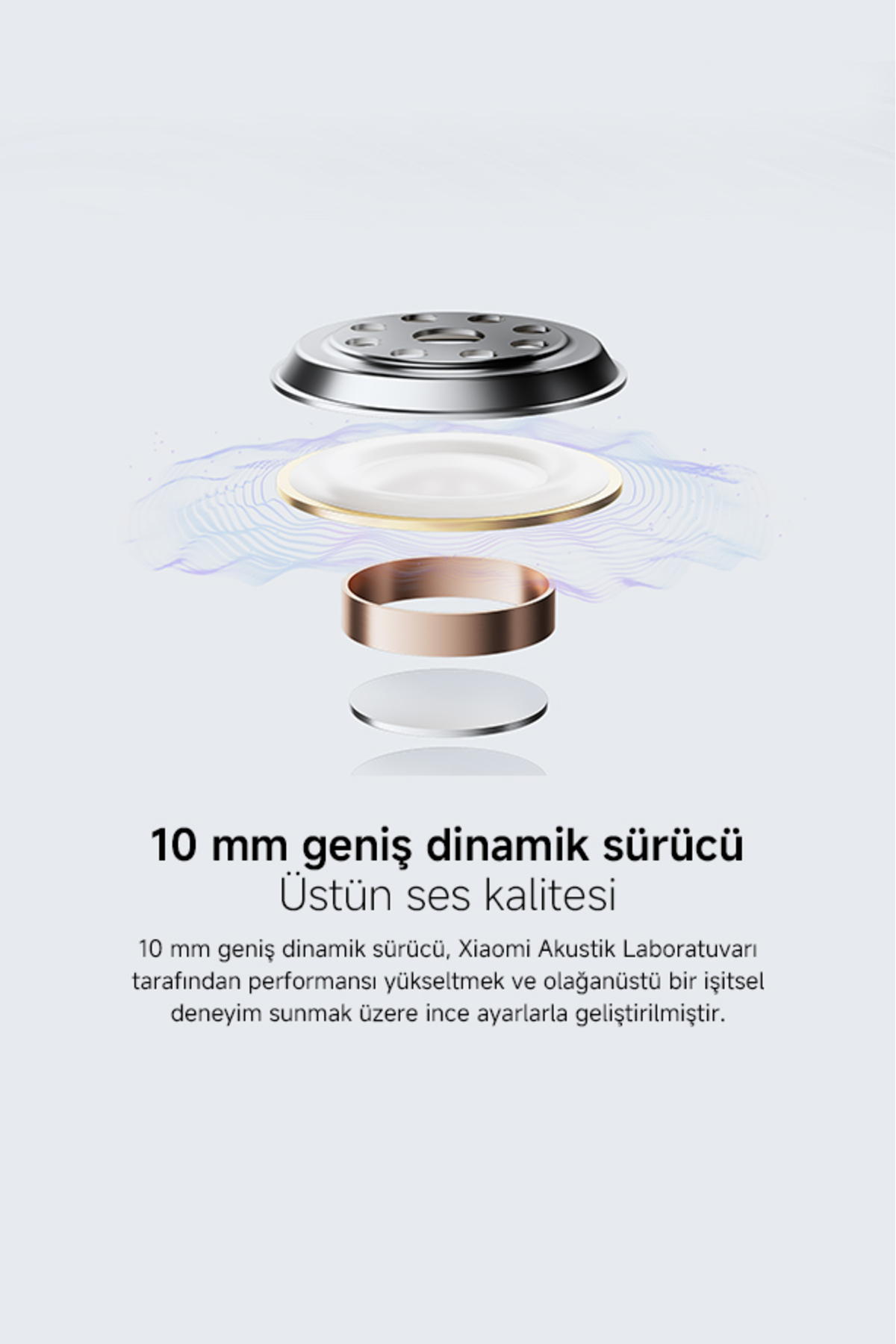 Auditory experience performance has been improved with a 10 mm wide dynamic driver.
