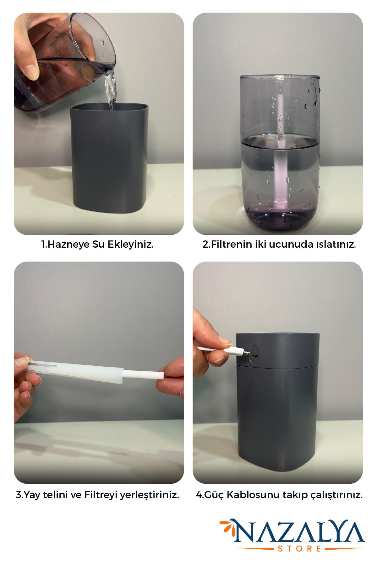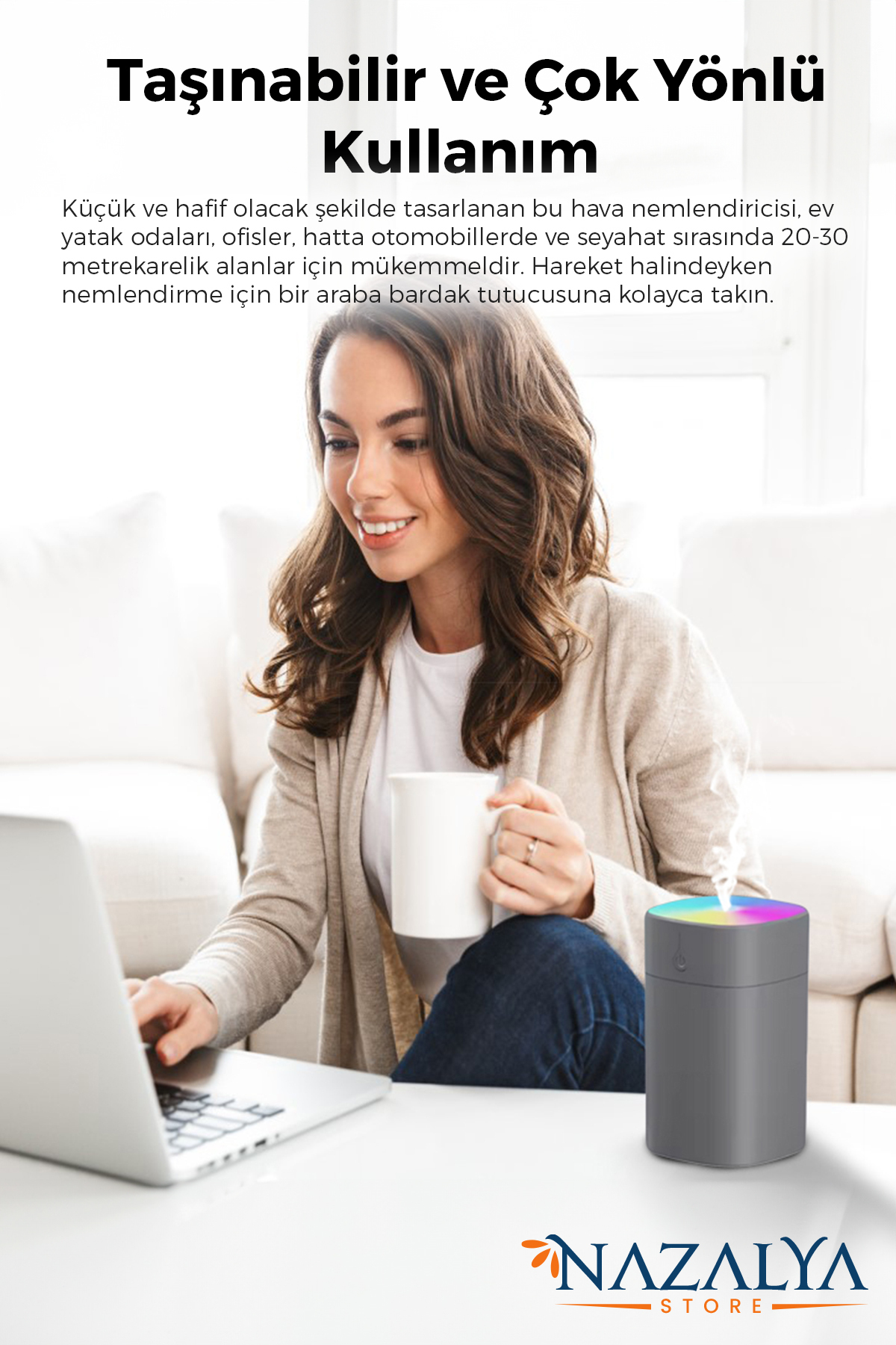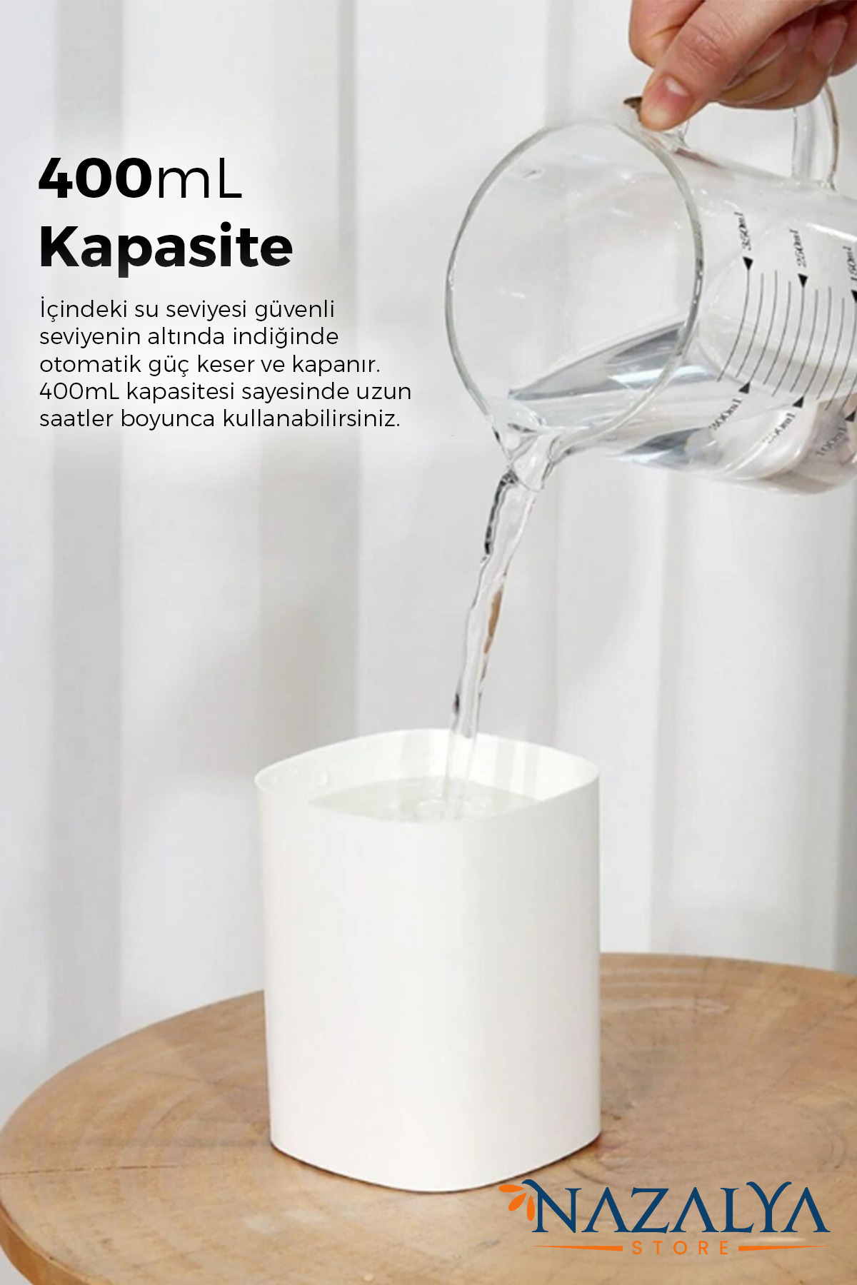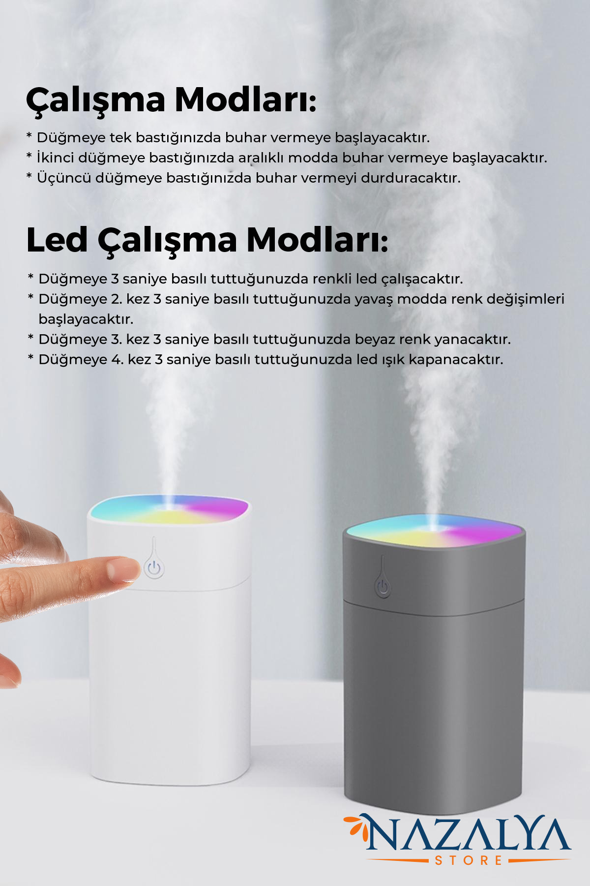 - Low noise level • Powerful Steam • RGB Led lighting • Intermittent steam mode • 400ml Capacity • Auto-off • 6 hours of work • Aroma diffuser • Voltage : DC5V / 1A • Operating current : 250-350mA • Color : White / Anthracite • Size : 1307878mm