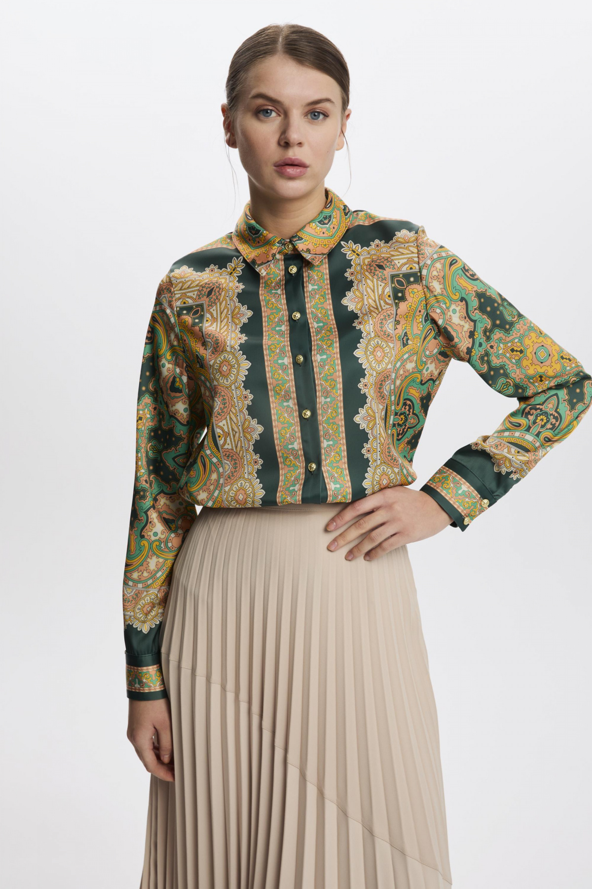 Zühre Ethnic Patterned Shirt Emerald Blouse/Shirt 0099 | ByTR