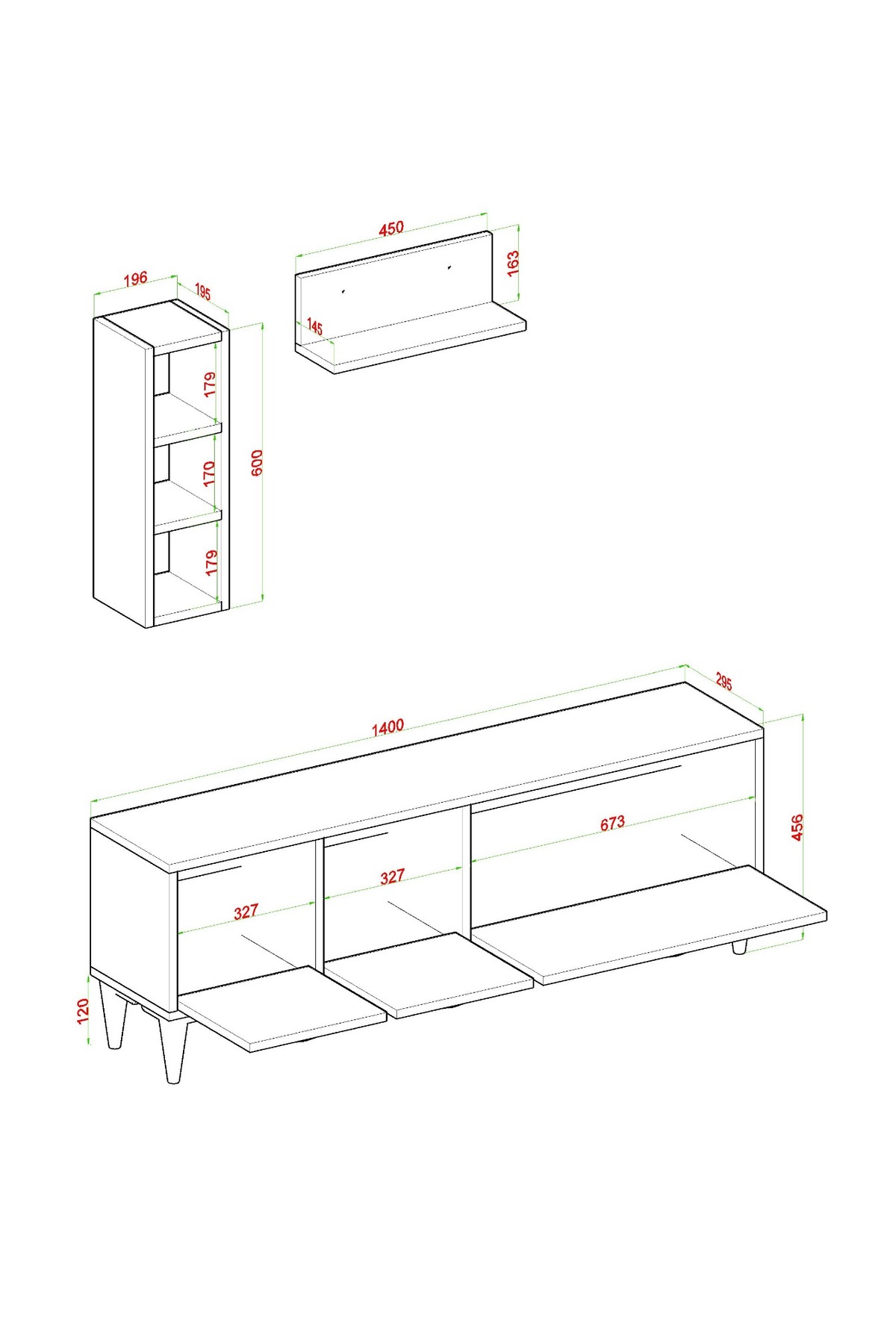 Dimension Information: Sub-Module Dimensions: Width 140 cm - Height: 46 cm - Depth 30 cm