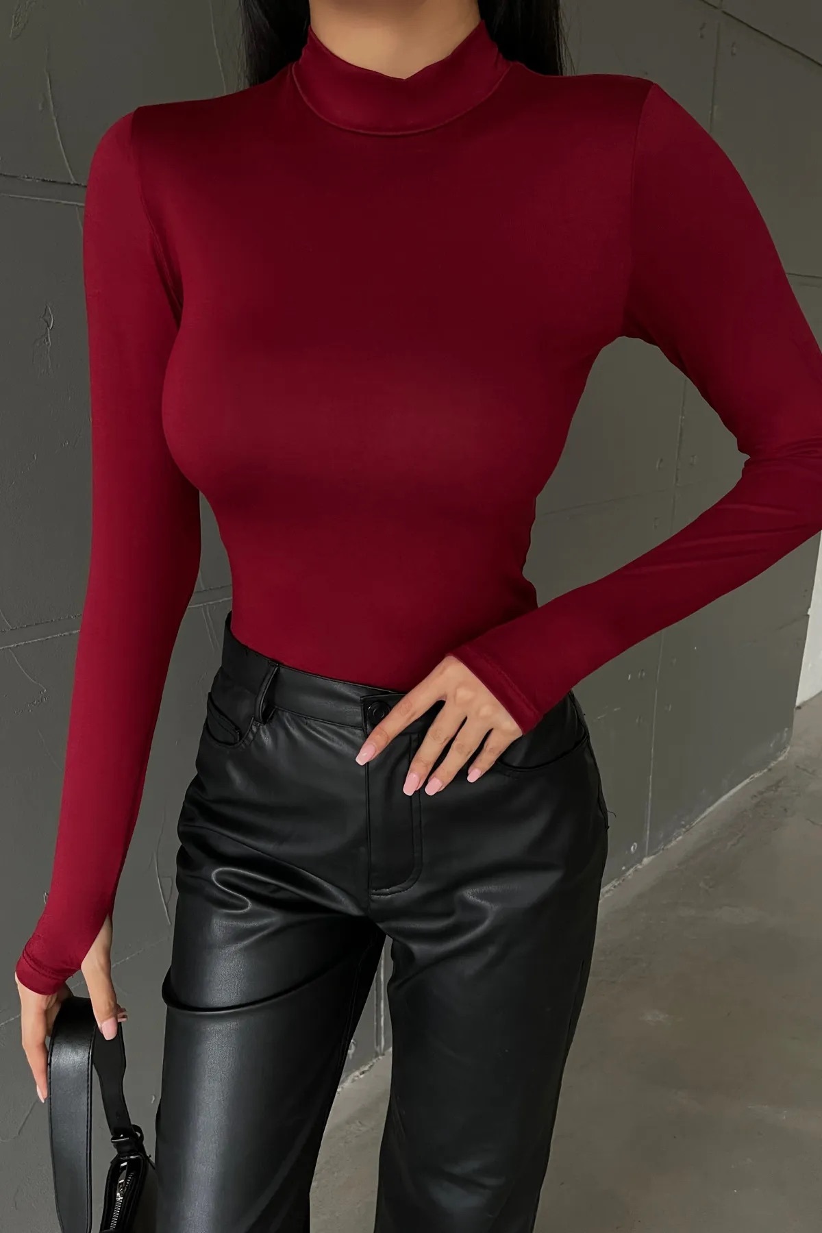 Bipantolon Women's Claret Red White 2-Piece Finger Detailed Bodysuit | ByTR