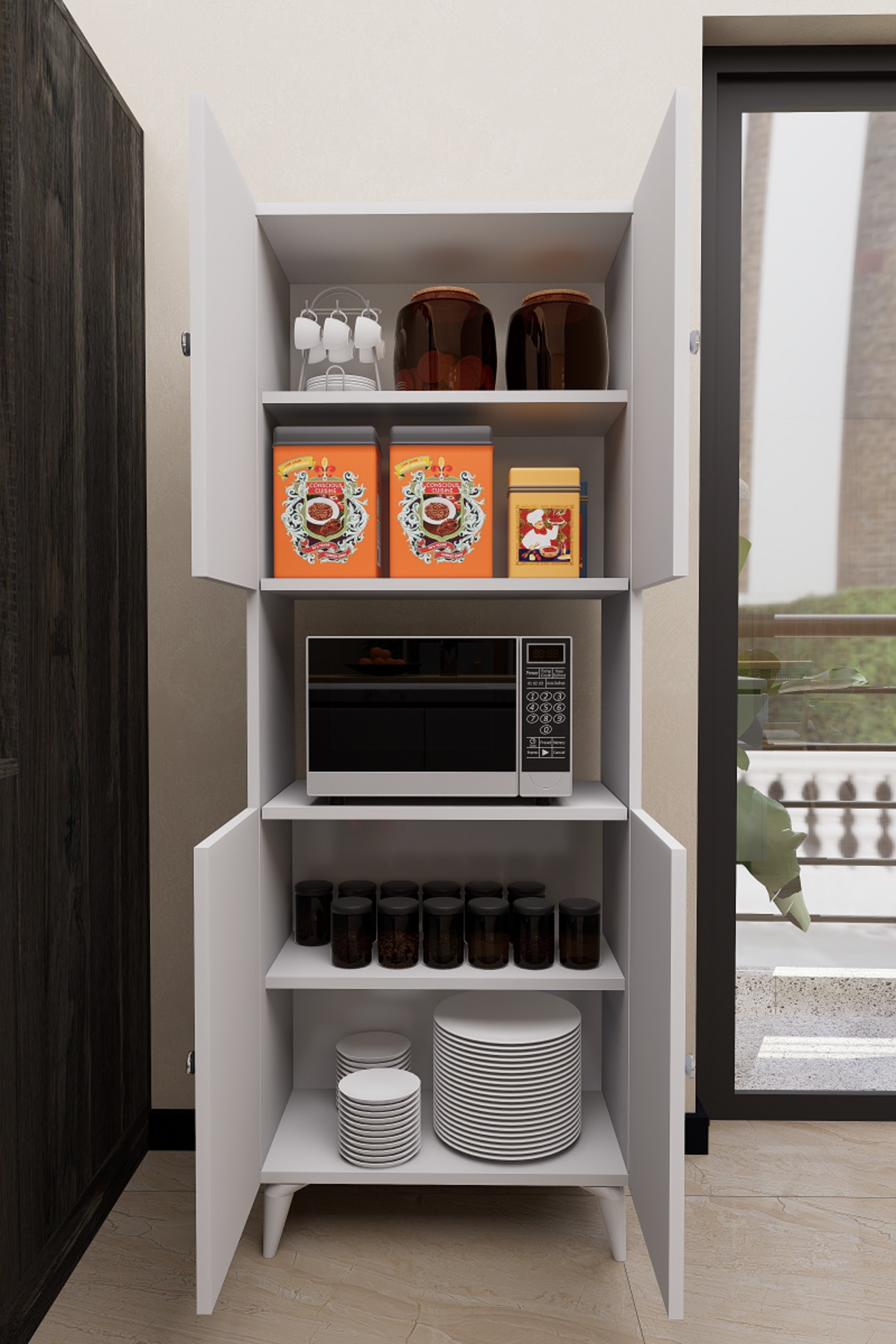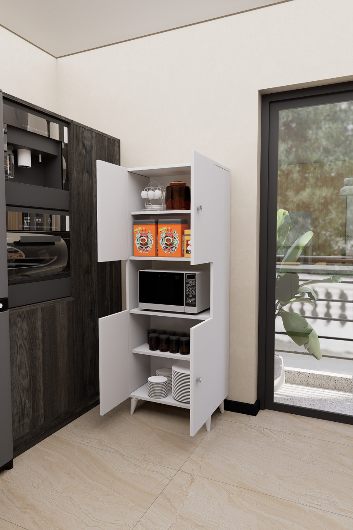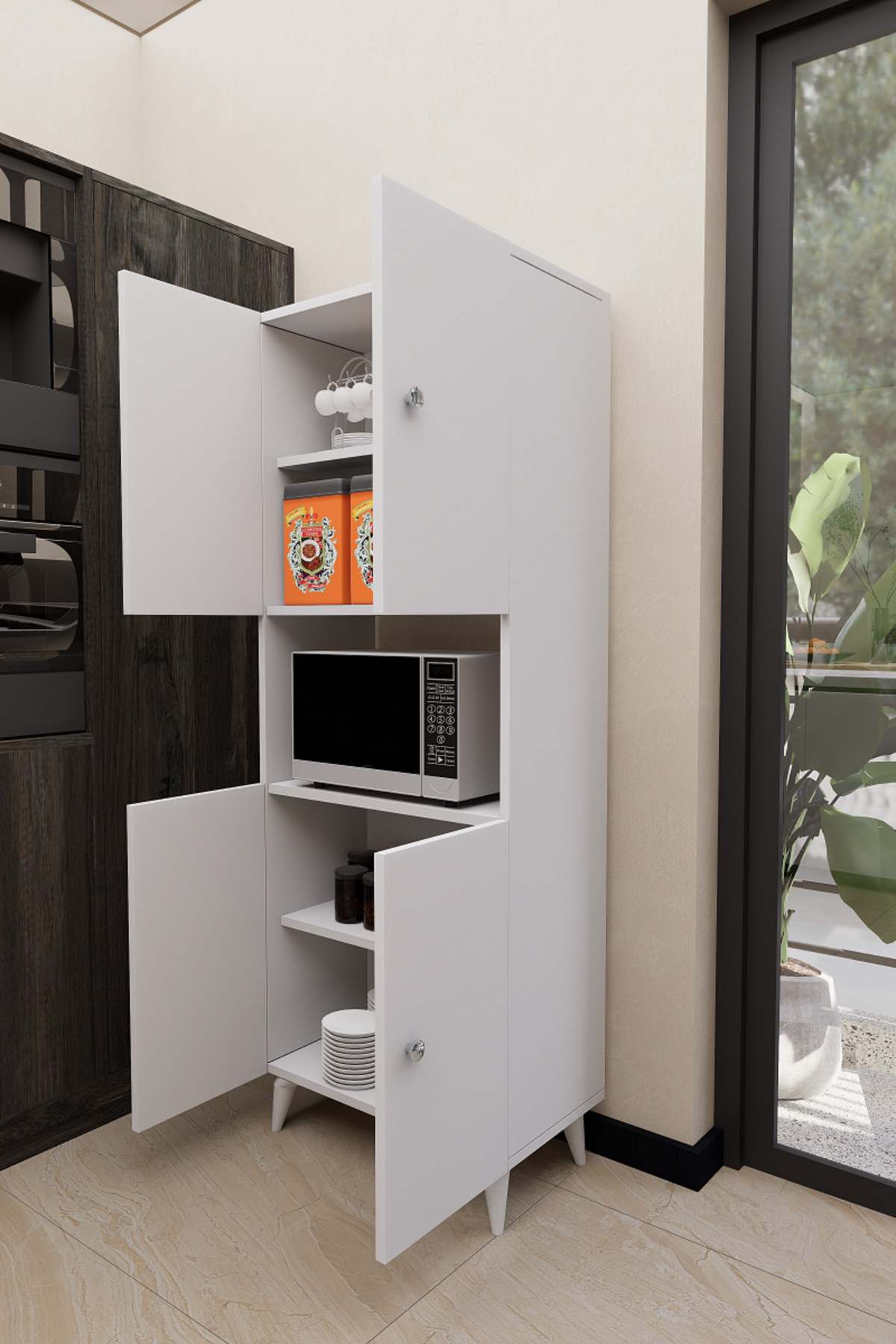 Mirobi Hobbie Microwave Kitchen Cabinet – Elegance and Functionality Together! Mirobi Hobbie Microwave Kitchen Cabinet, which combines both aesthetics and functionality in your kitchens, brings order to your kitchen with its modern design and useful structure.
