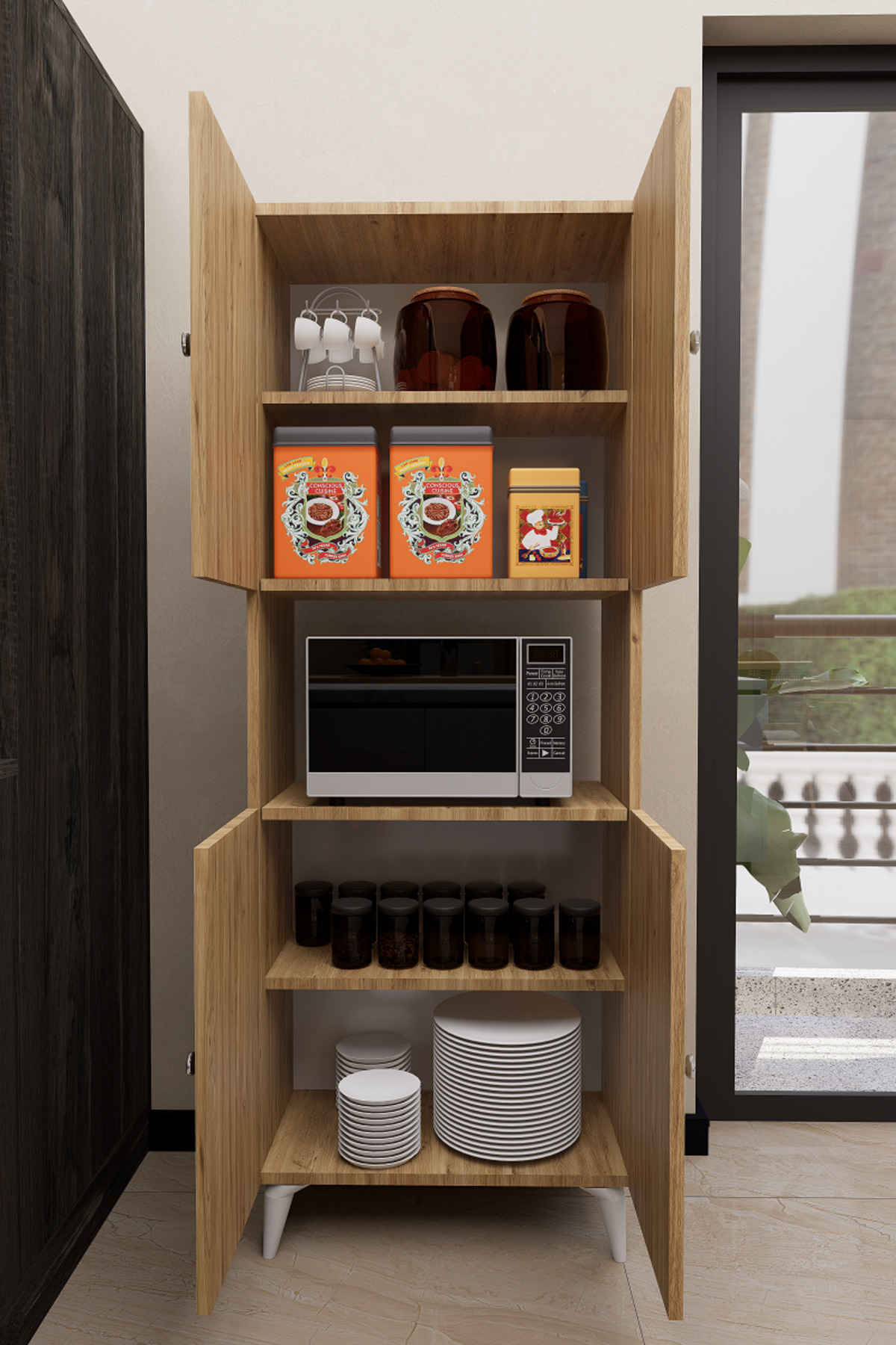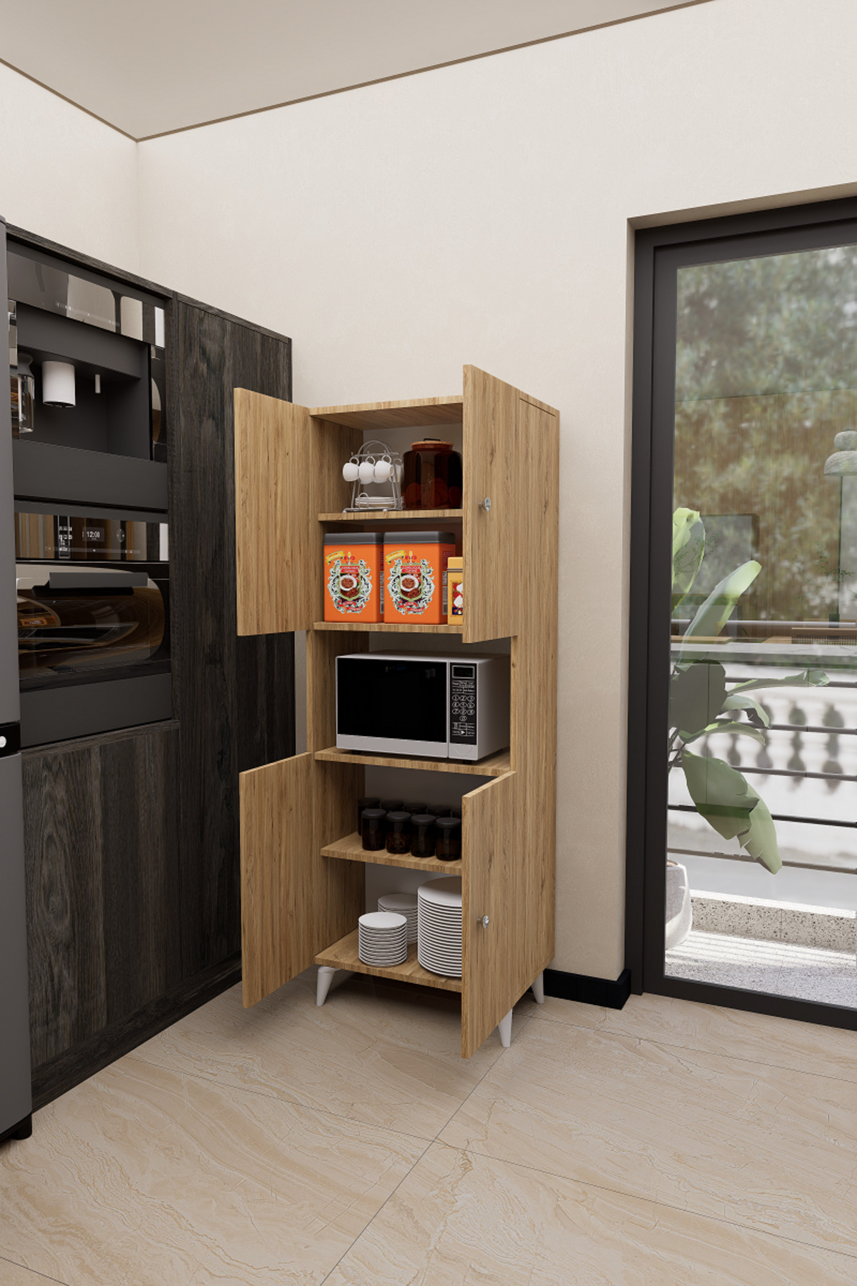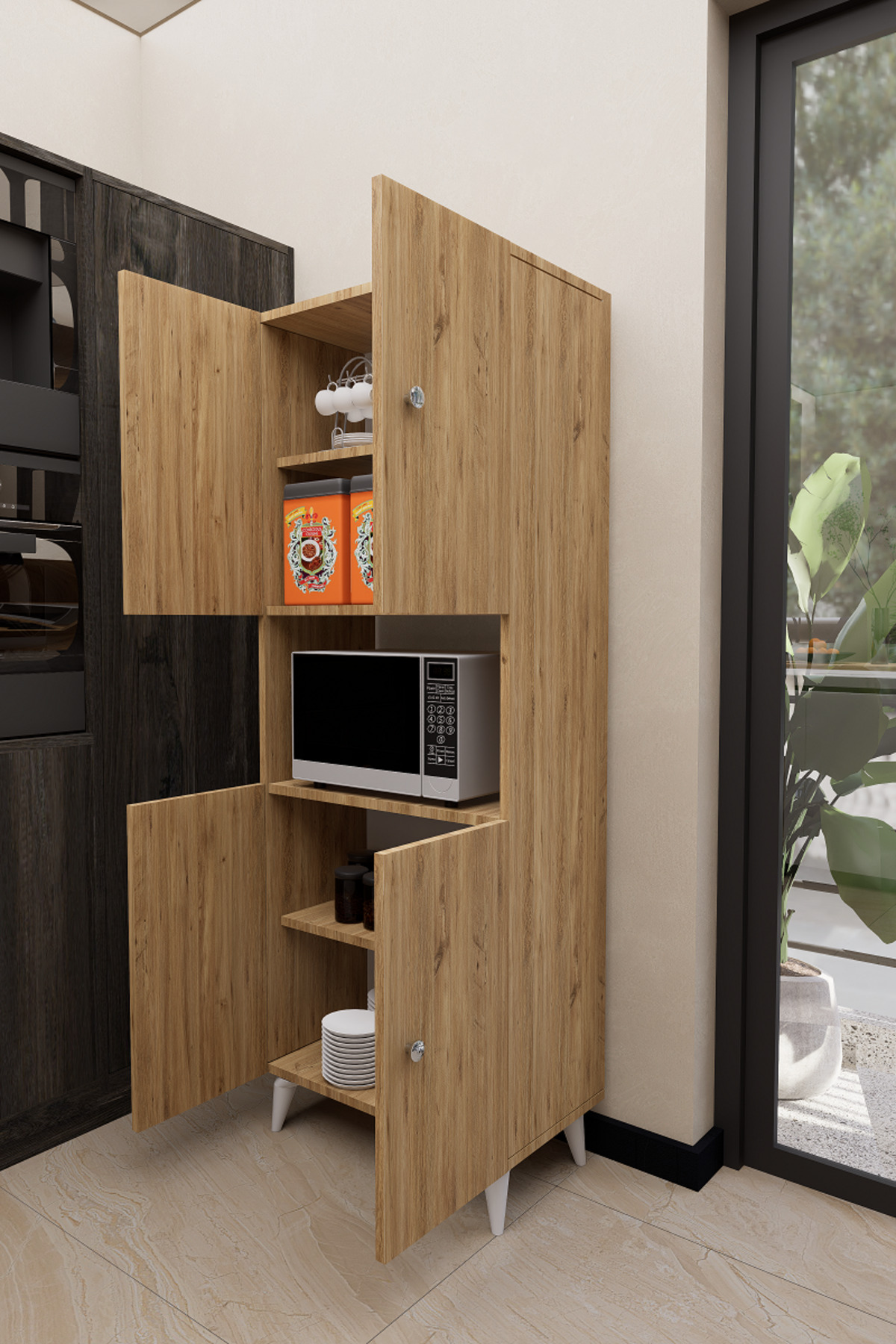 Mirobi Hobbie Microwave Kitchen Cabinet – Elegance and Functionality Together! Mirobi Hobbie Microwave Kitchen Cabinet, which combines both aesthetics and functionality in your kitchens, brings order to your kitchen with its modern design and useful structure.