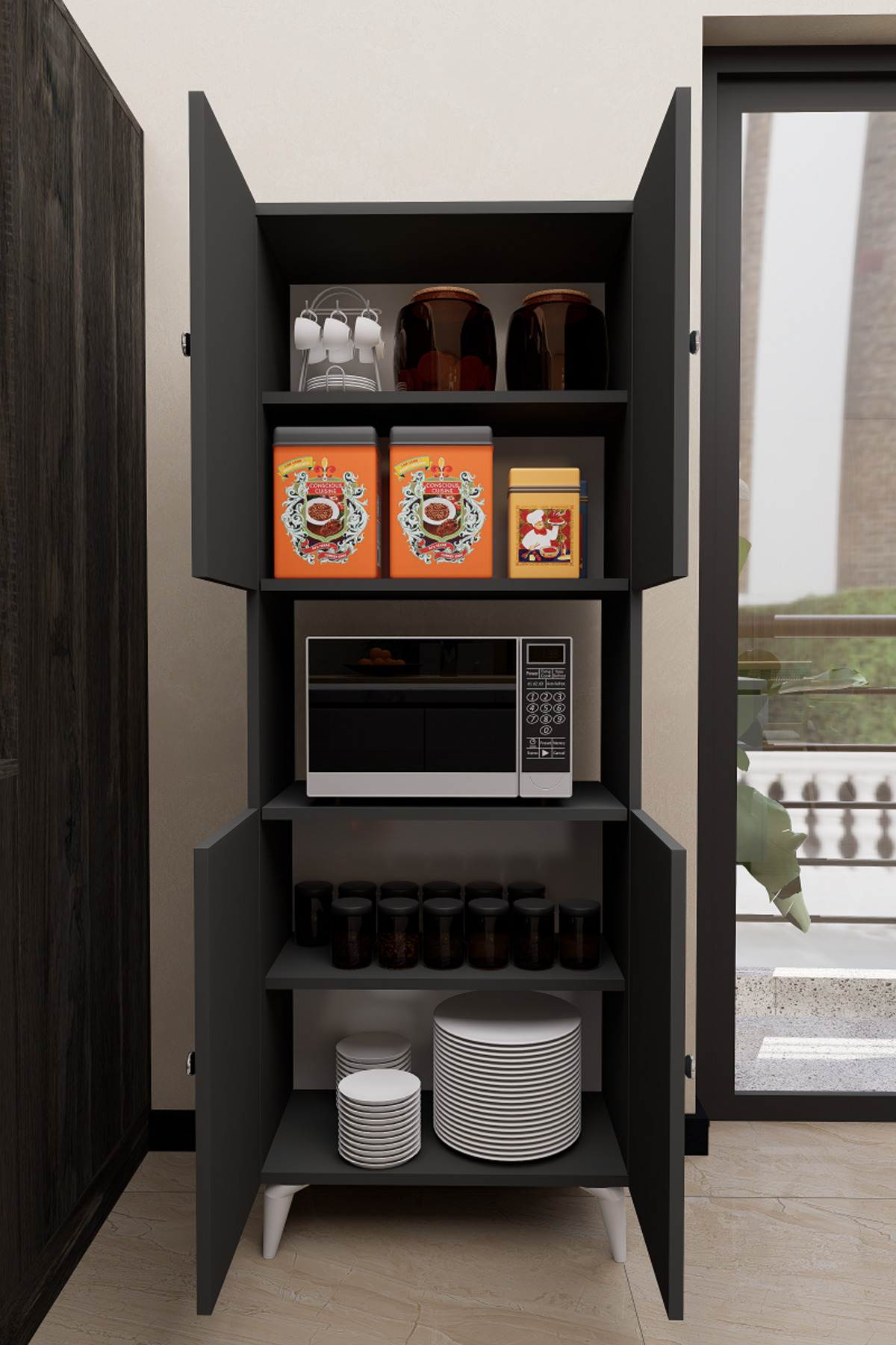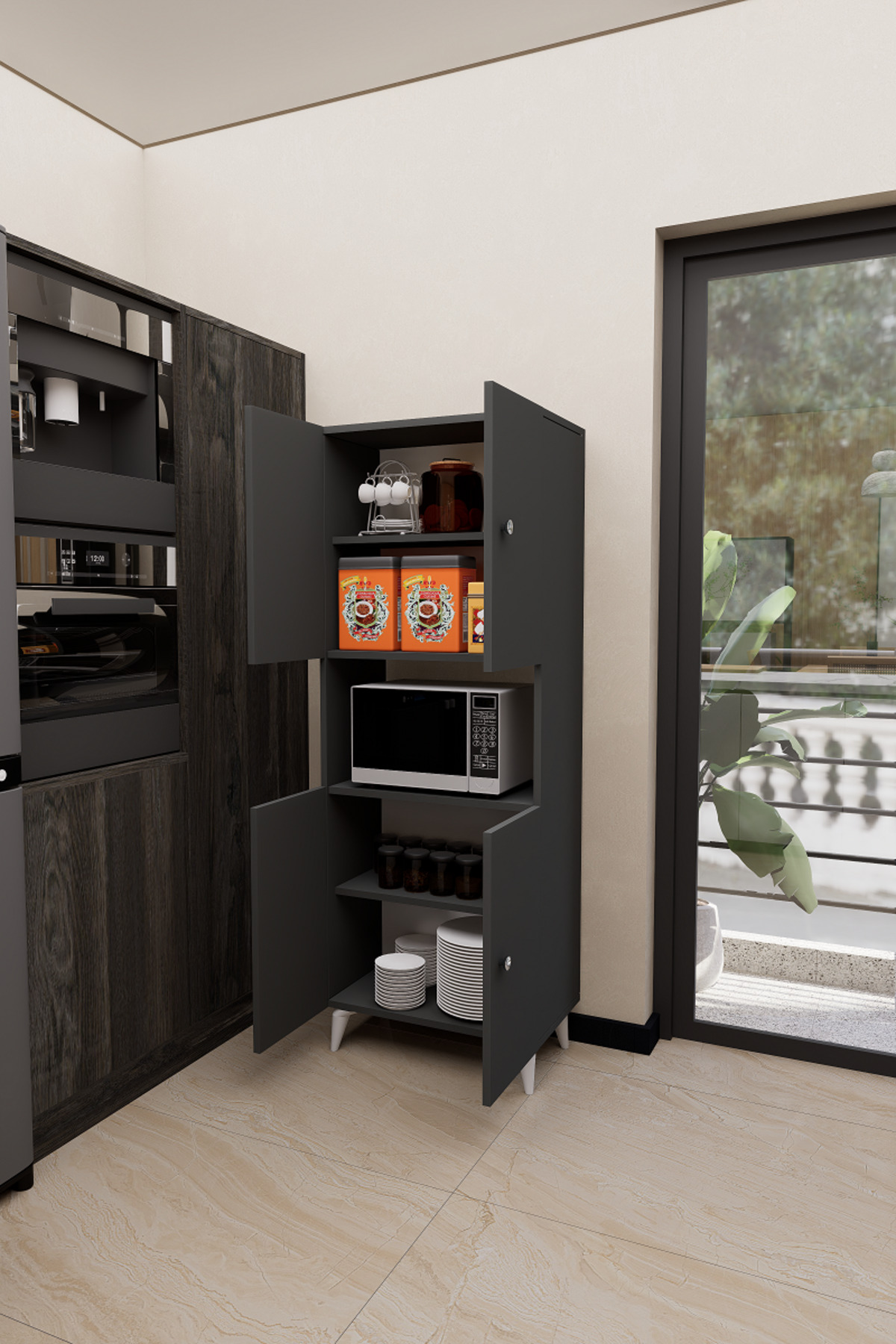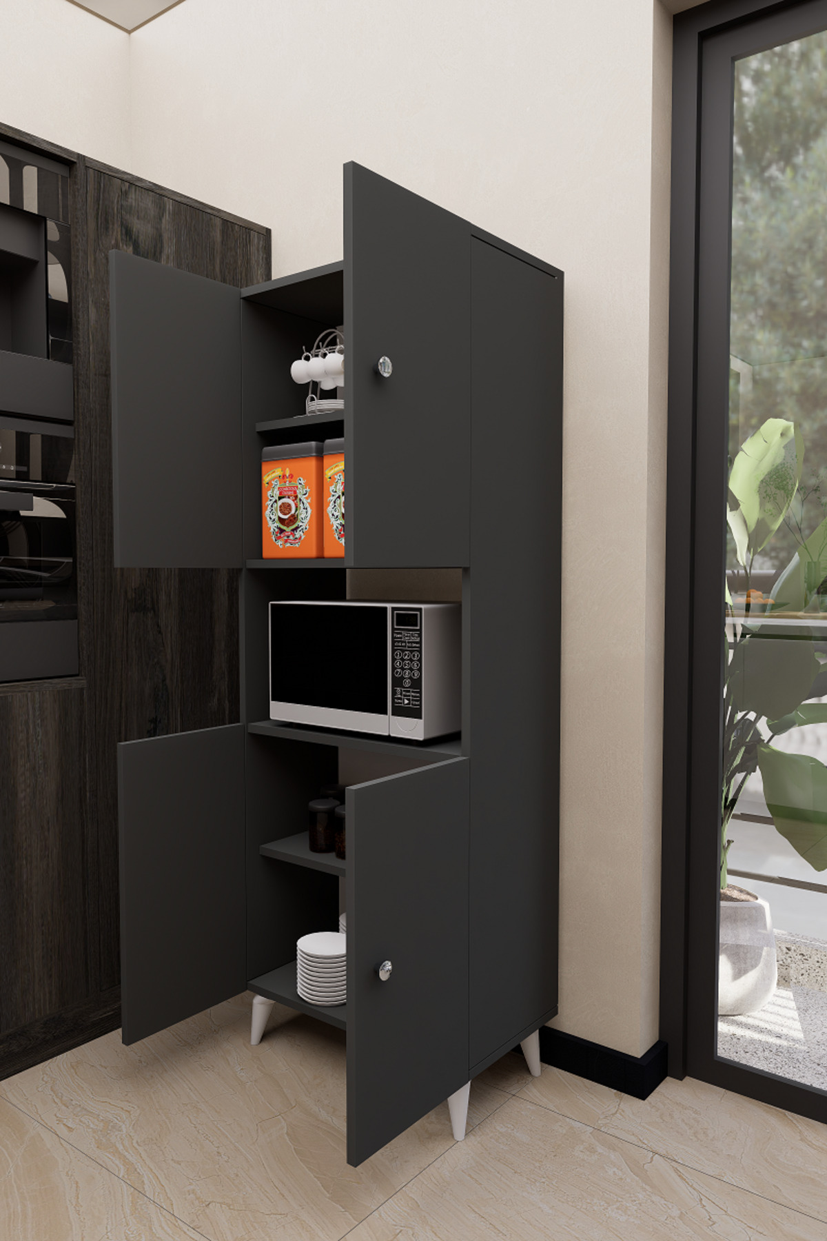 Mirobi Hobbie Microwave Kitchen Cabinet – Elegance and Functionality Together! Mirobi Hobbie Microwave Kitchen Cabinet, which combines both aesthetics and functionality in your kitchens, brings order to your kitchen with its modern design and useful structure.
