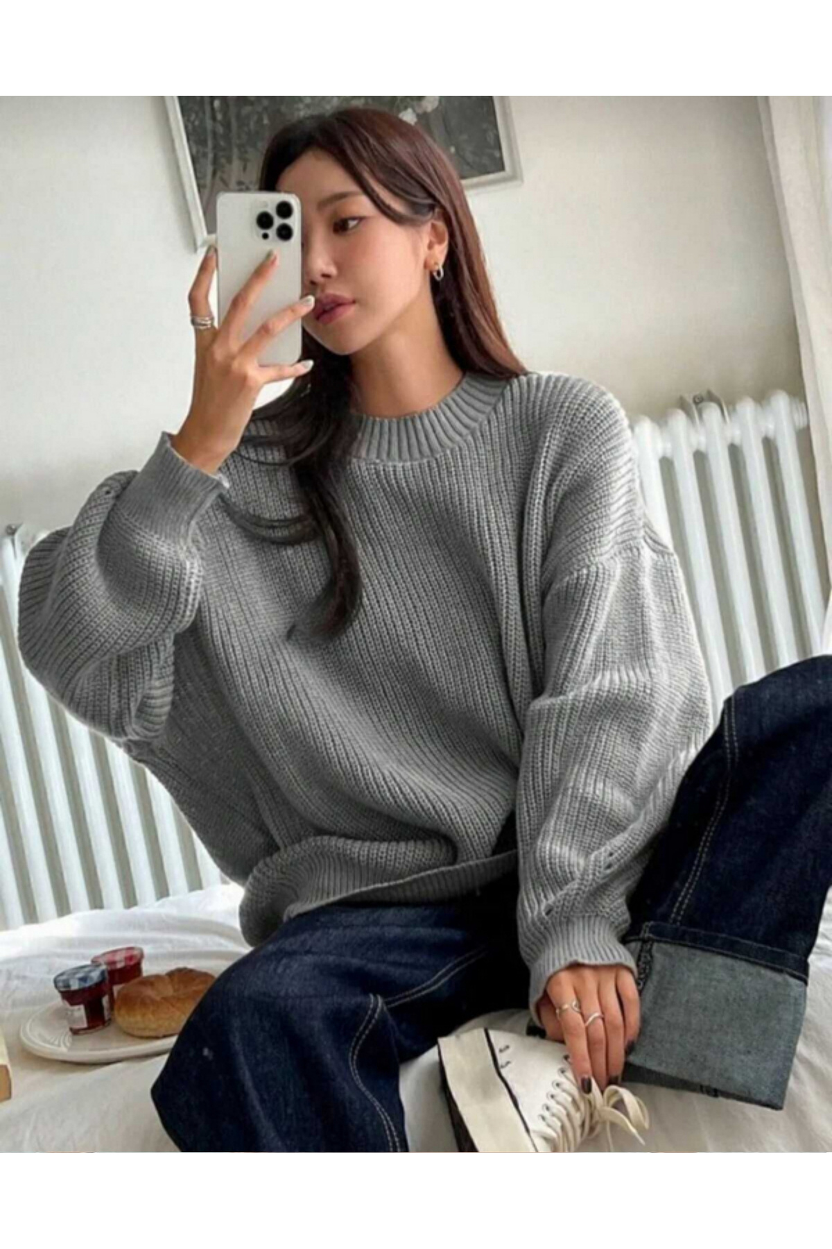 Oversized knitwear sweater ideal for daily use with its comfortable cut.