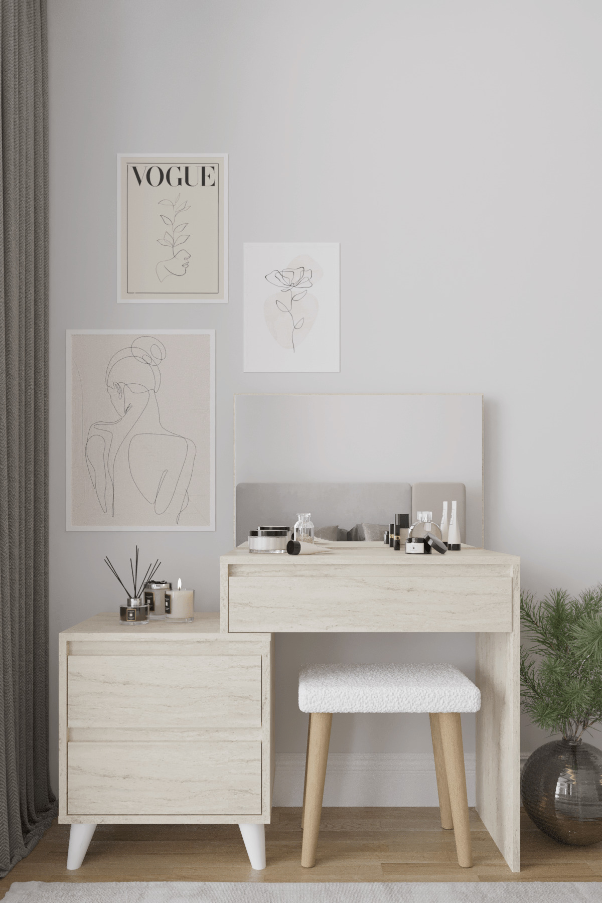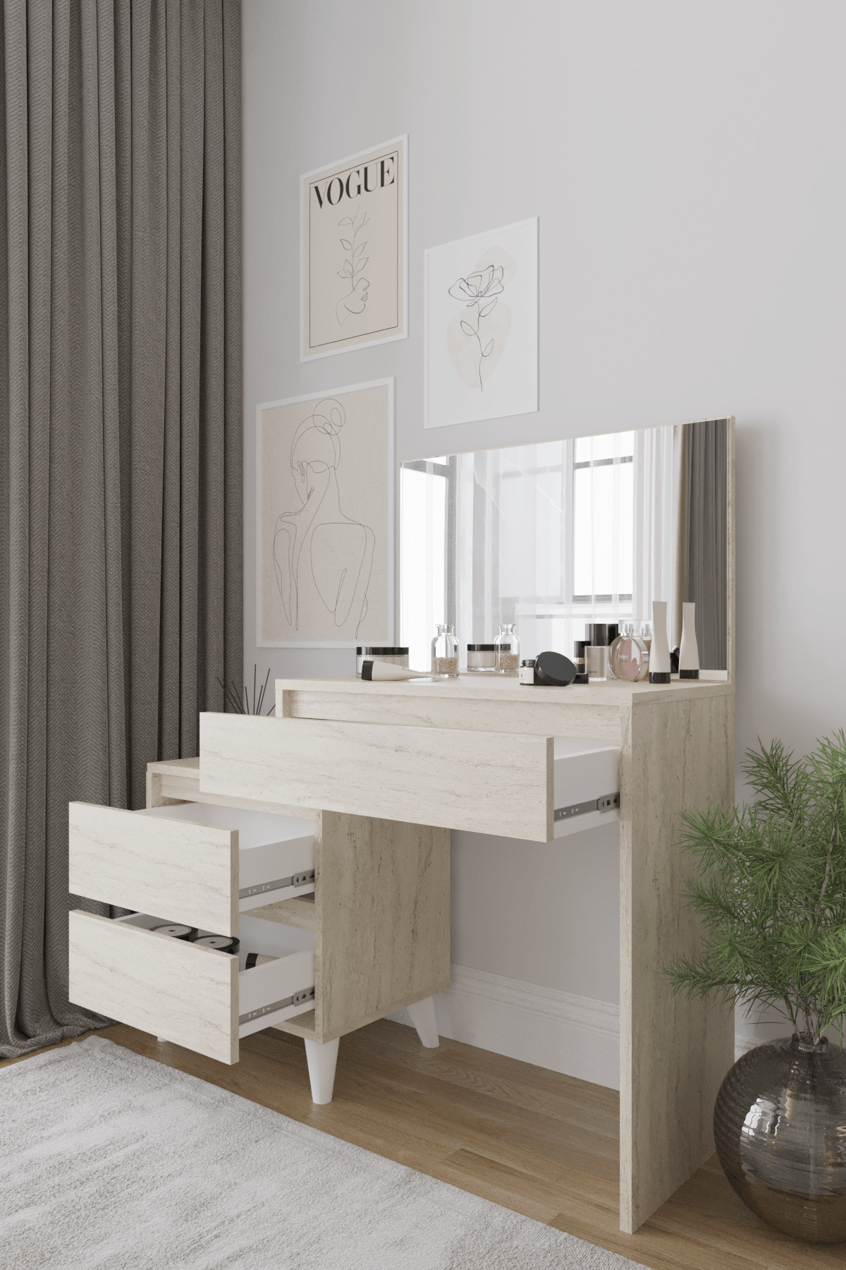 Package Includes: 1 x Viona Vanity Table, Connection Accessories, Installation Diagram.