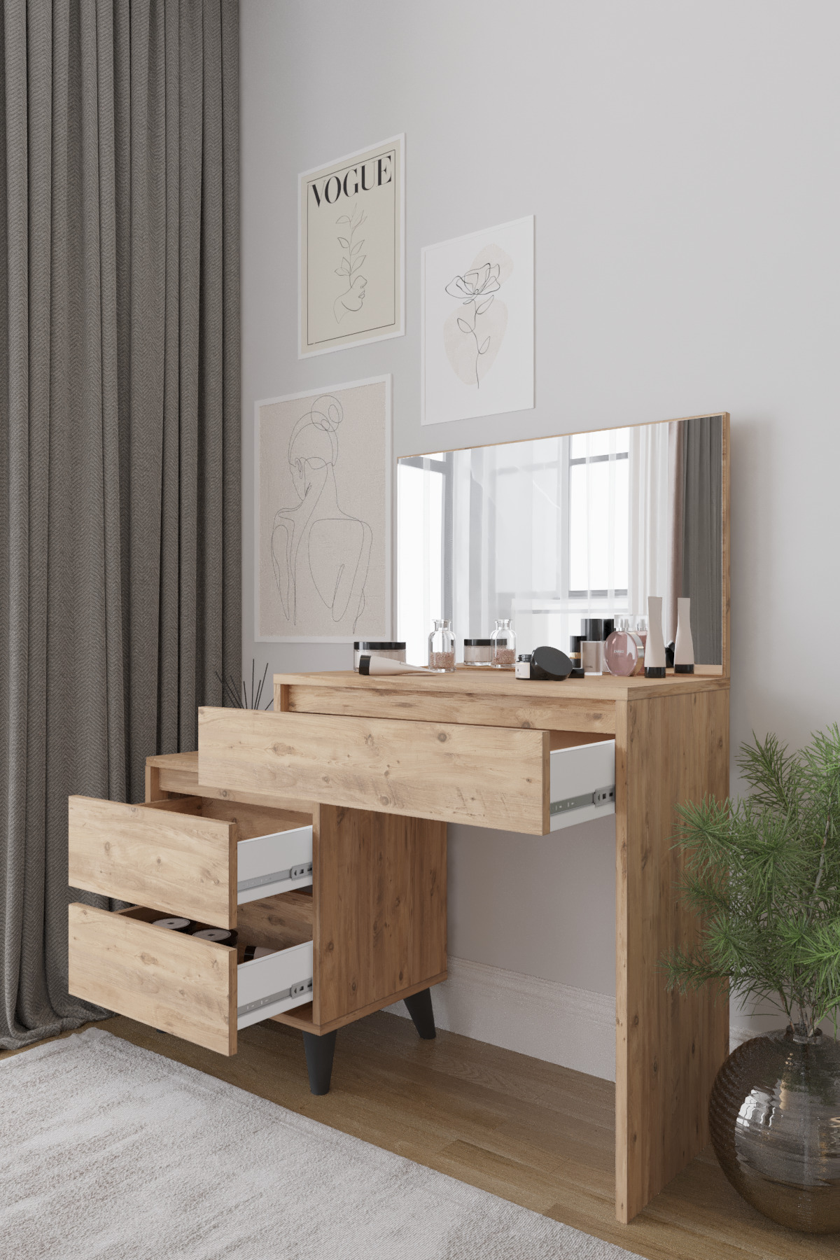 AYMOBSAN Viona Makeup Table with 3 Drawers and Mirror - Atlantic Pine | ByTR
