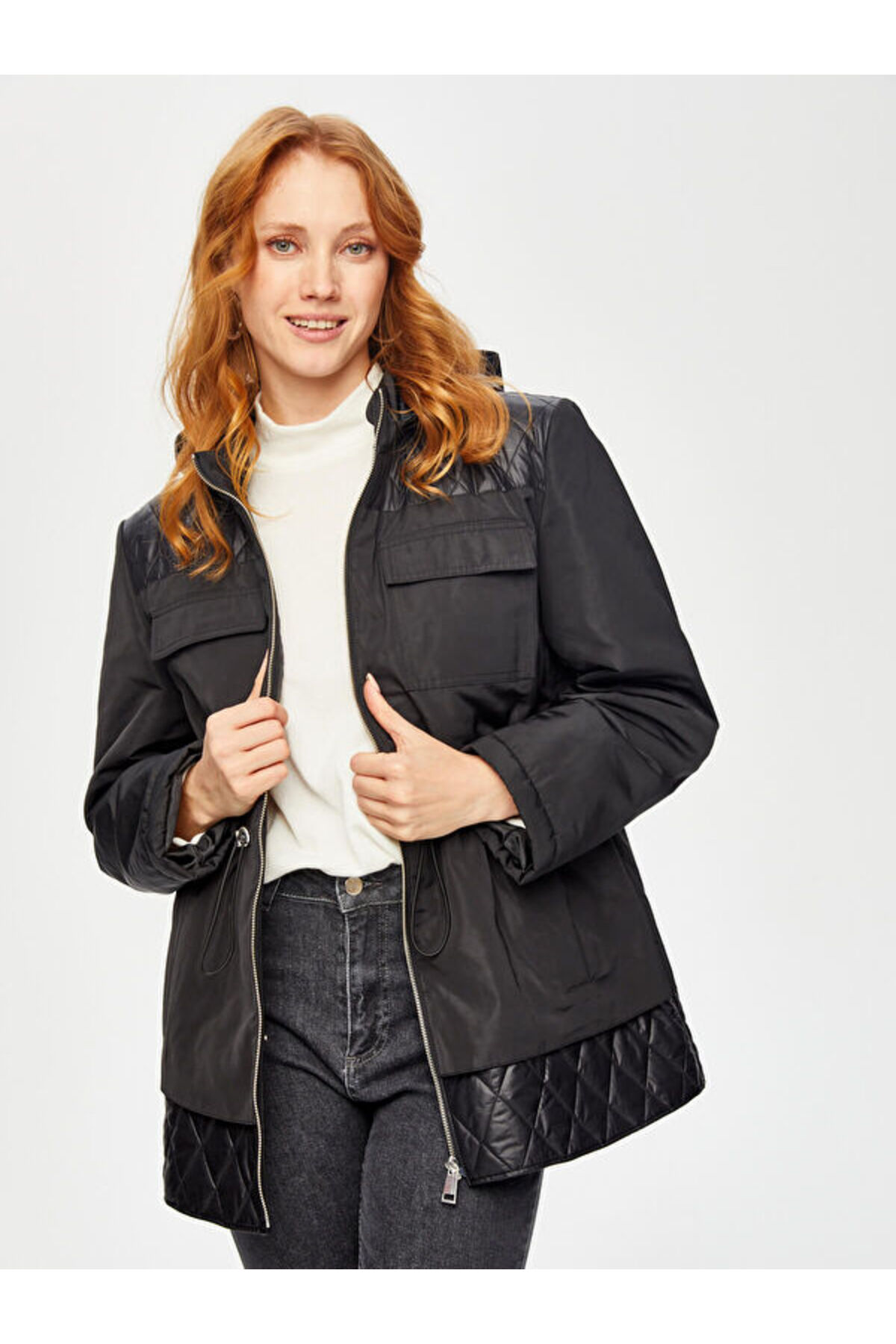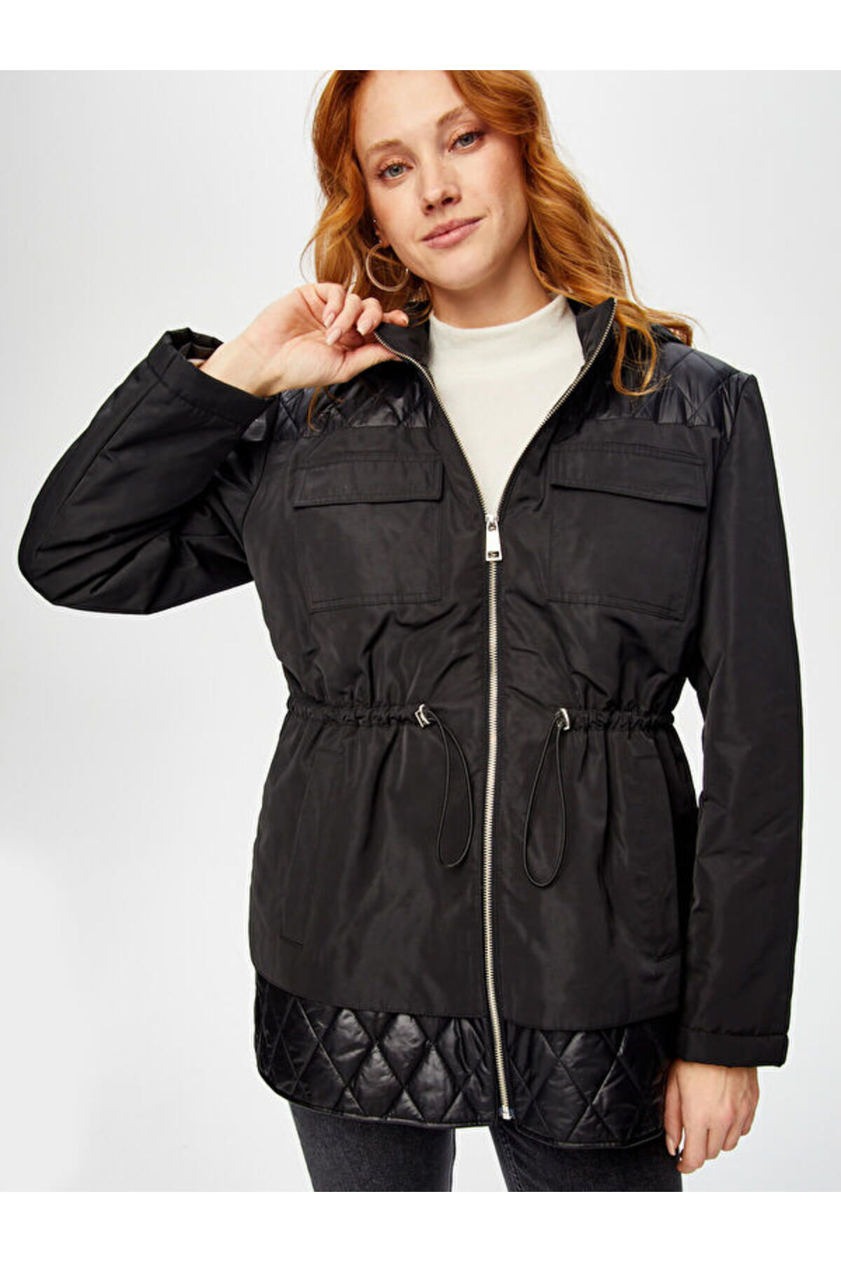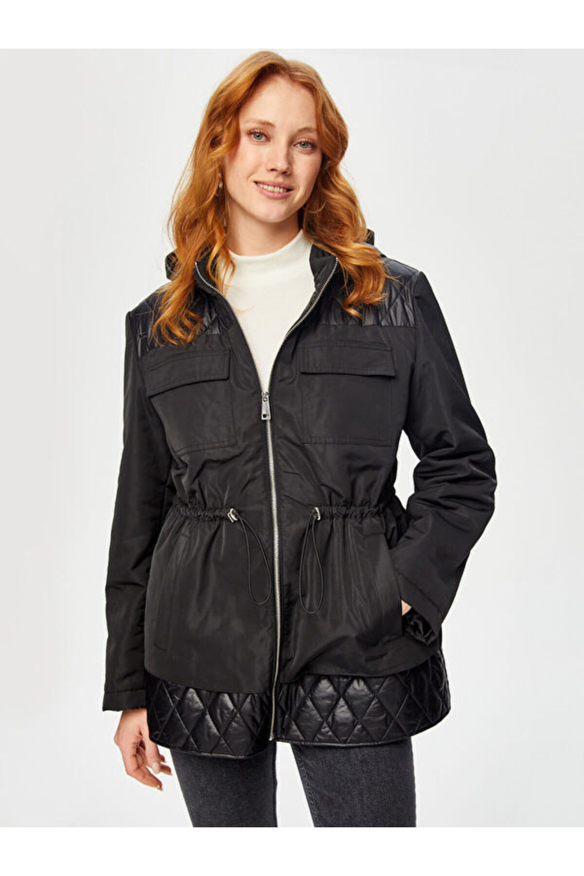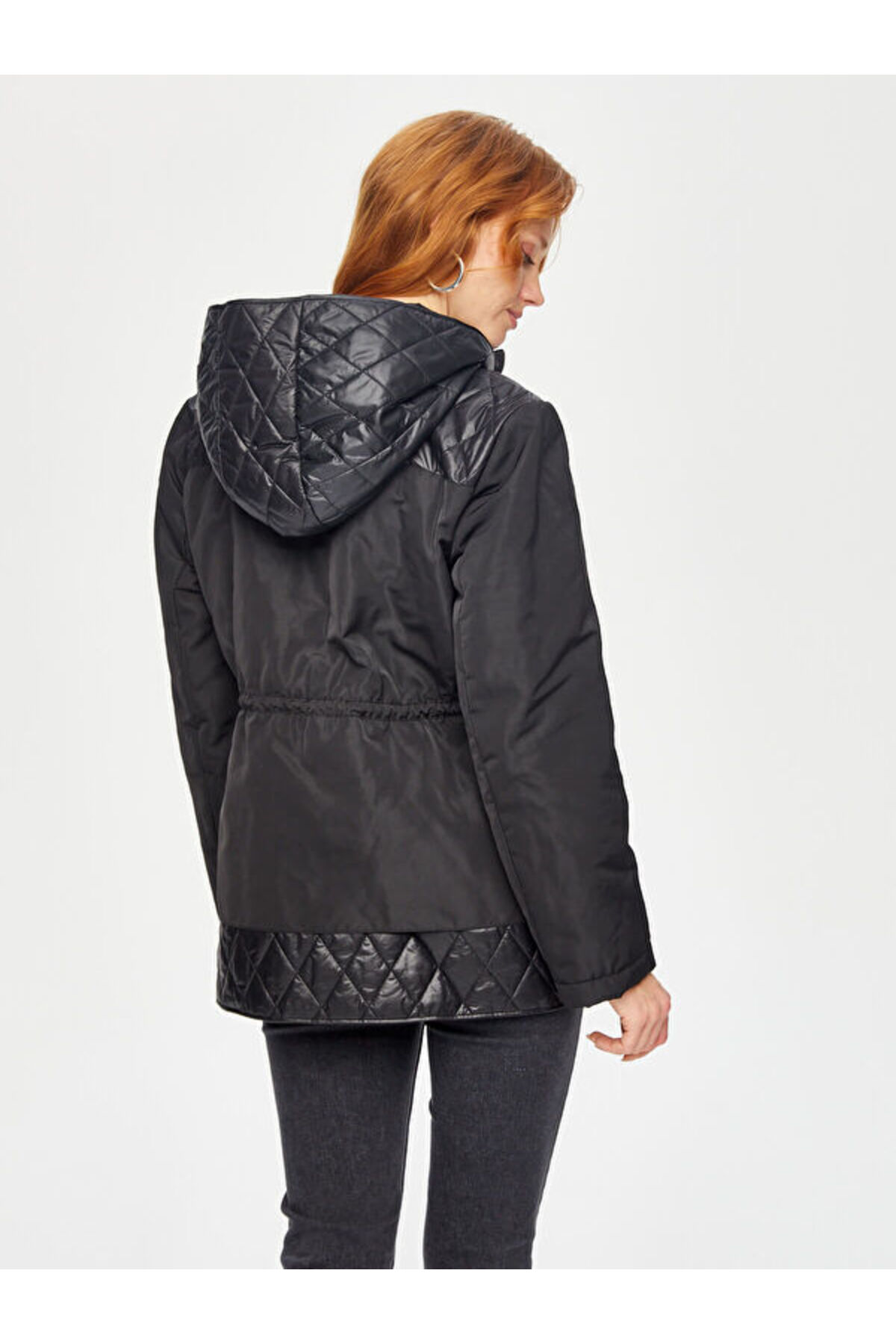 Tunneled Waist Hooded Quilted Coat 69423