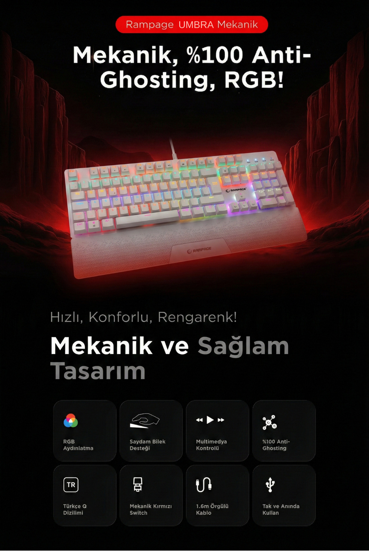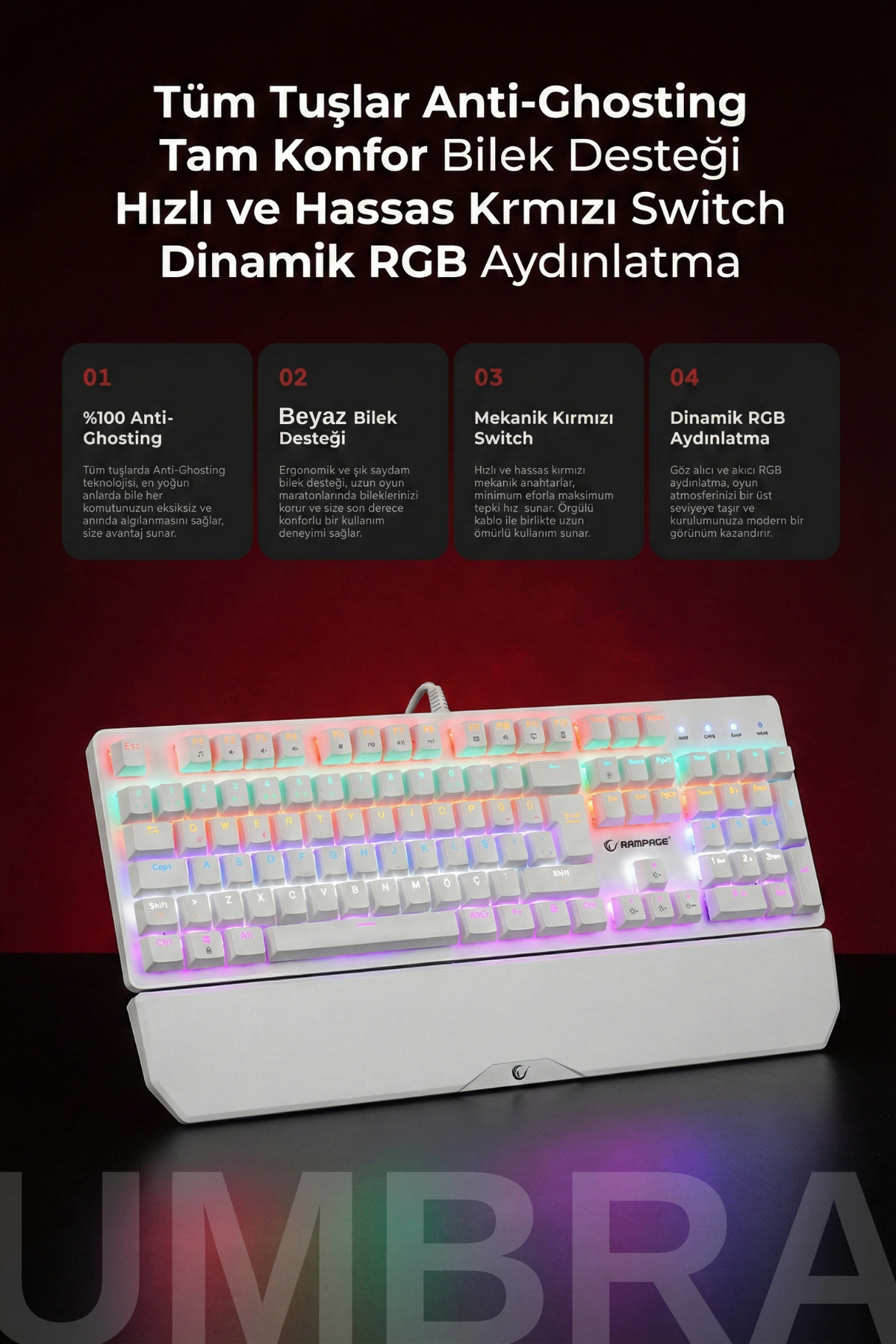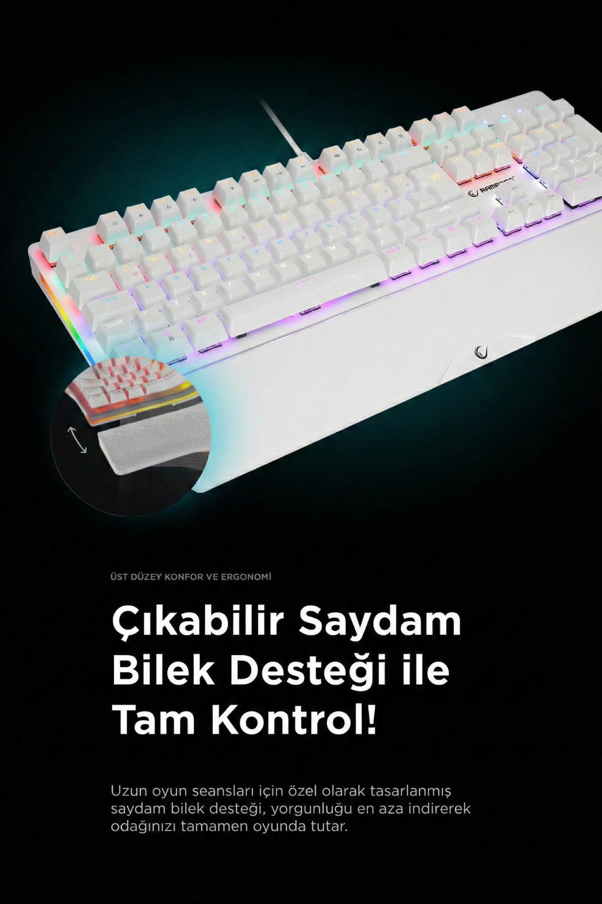 Thanks to high performance mechanical switches, it speeds up your gaming experience and provides precise control.