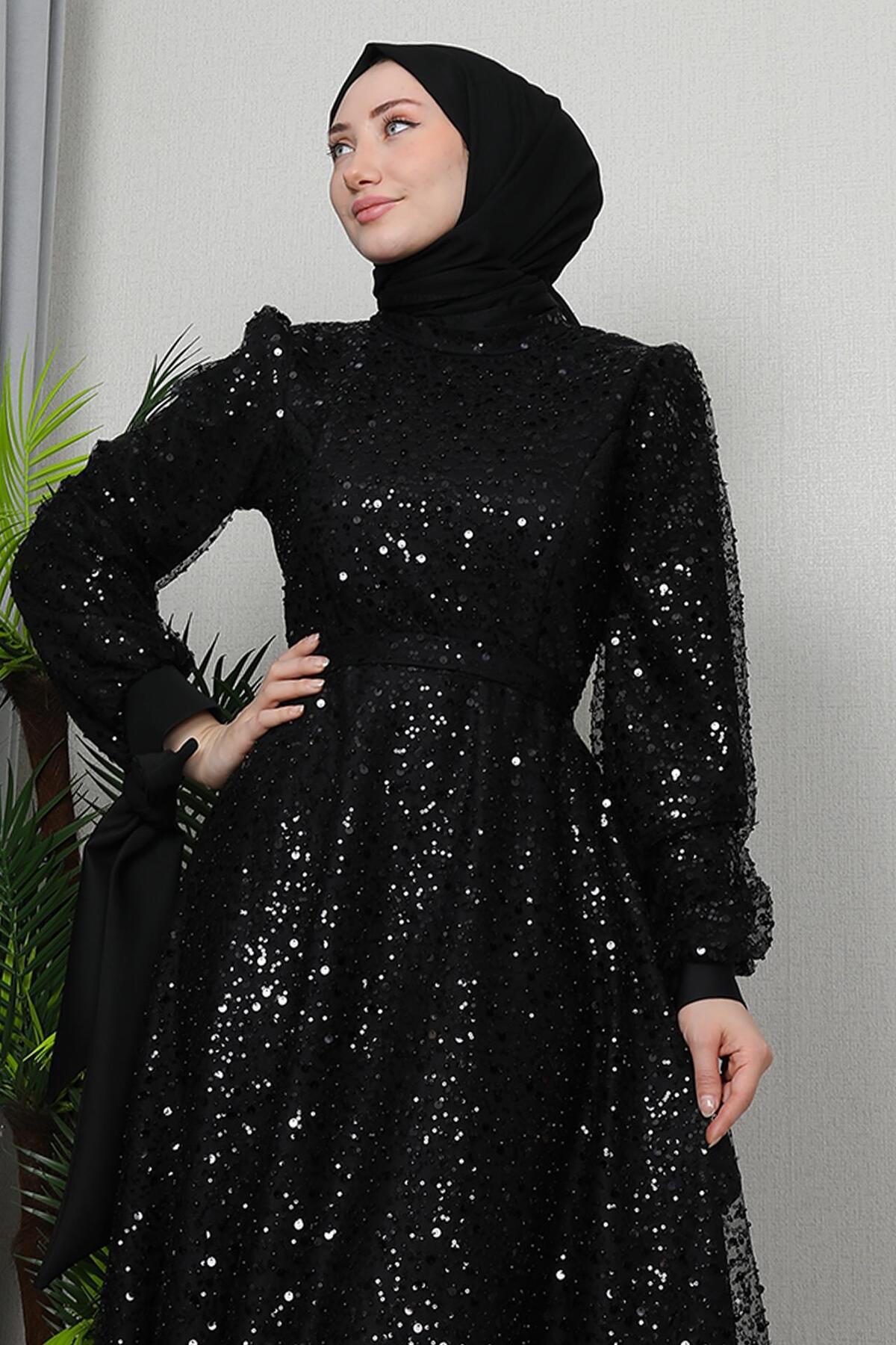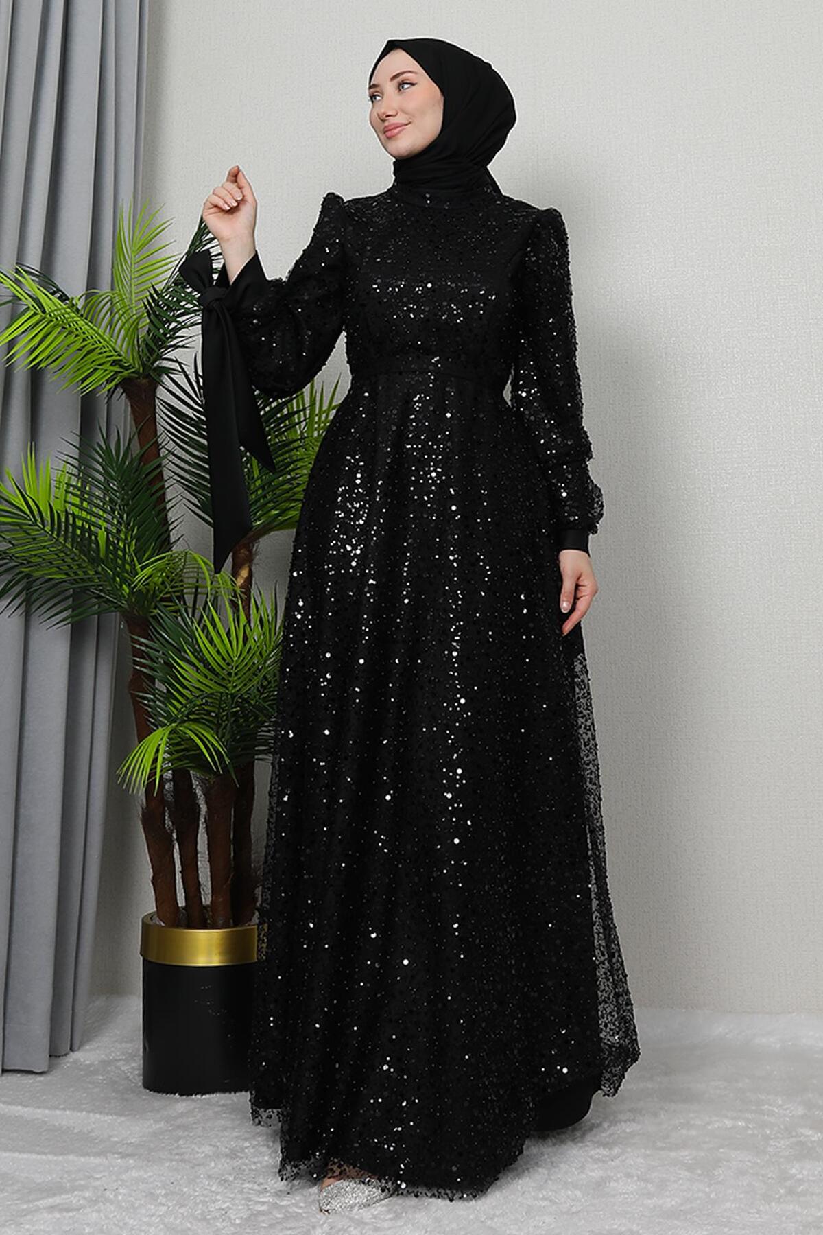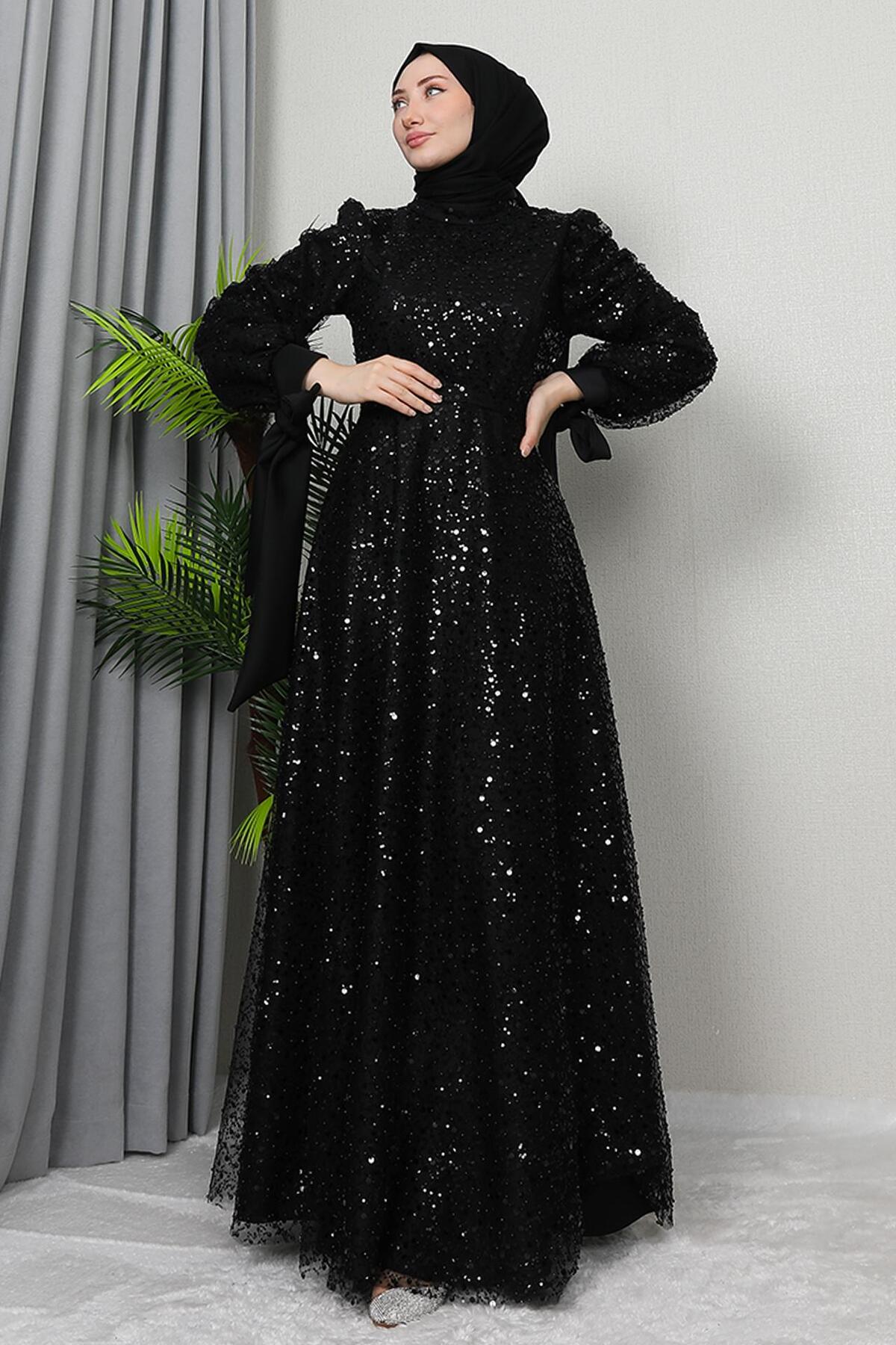 Betül Hijab Evening Dress Black