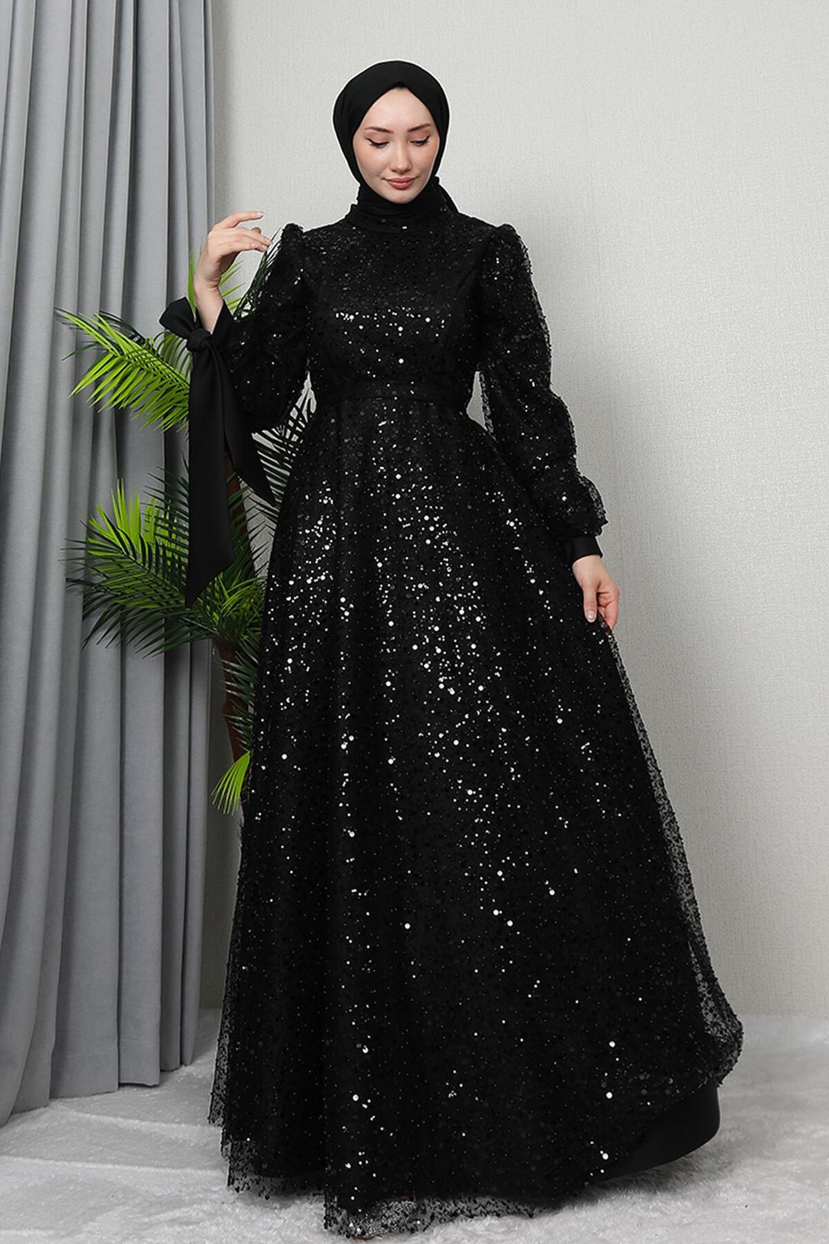 giz astore Betül Hijab Evening Dress Black | ByTR