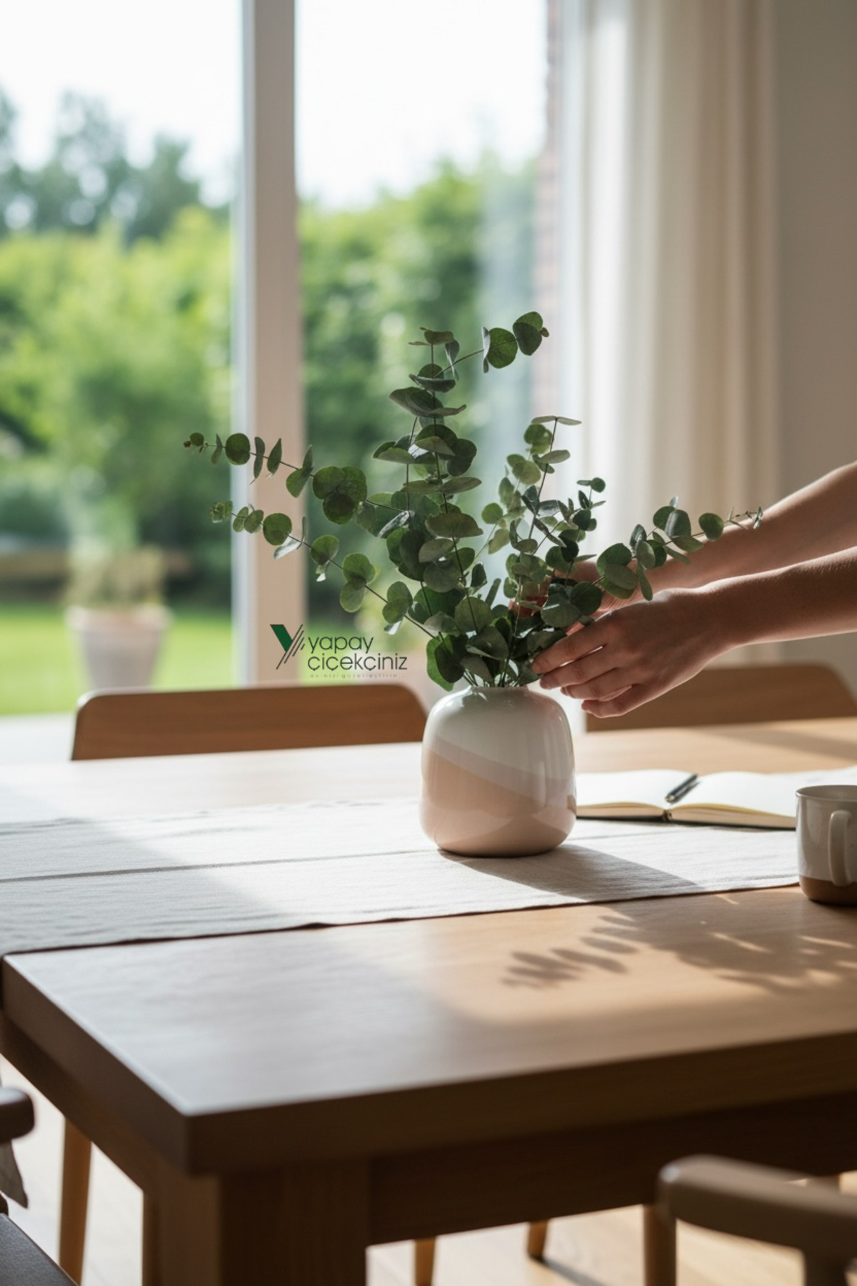 The large bundle of eucalyptus, a symbol of natural beauty, refreshes the atmosphere of your home or office, creating a peaceful environment.