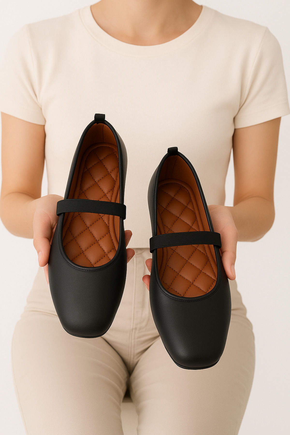 StWenn Women's Black Flats Home Casual and Office Anti-Slip Lightweight Comfortable Orthopedic Sole Mother Shoes | ByTR