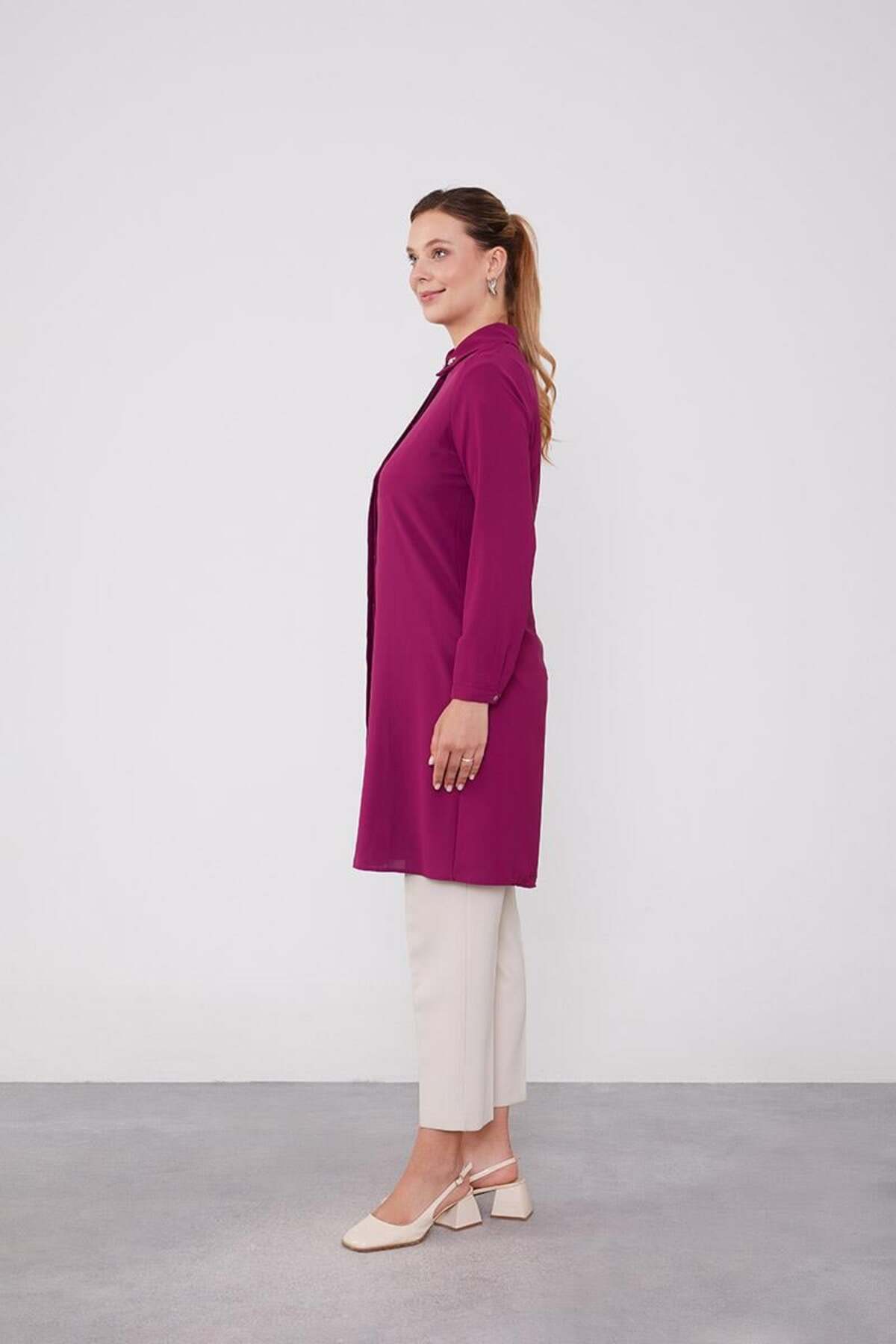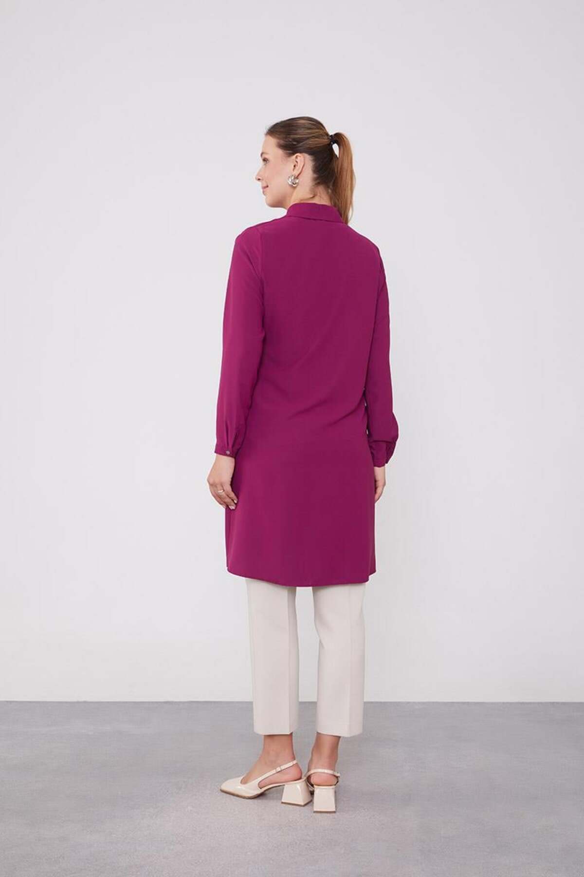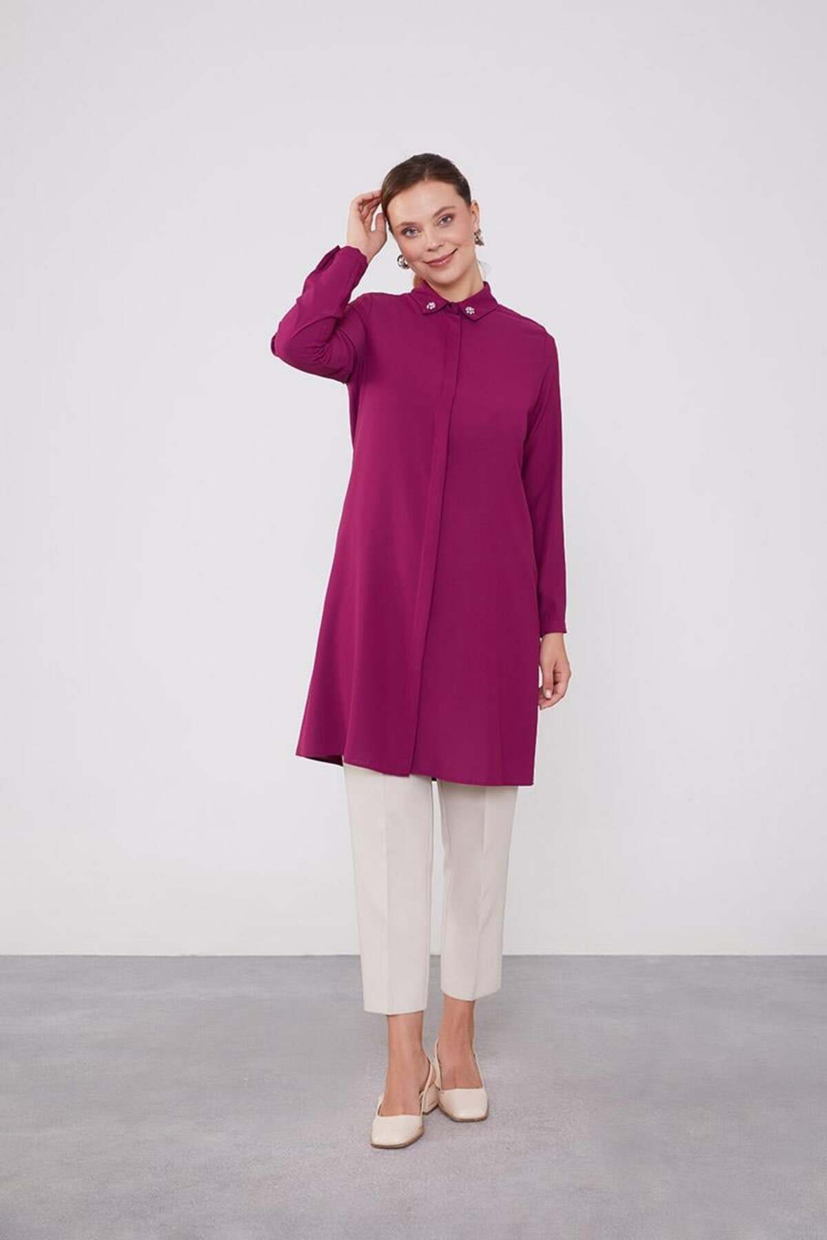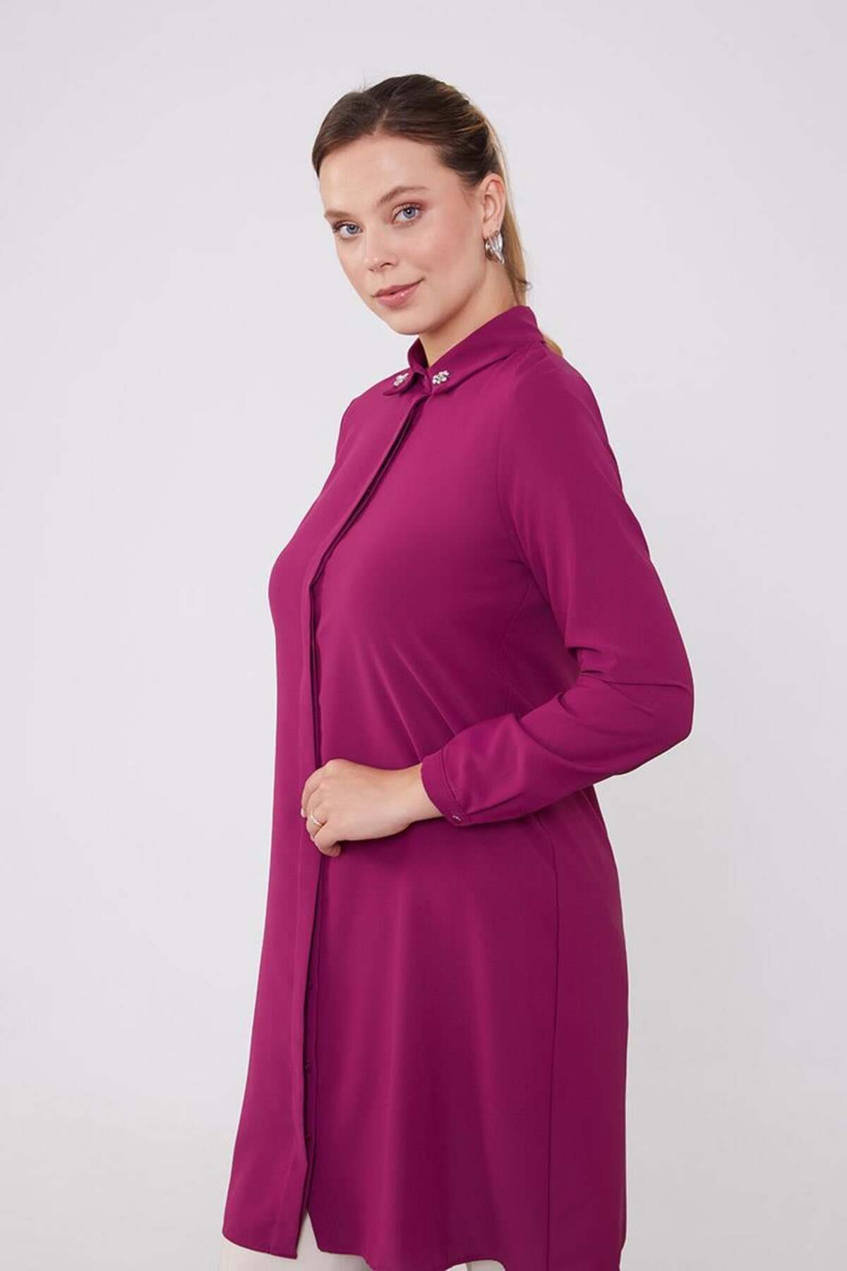 Levidor Long Shirt with Fuchsia Collar Gemstone | ByTR