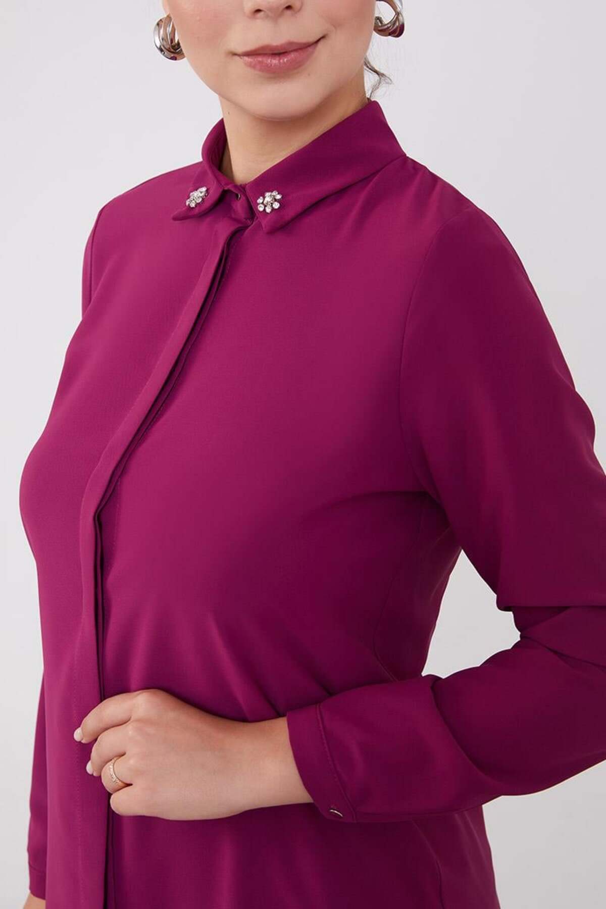 Long Shirt with Fuchsia Collar Gemstone