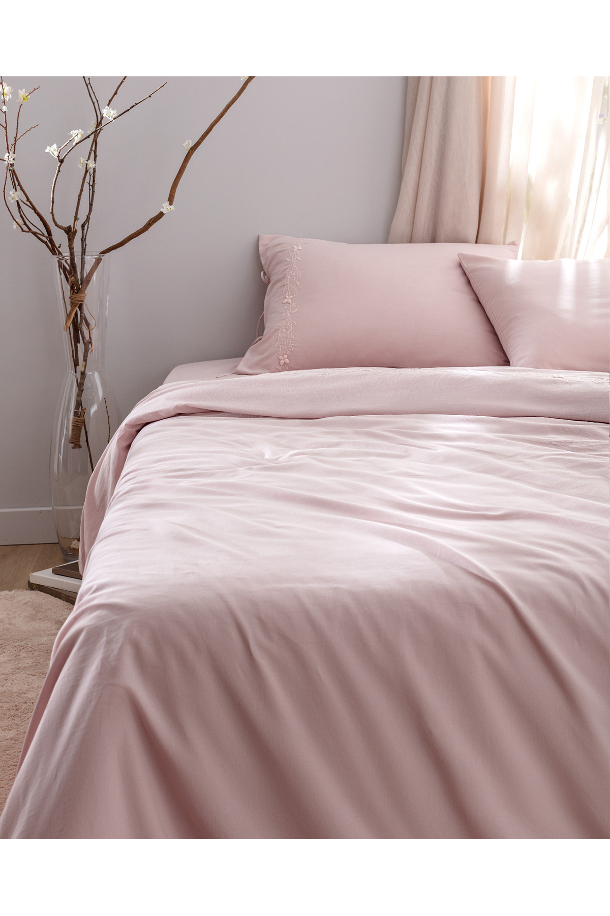 Double 100% Cotton Embroidered Duvet Cover Set - Powder