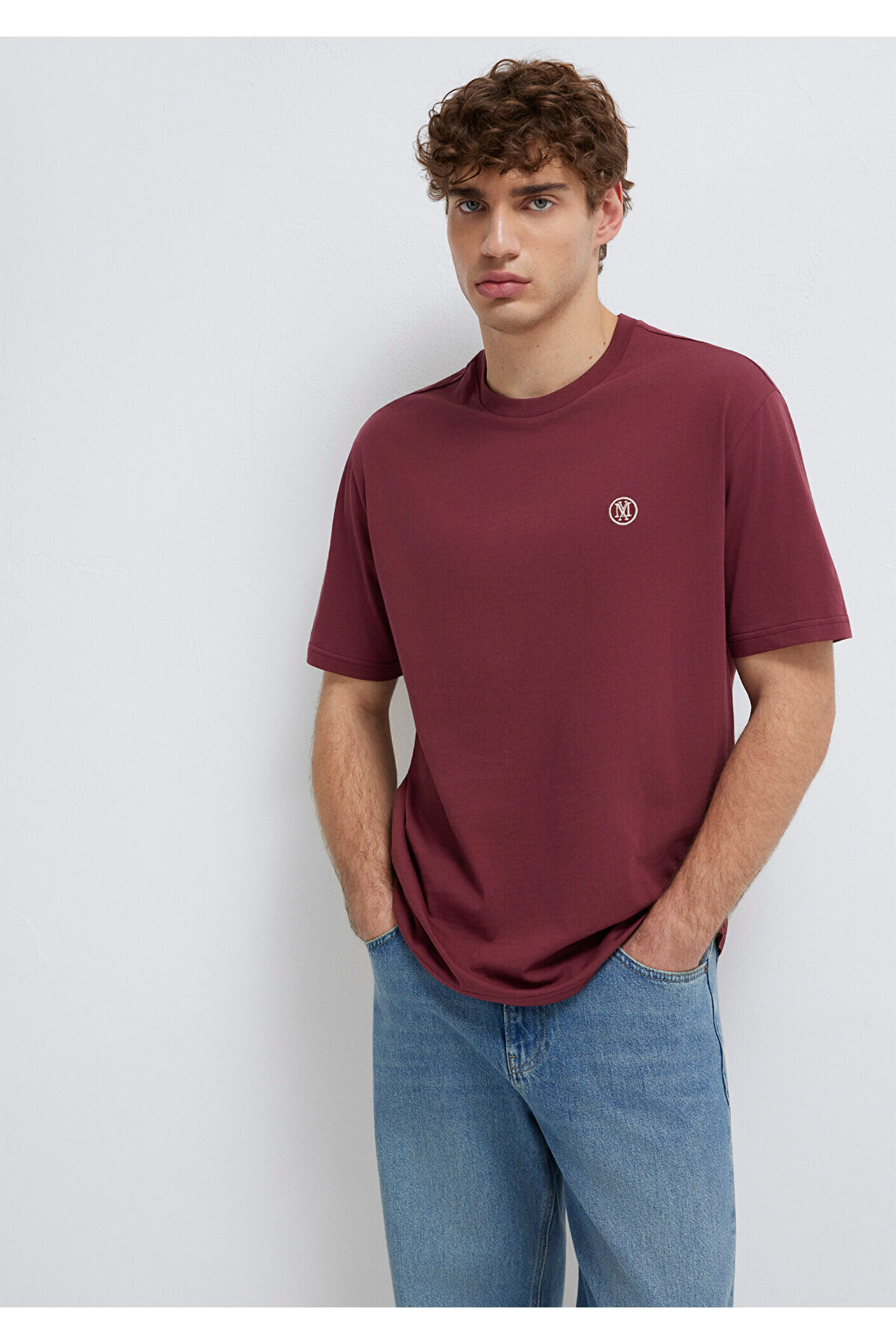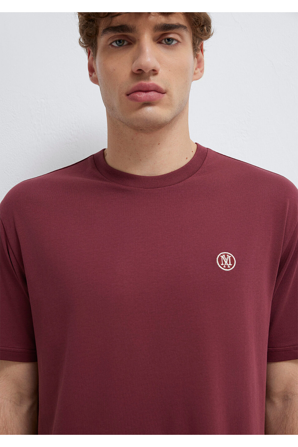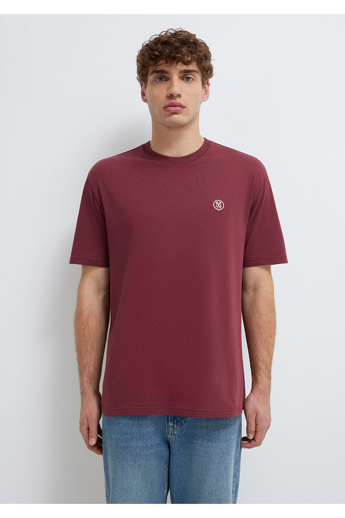 Blue Logo Embroidered Claret Red Basic T-Shirt.