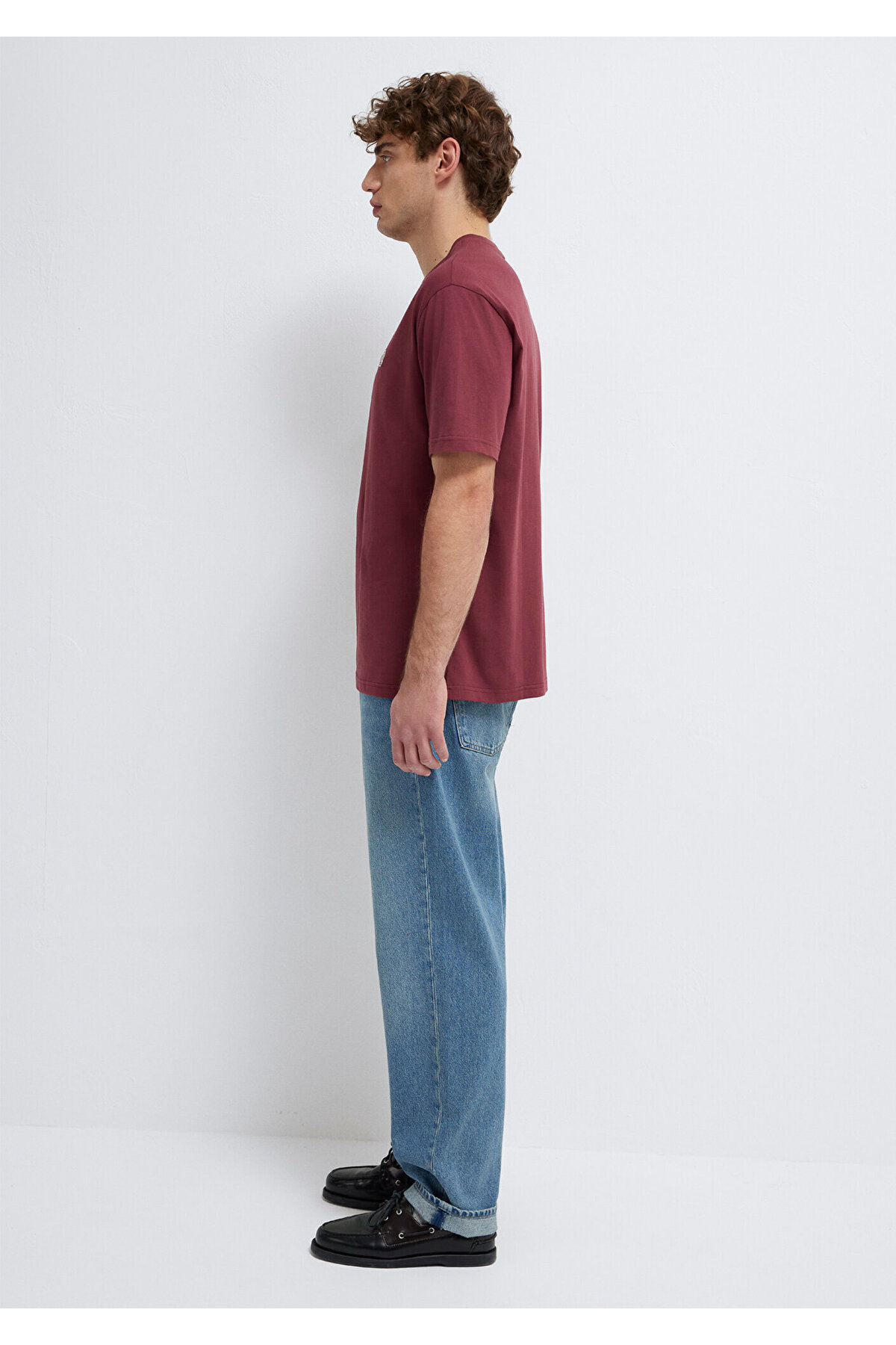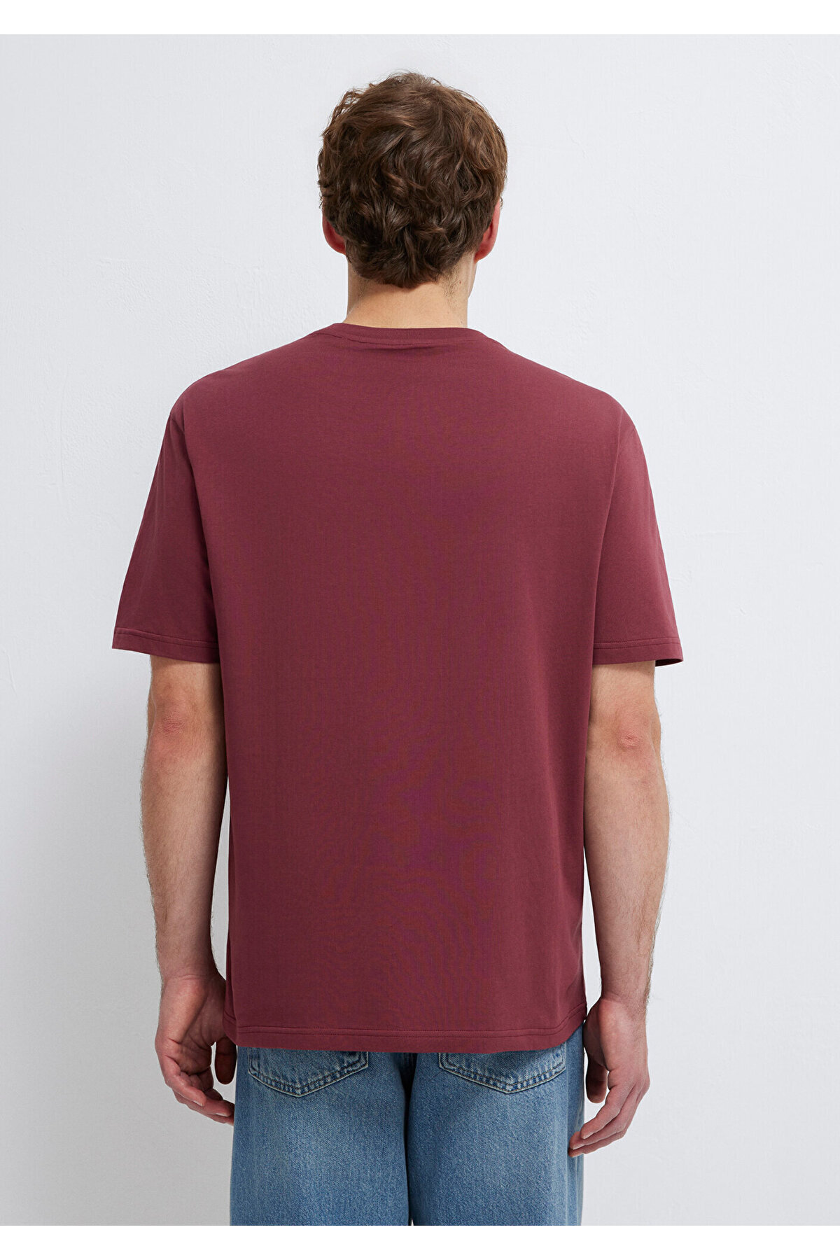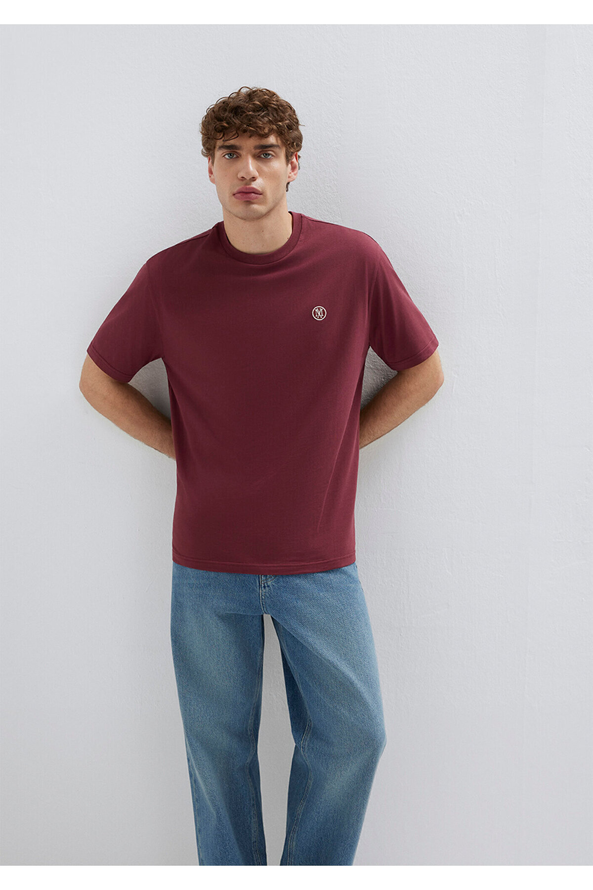 Blue Logo Embroidered Claret Red Basic T-Shirt.