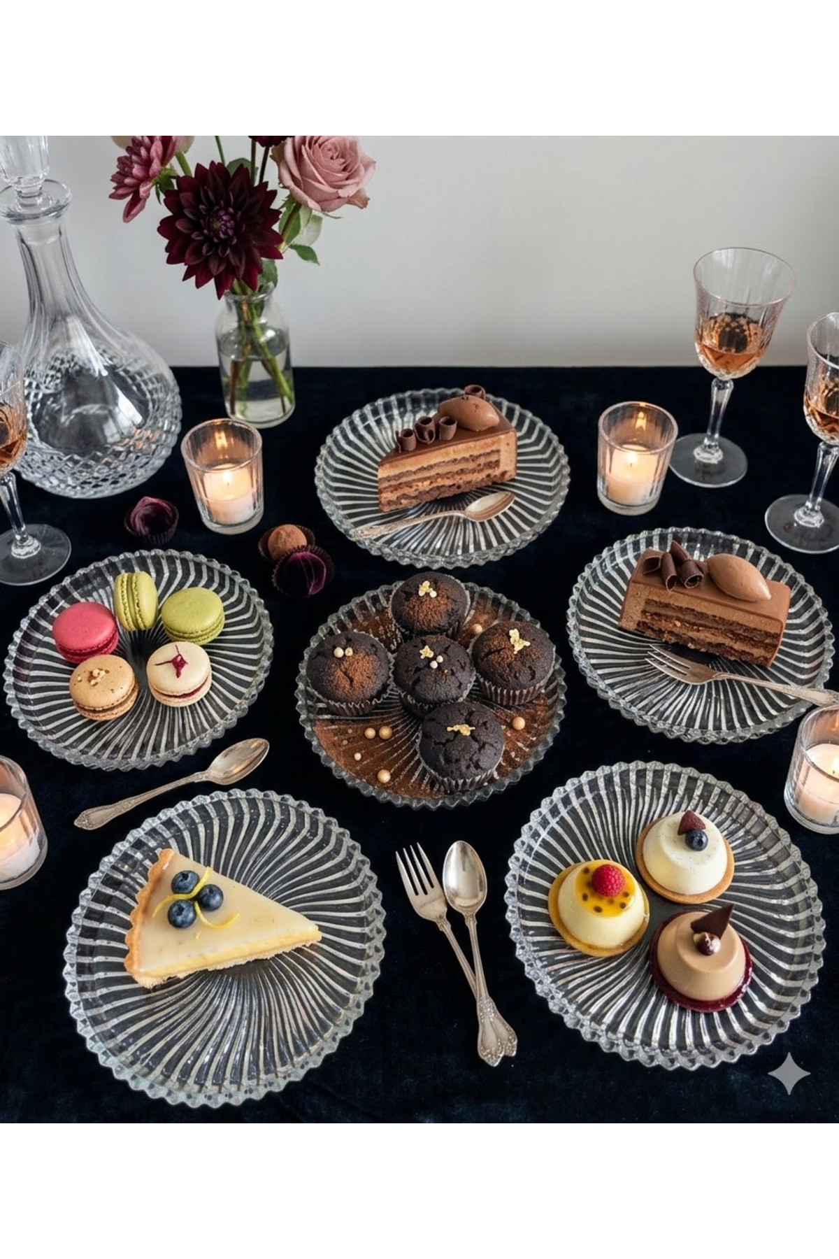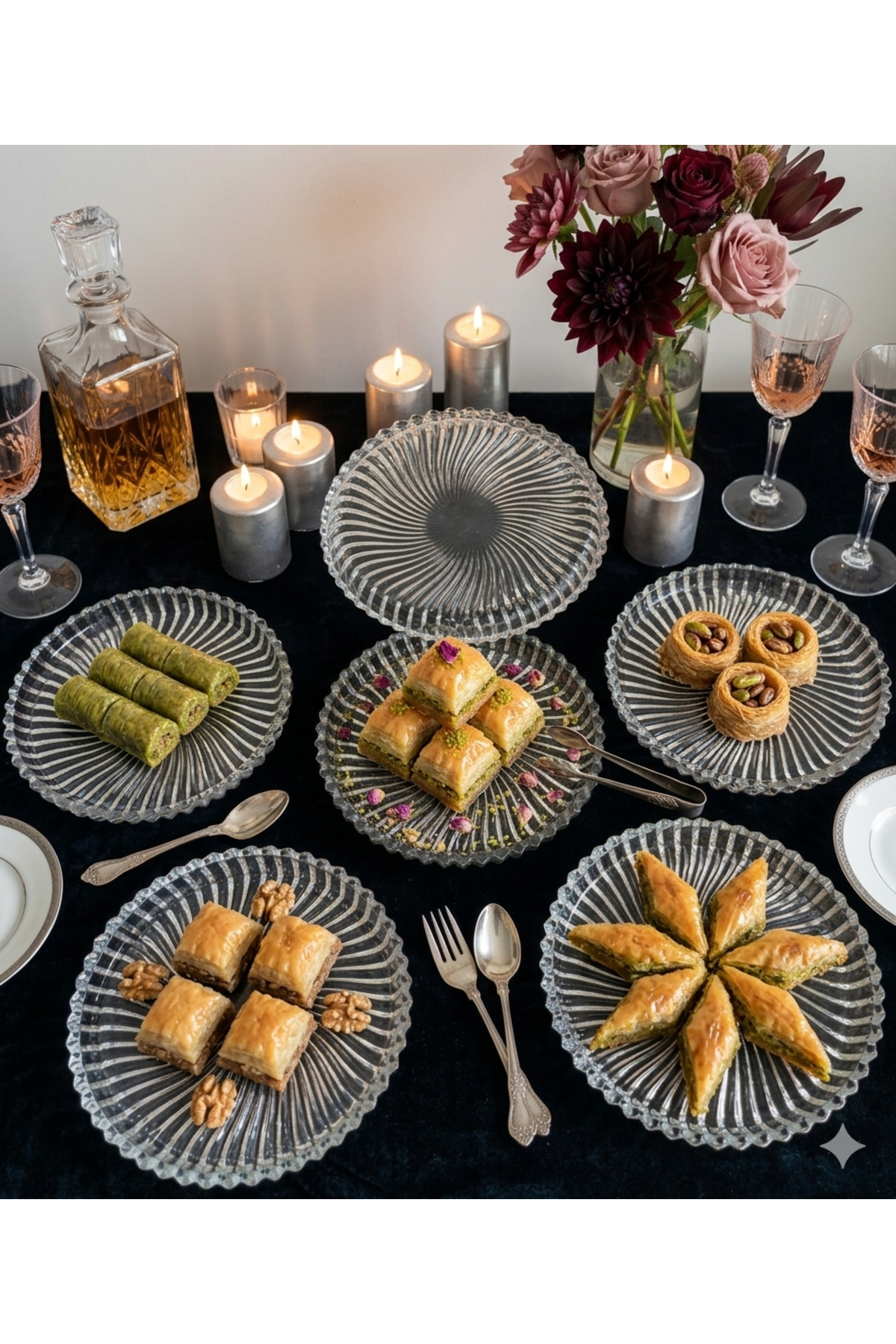 The glass plate set, which attracts attention with its new trend design, adds elegance to your tables.