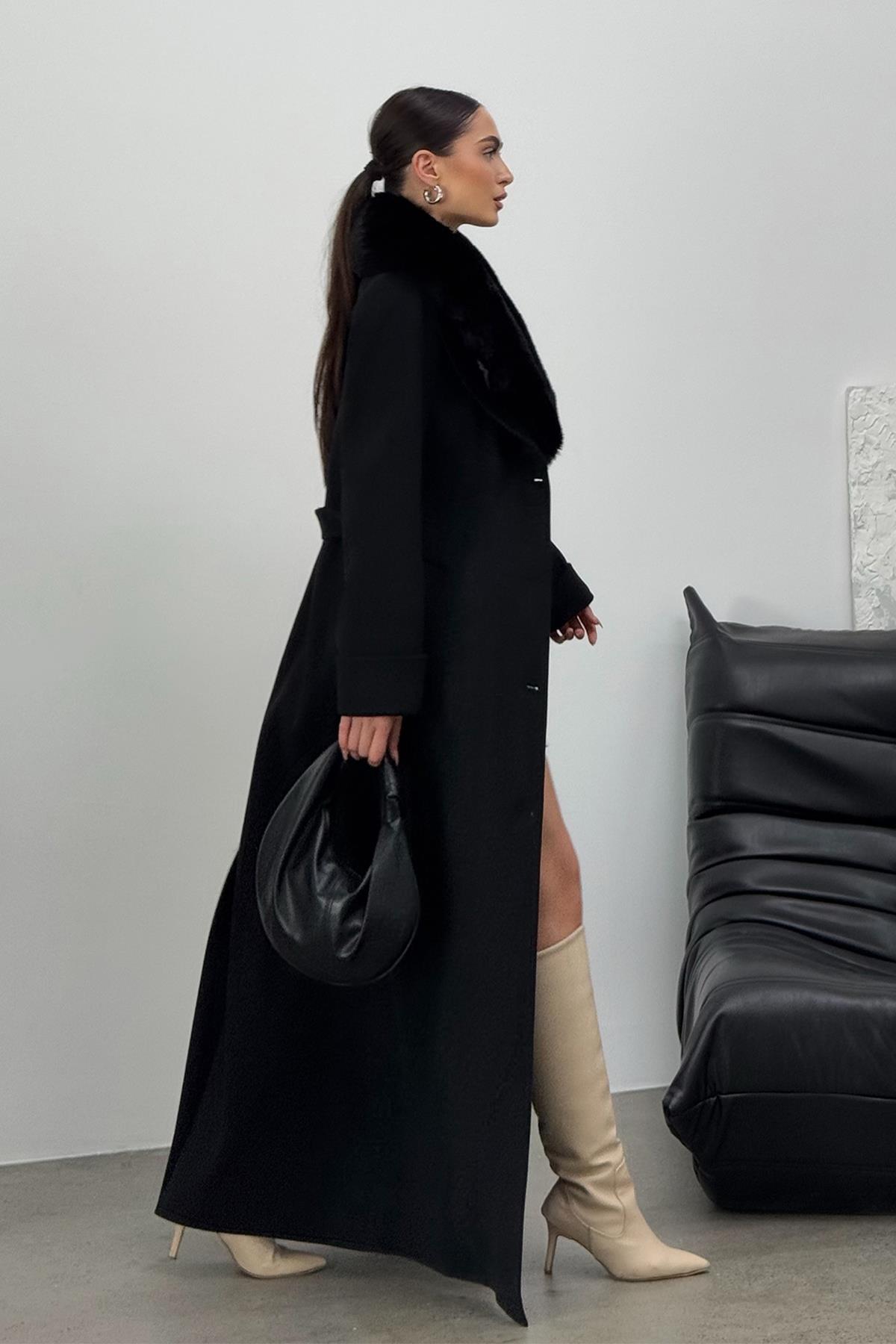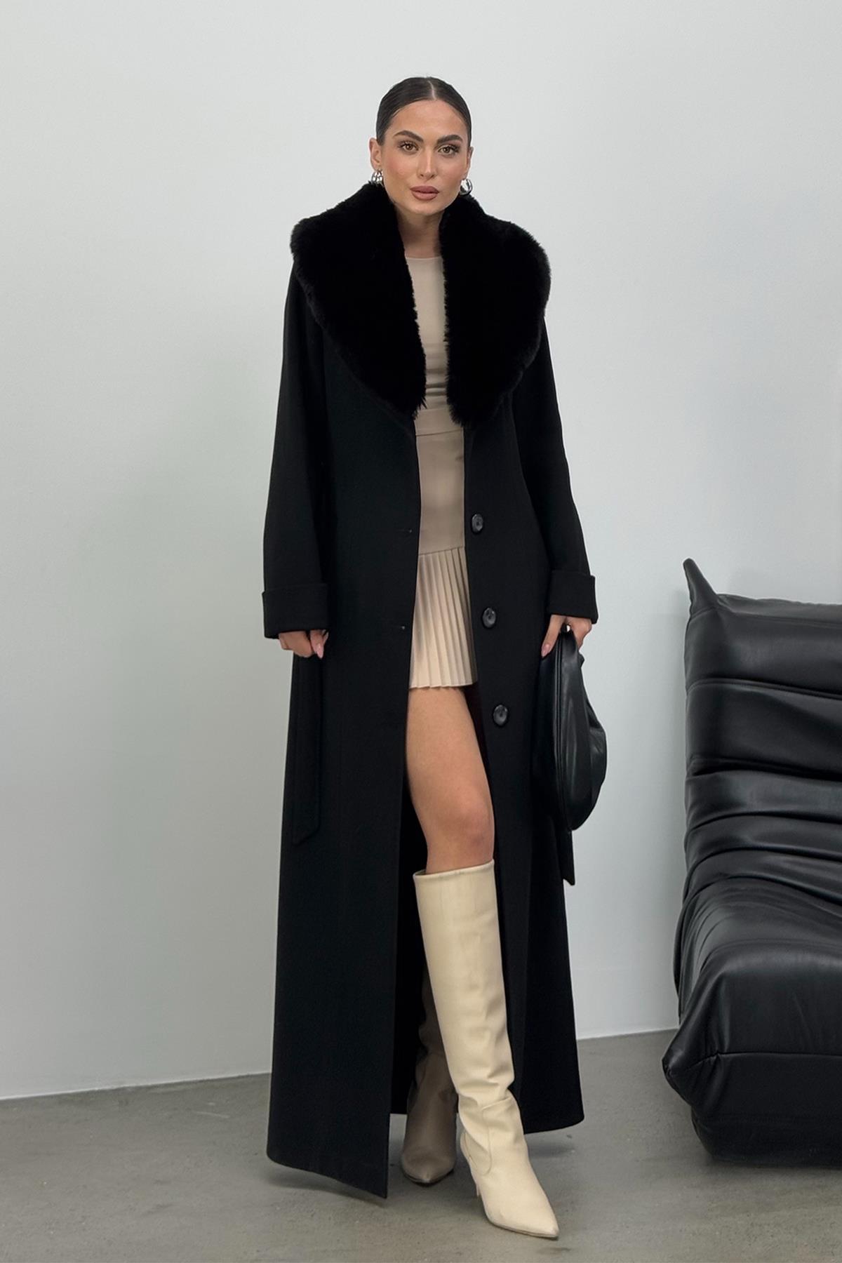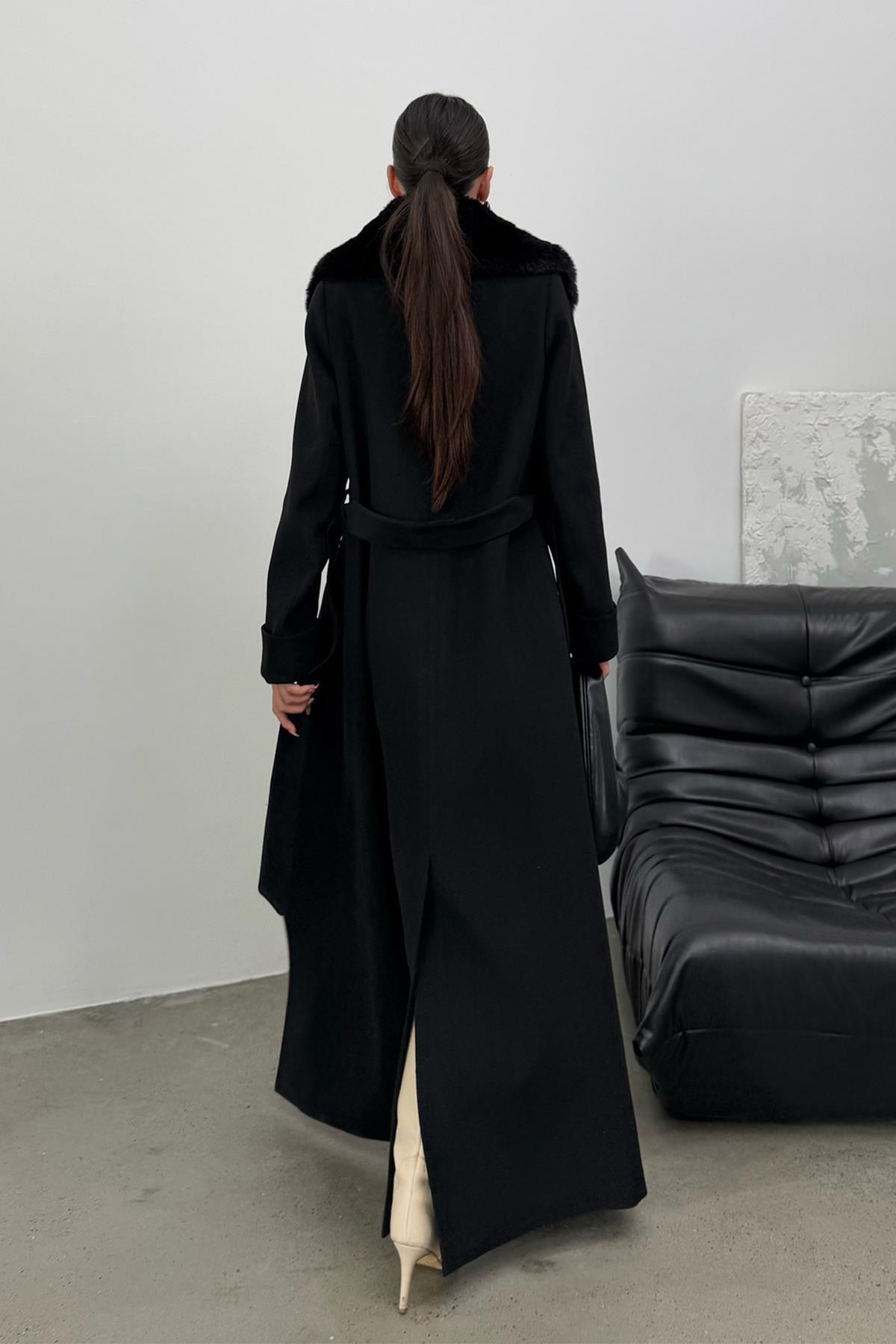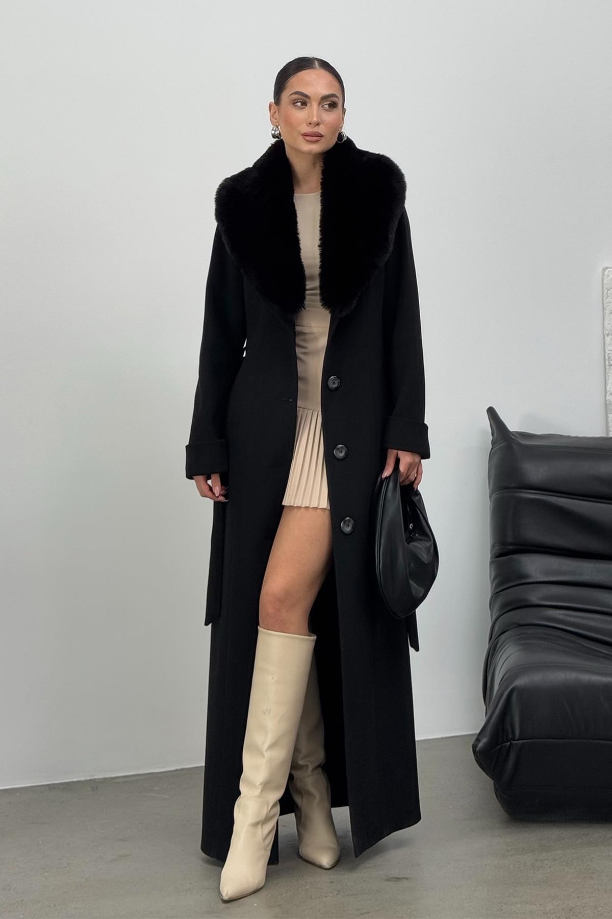Olcay Men's Detachable Fur Neck Waist Belted Coat BLACK 3015-Y | ByTR