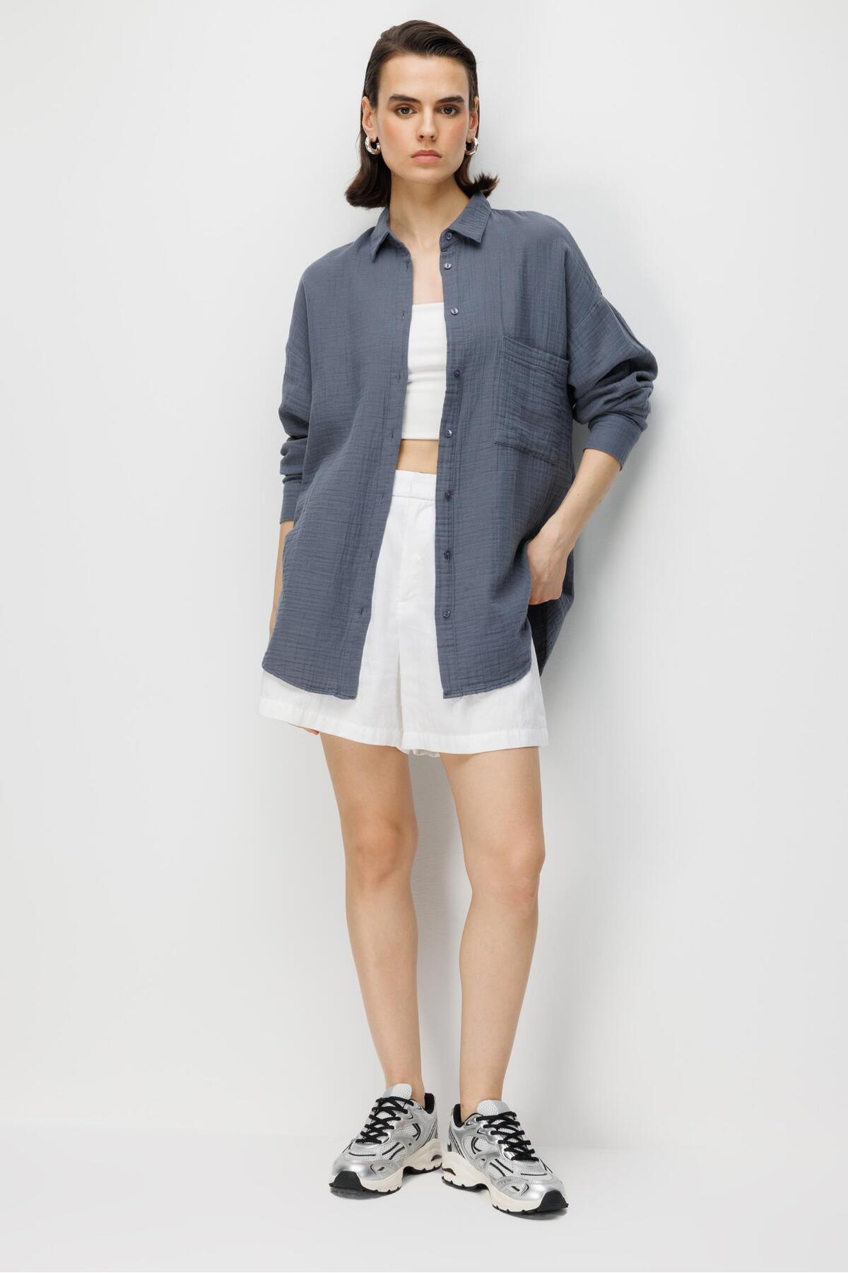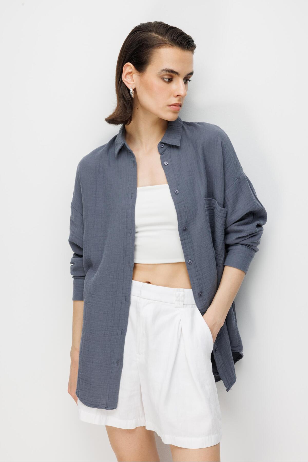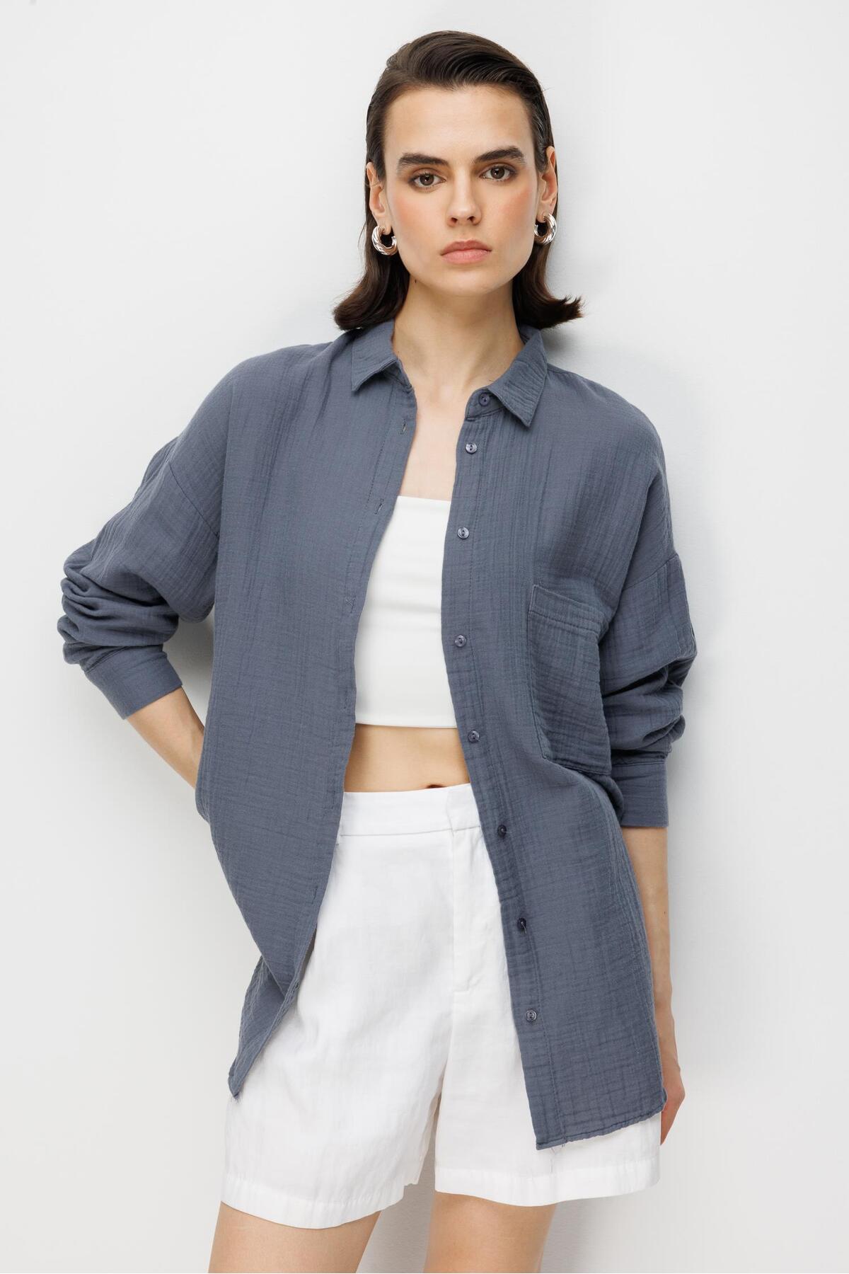 3833 Women's Muslin Shirt with Oversized Pockets Anthracite