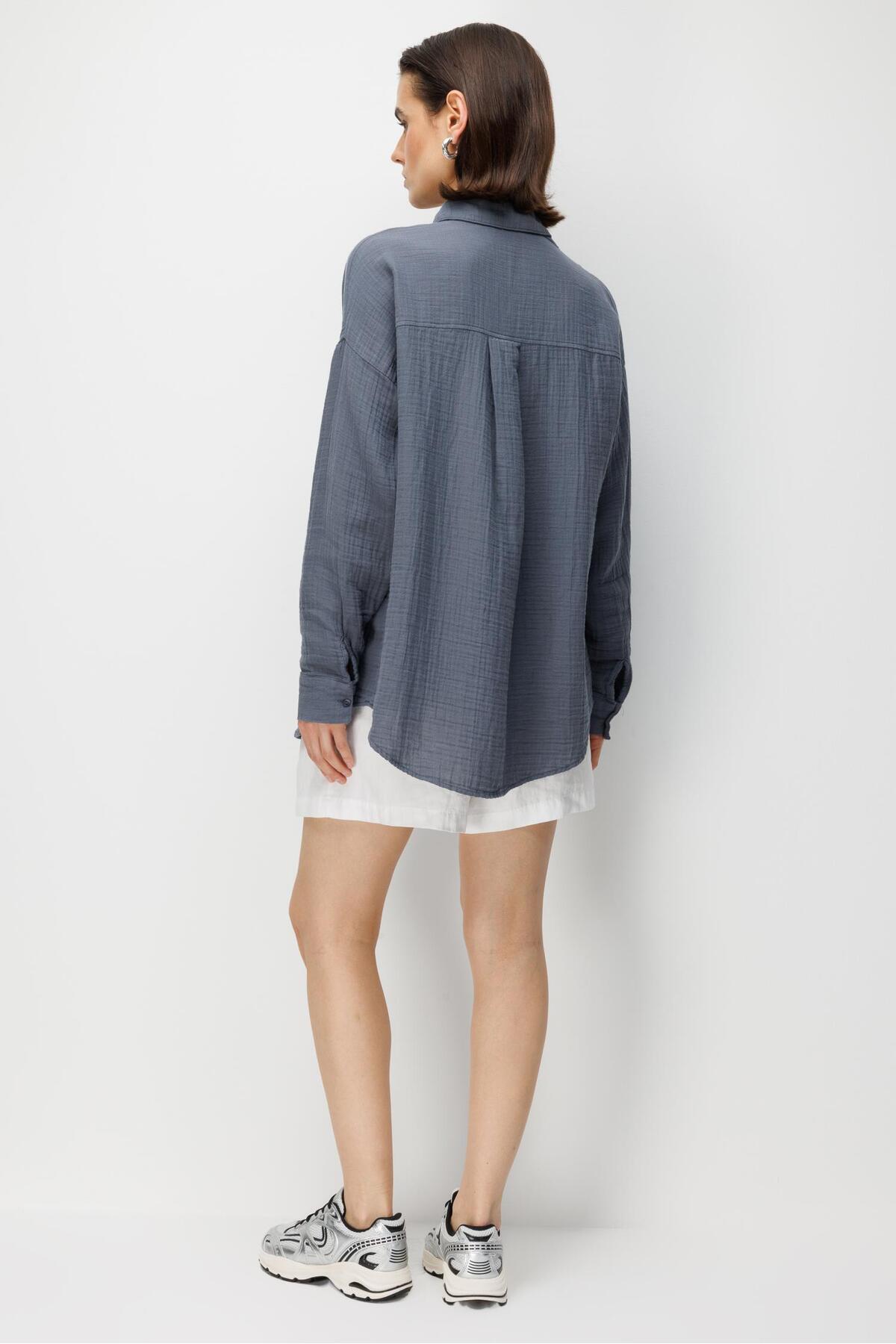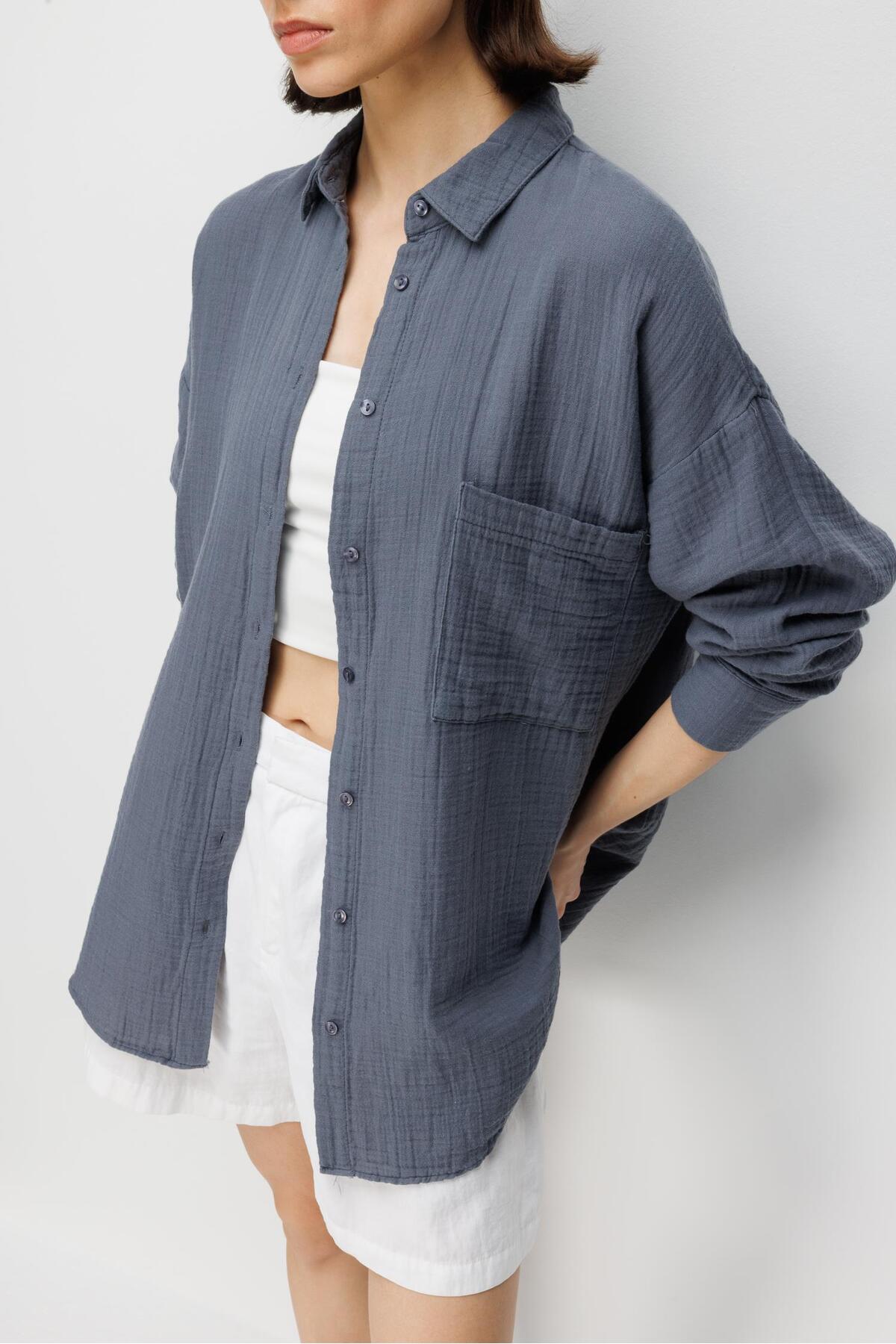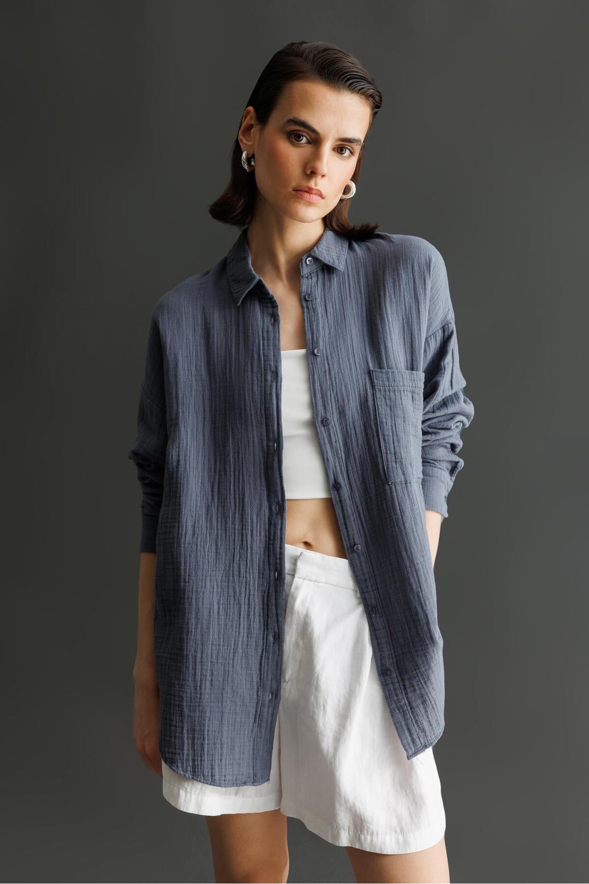 3833 Women's Muslin Shirt with Oversized Pockets Anthracite