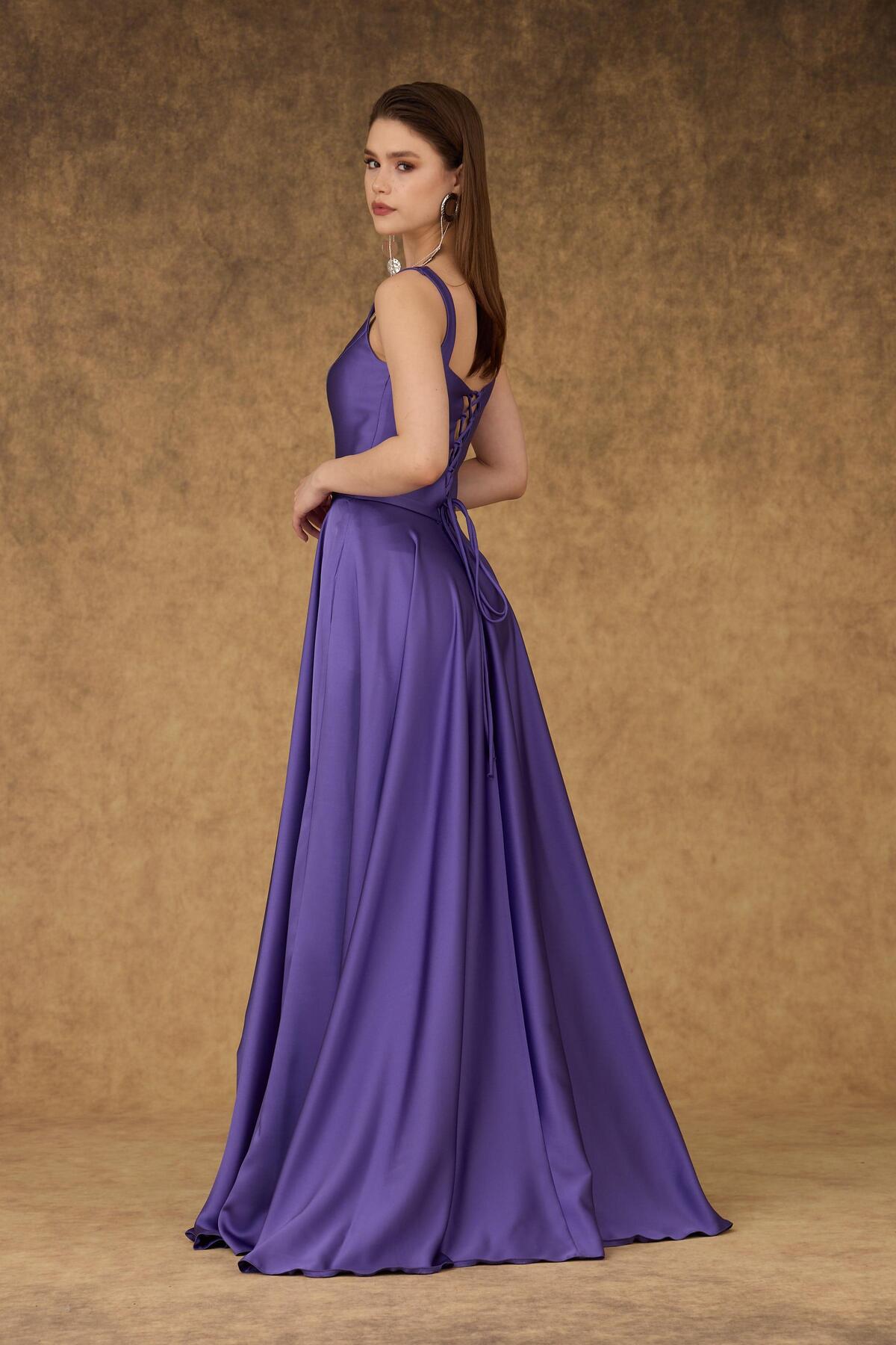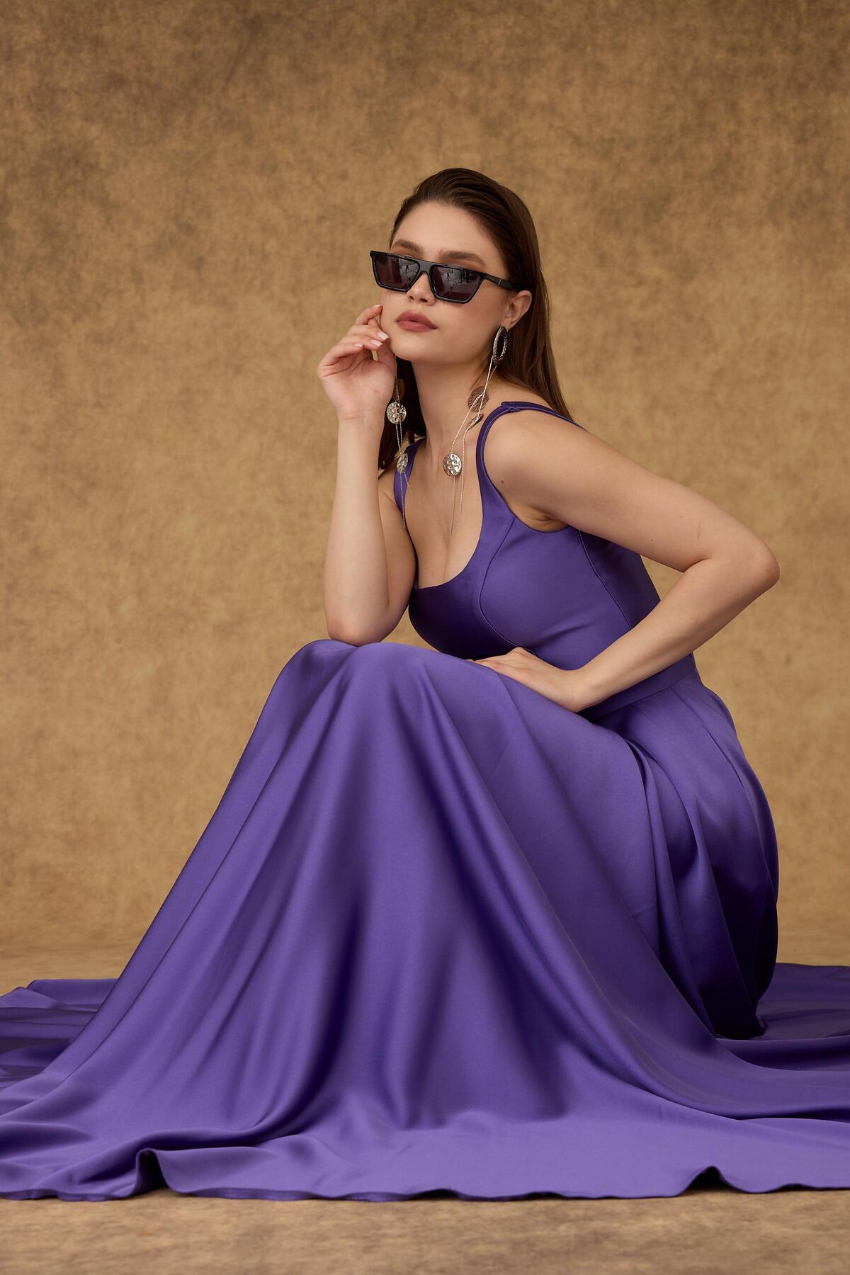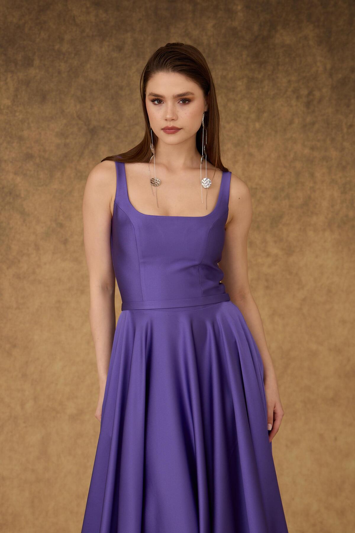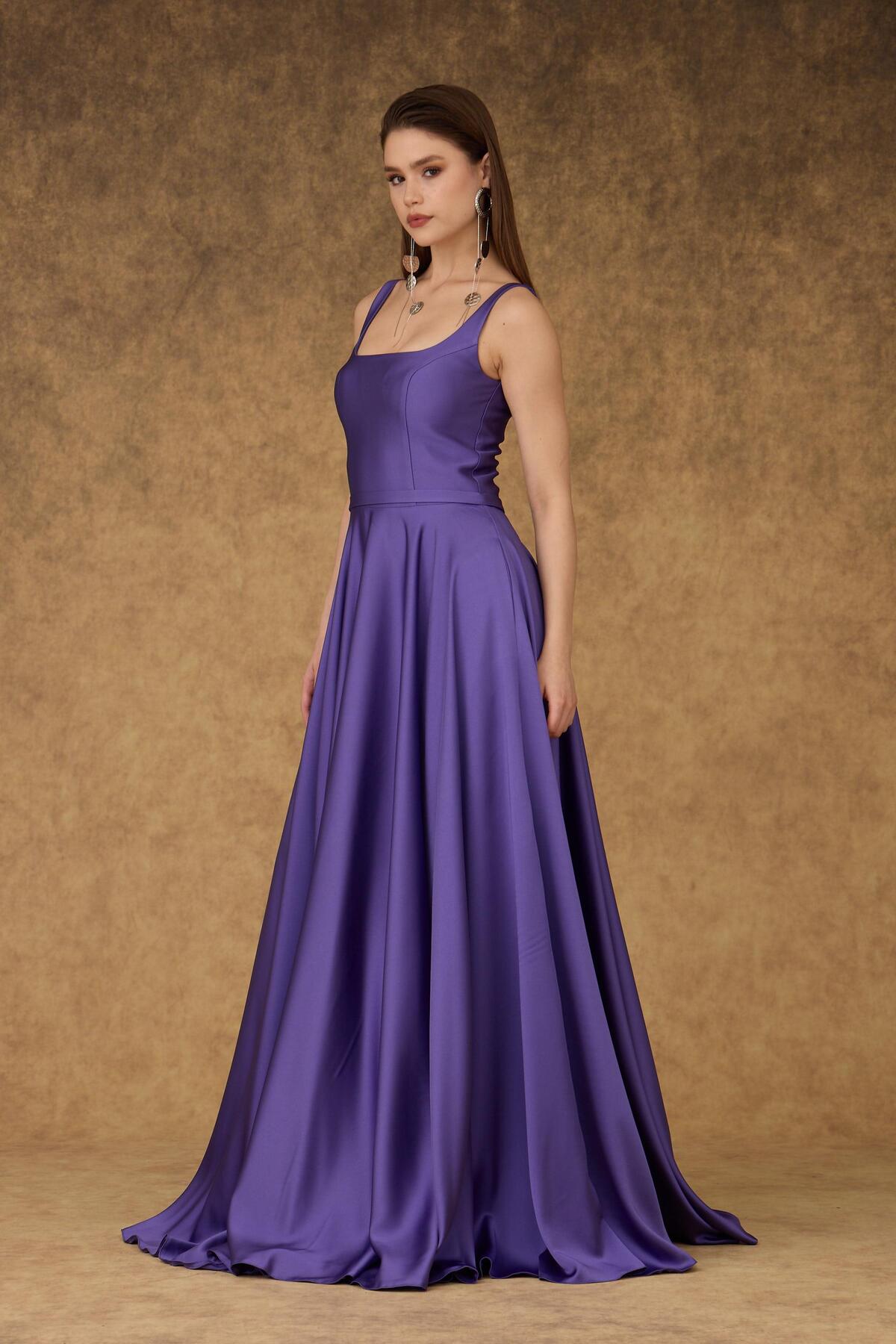Carmen Purple Square Neck Satin Evening Dress | ByTR