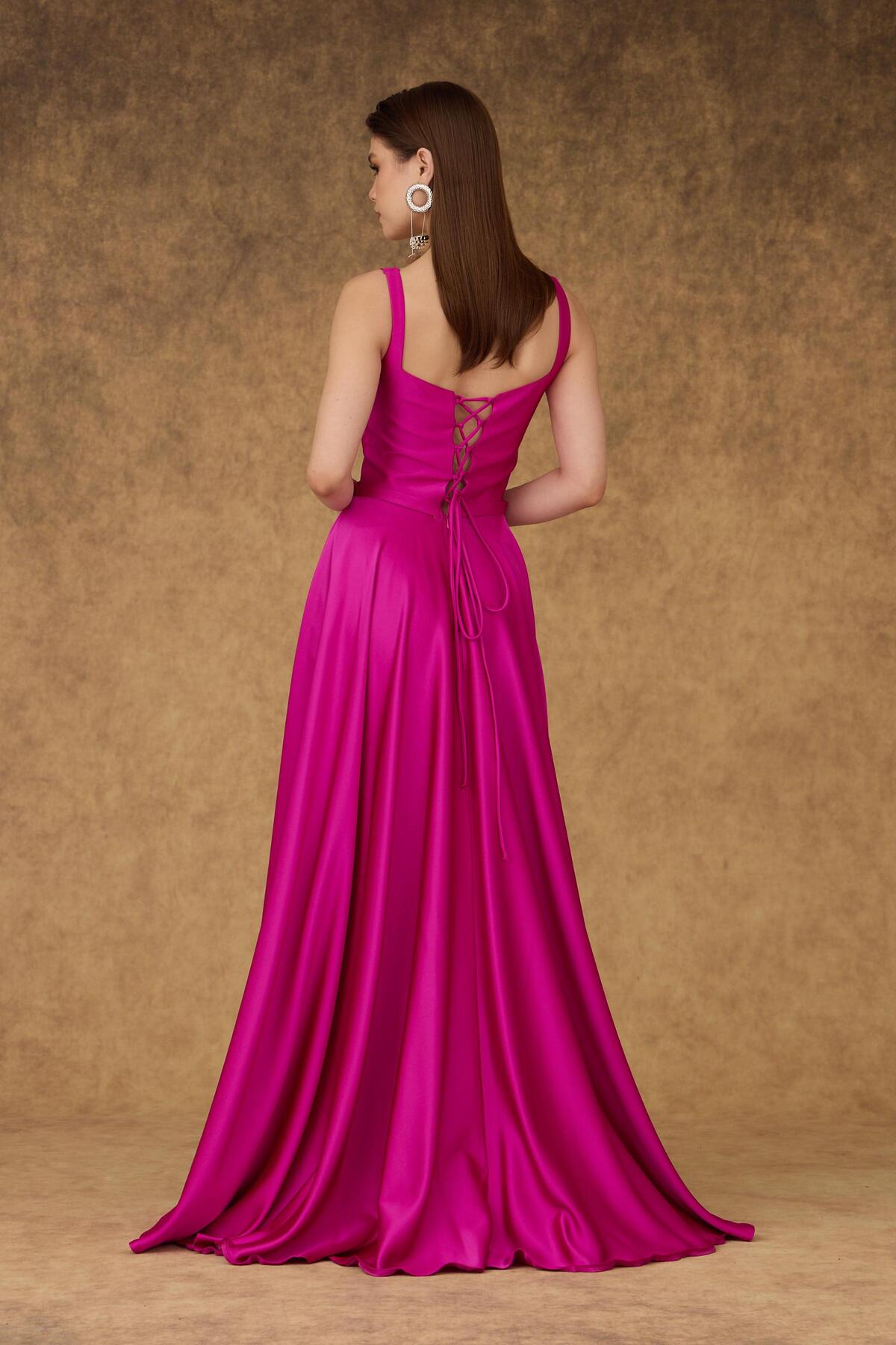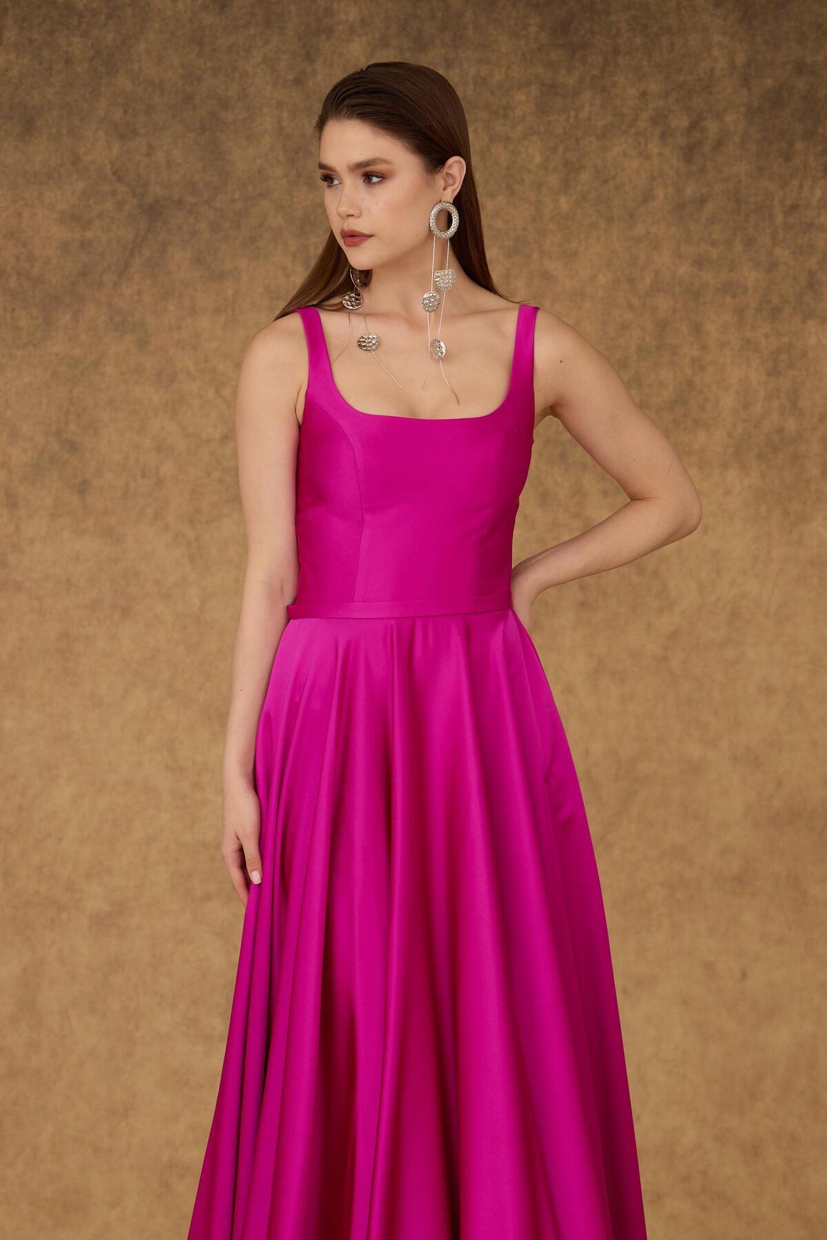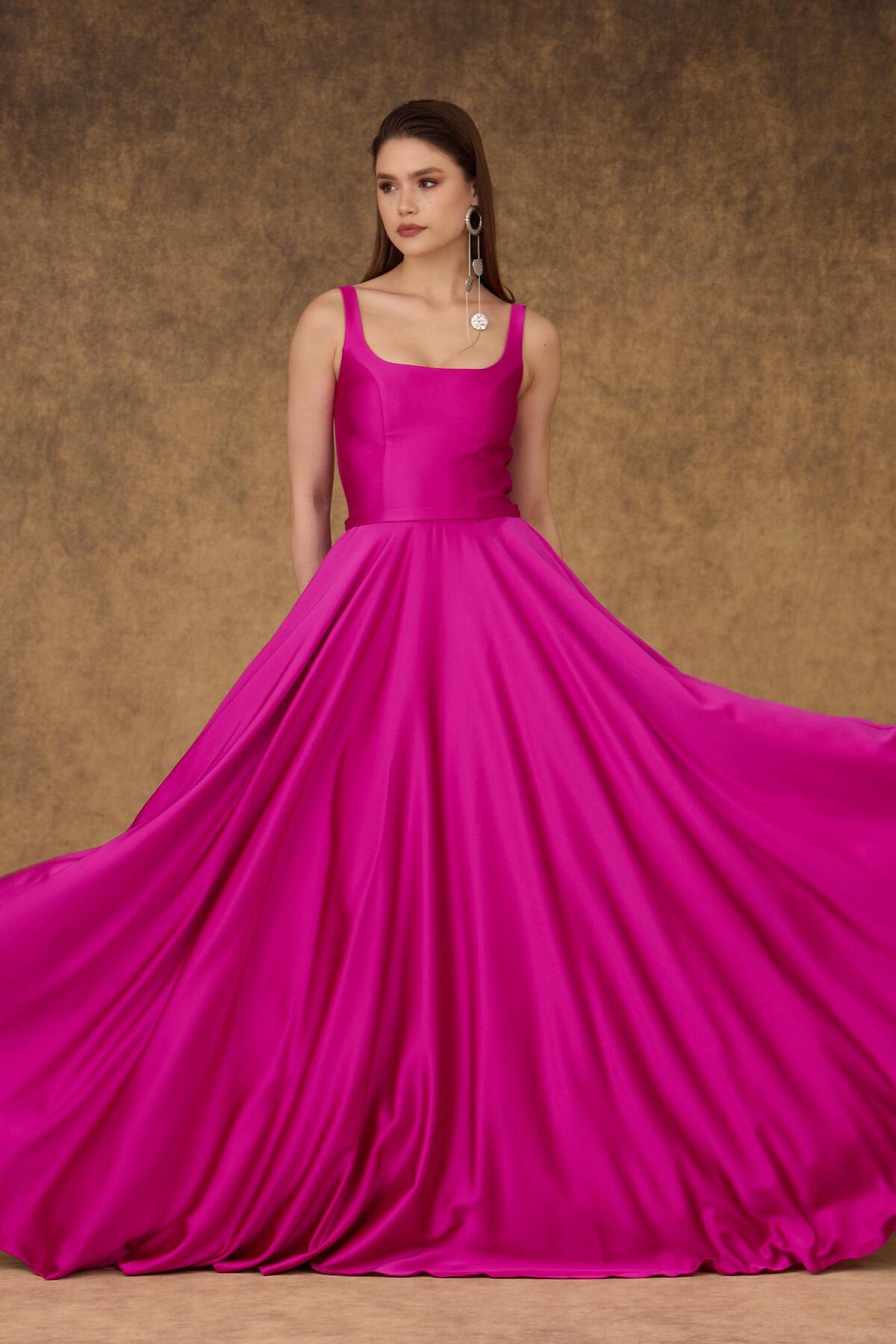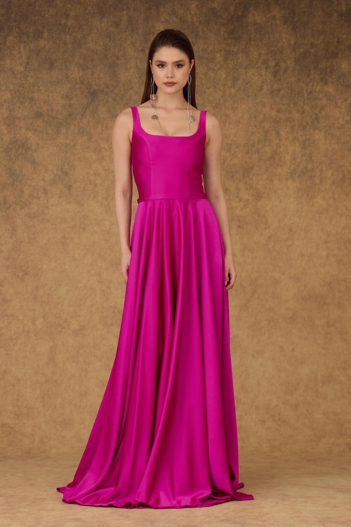 Carmen Fuchsia Square Neck Satin Evening Dress | ByTR