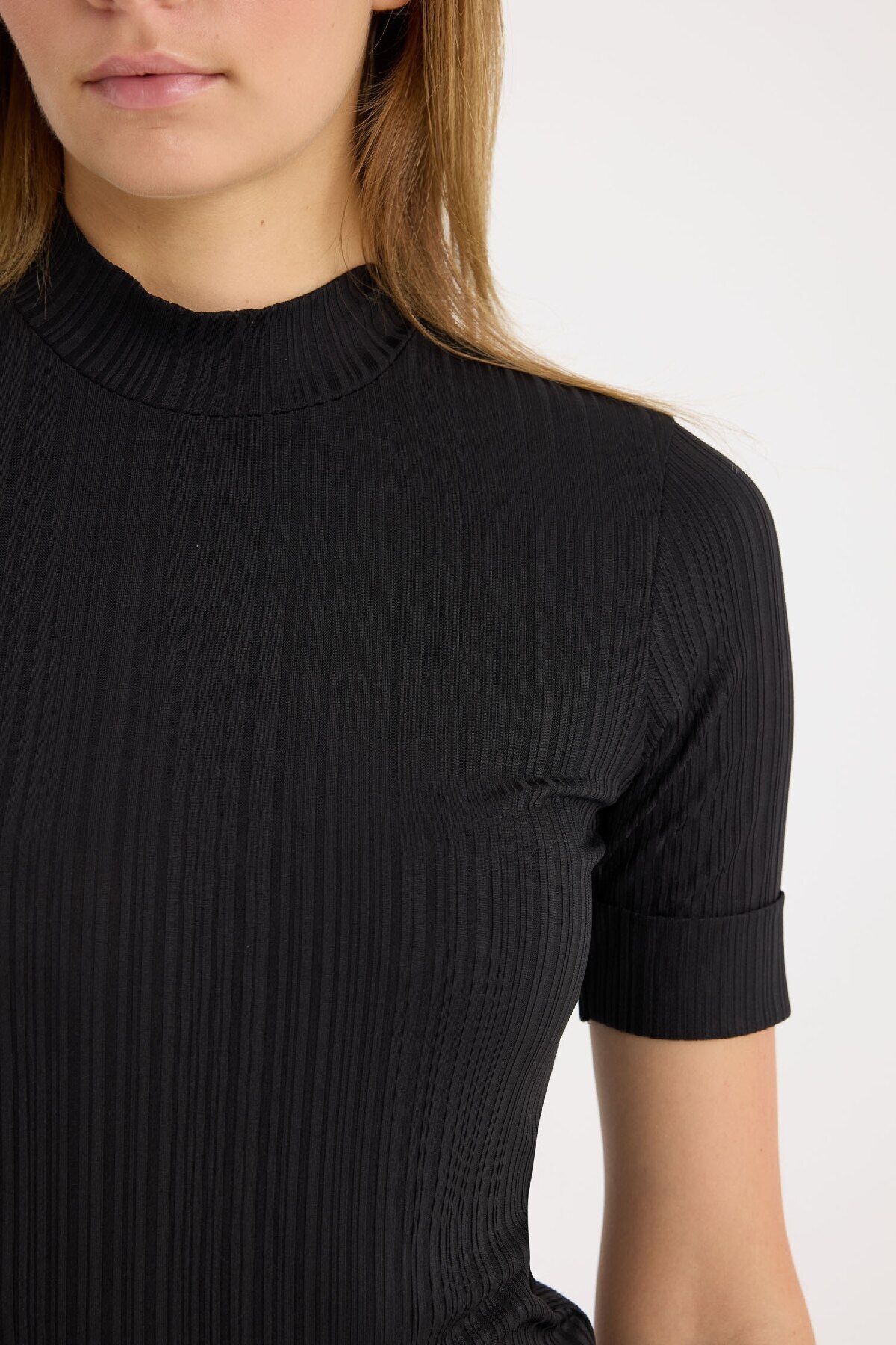 DeFacto Regular Fit Half Turtleneck Basic Plain Ribbed Camisole Short Sleeve Black T-Shirt B1177ax25sp | ByTR