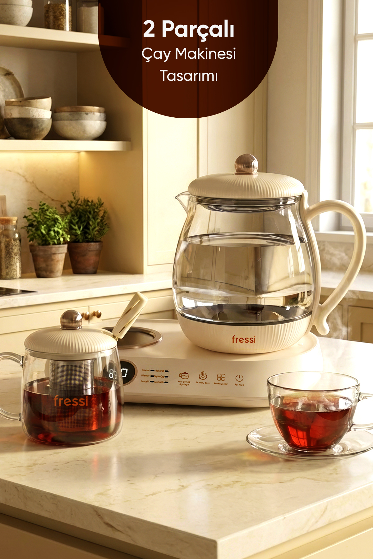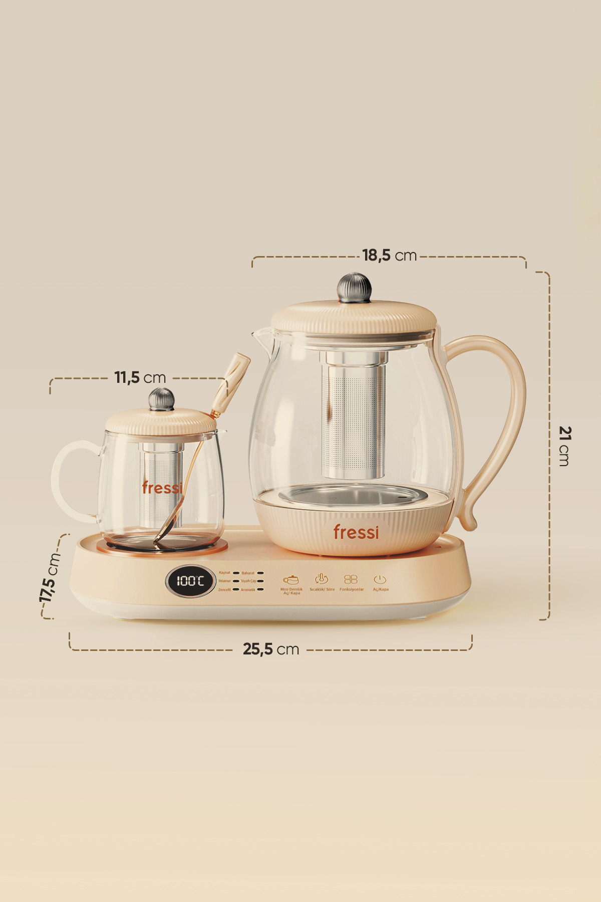 Fressi FR-CM03 Glass Cream Tea Maker with Digital Display with Stand | ByTR