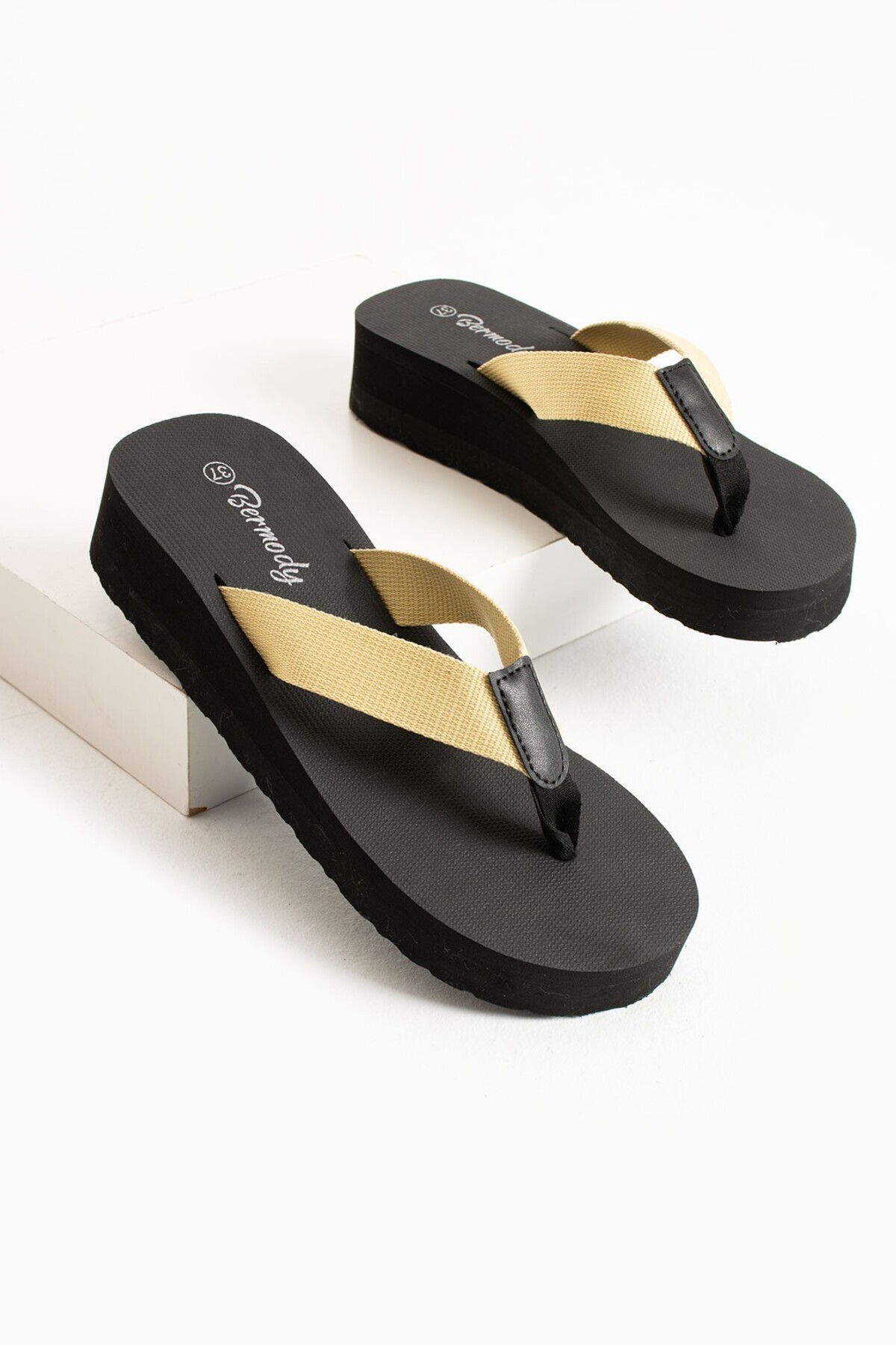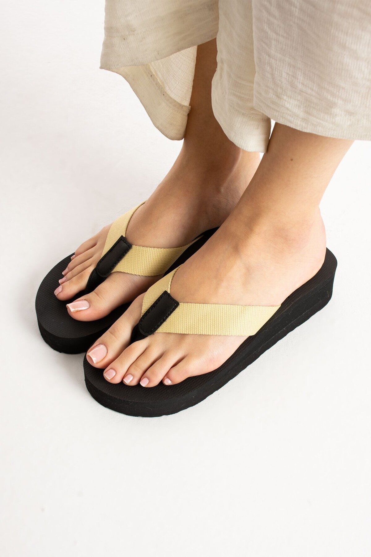 Bermody Kaila Women's Beige Platform Fill Heel 4.5cm Fabric Sleeveless Summer Pool Beach Slippers | ByTR