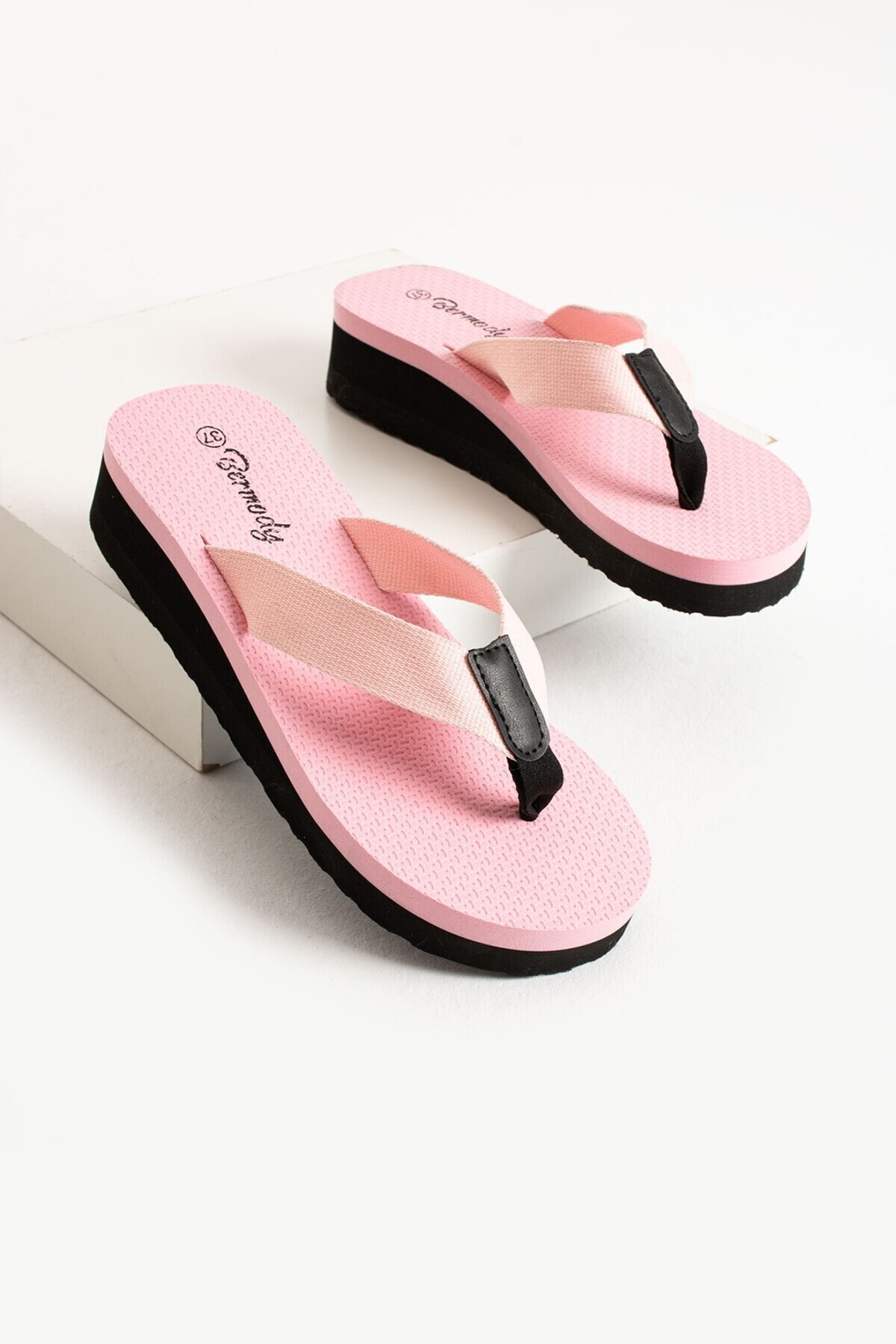 Bermody Kaila Women's Pink Platform Fill Heel 4.5 Cm Fabric Sleeveless Summer Pool Beach Slippers | ByTR