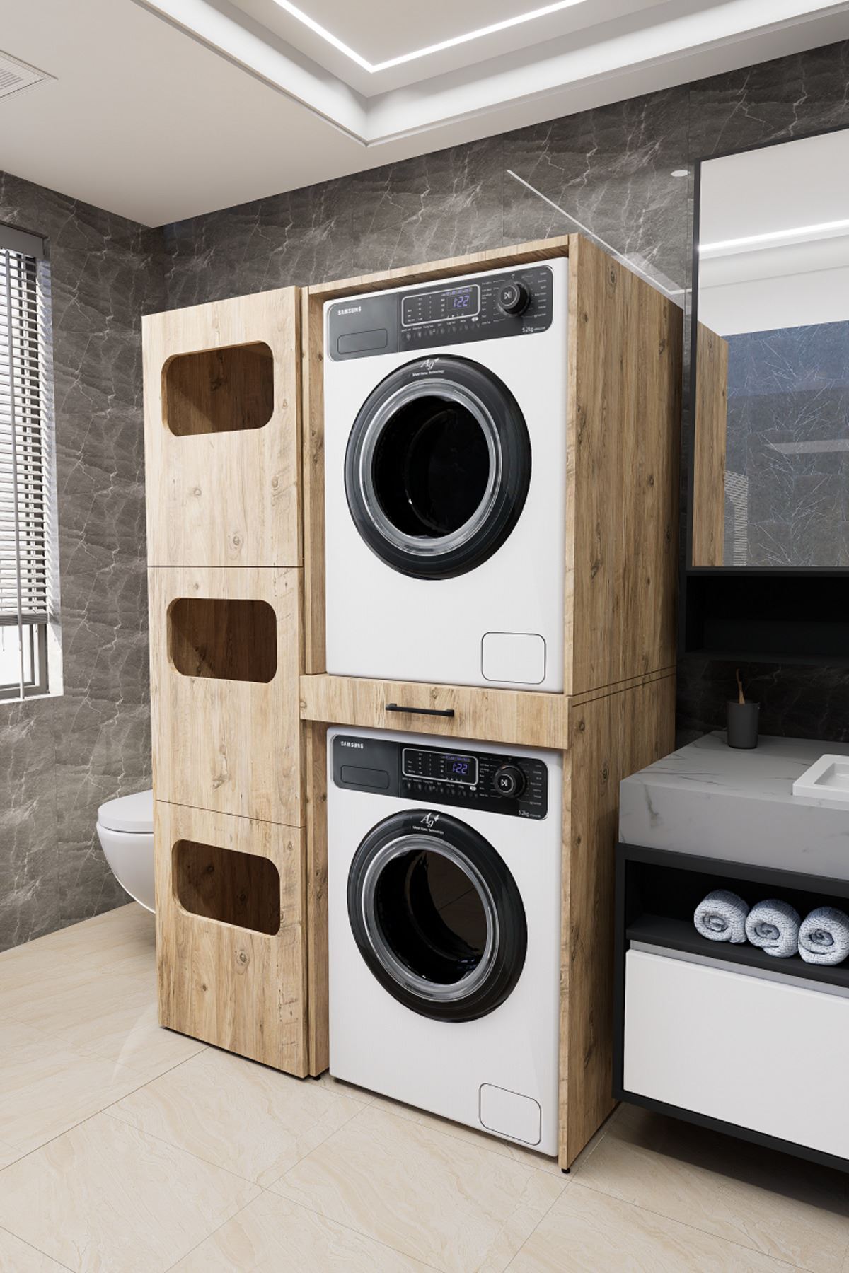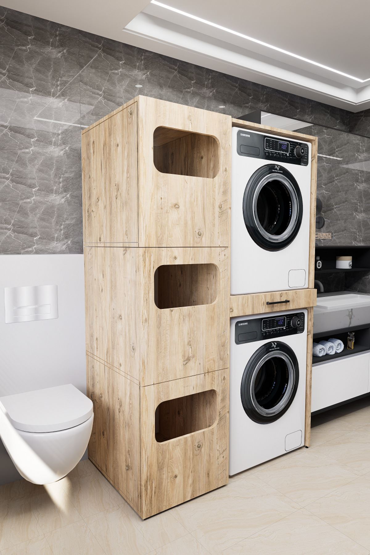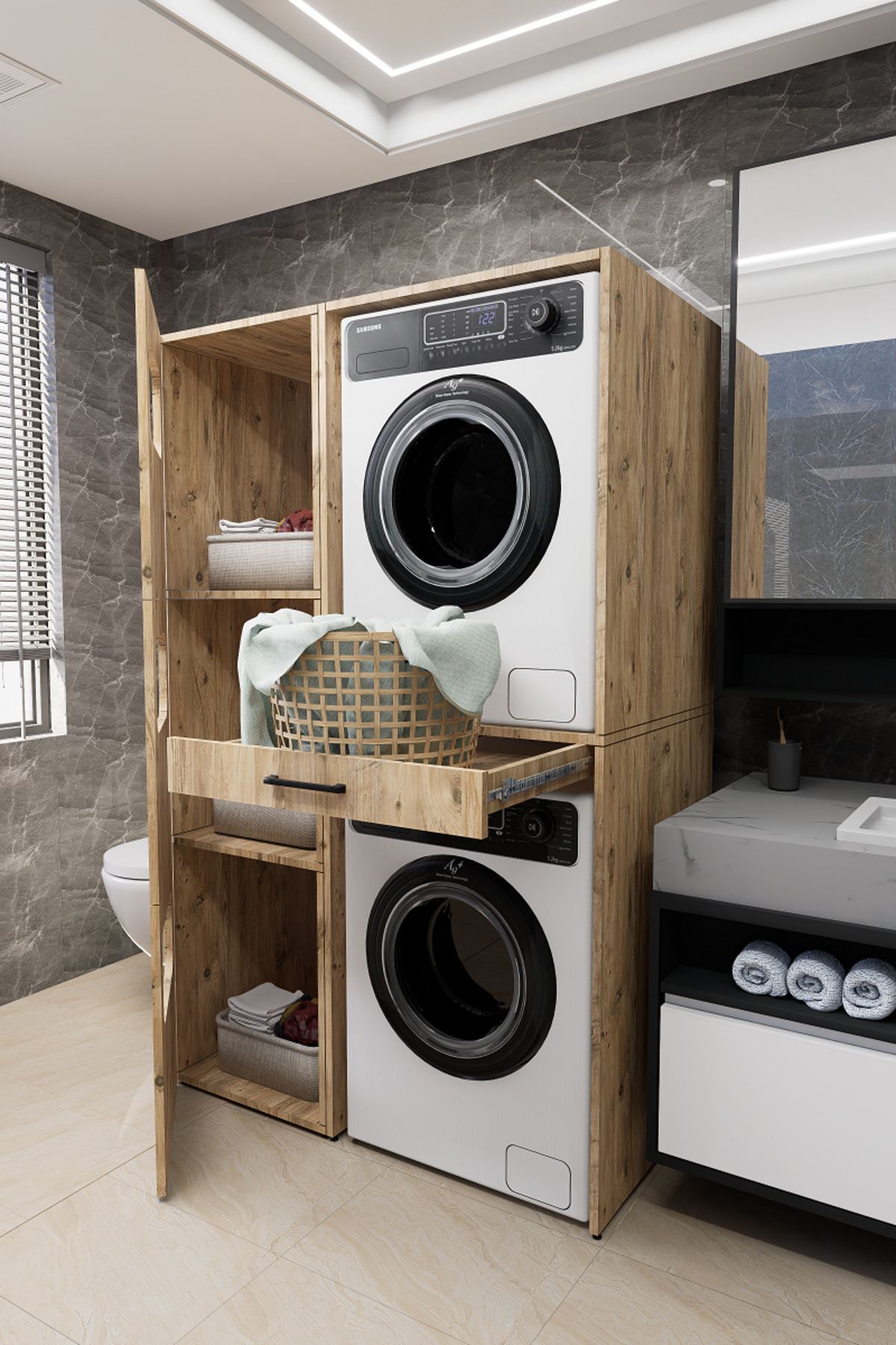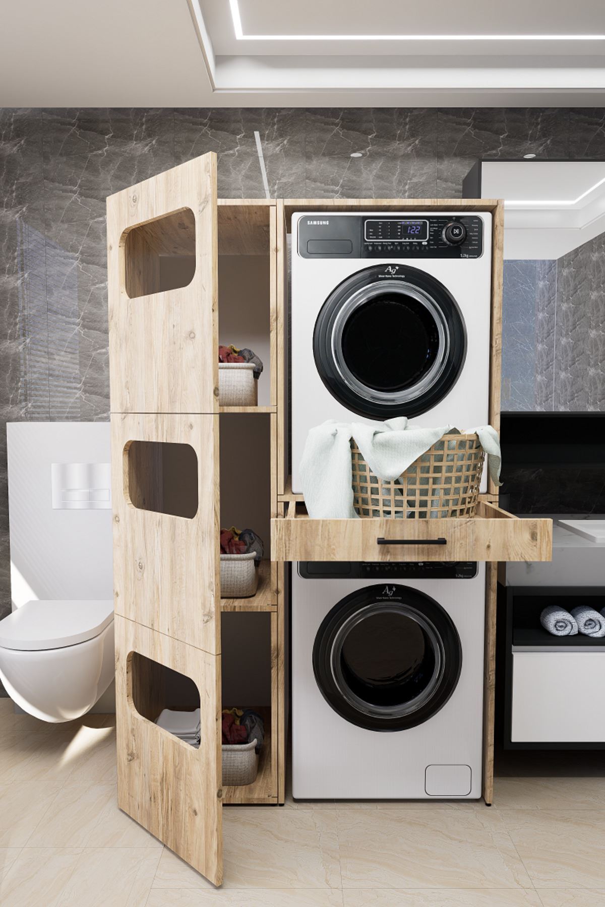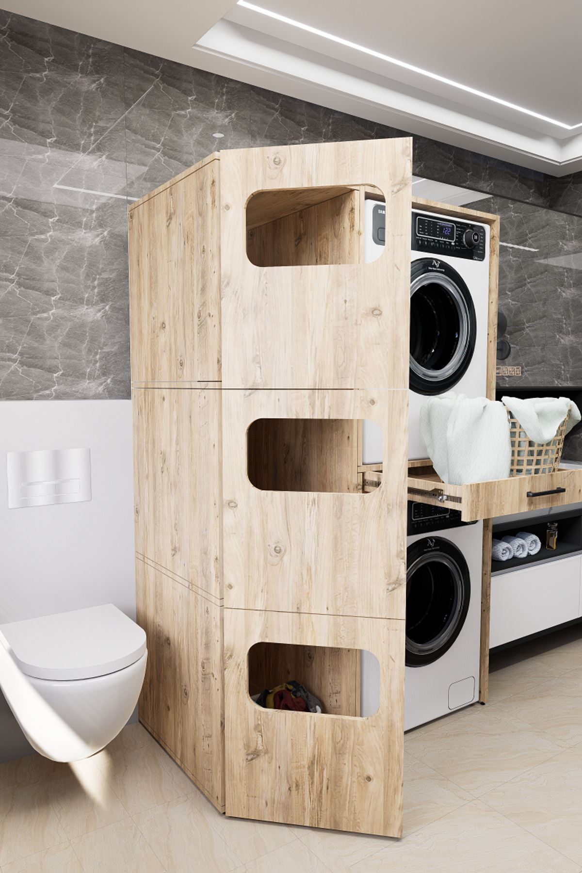 Mirobi Washbox Bathroom Dirty Basket Washing Machine Cabinet And Dryer Cabinet Pine | ByTR