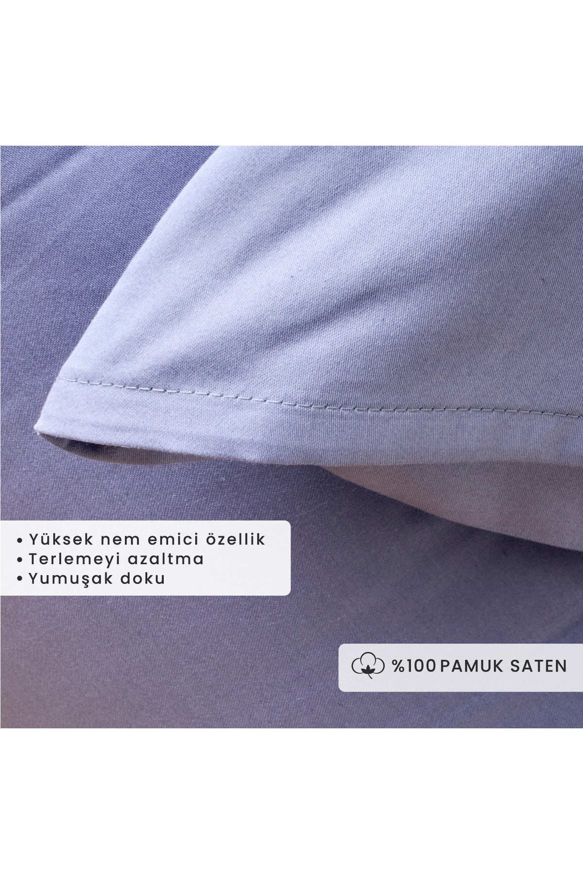 Blue 100% cotton Satin 2-Piece Pillowcase 50x70 cm in size.