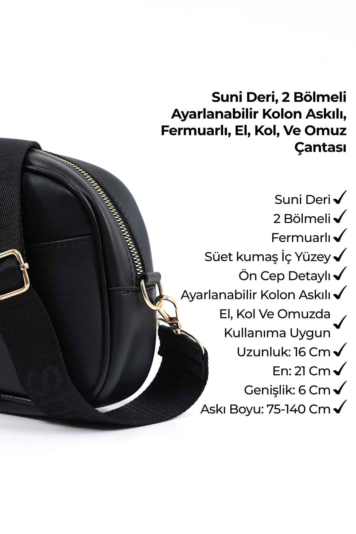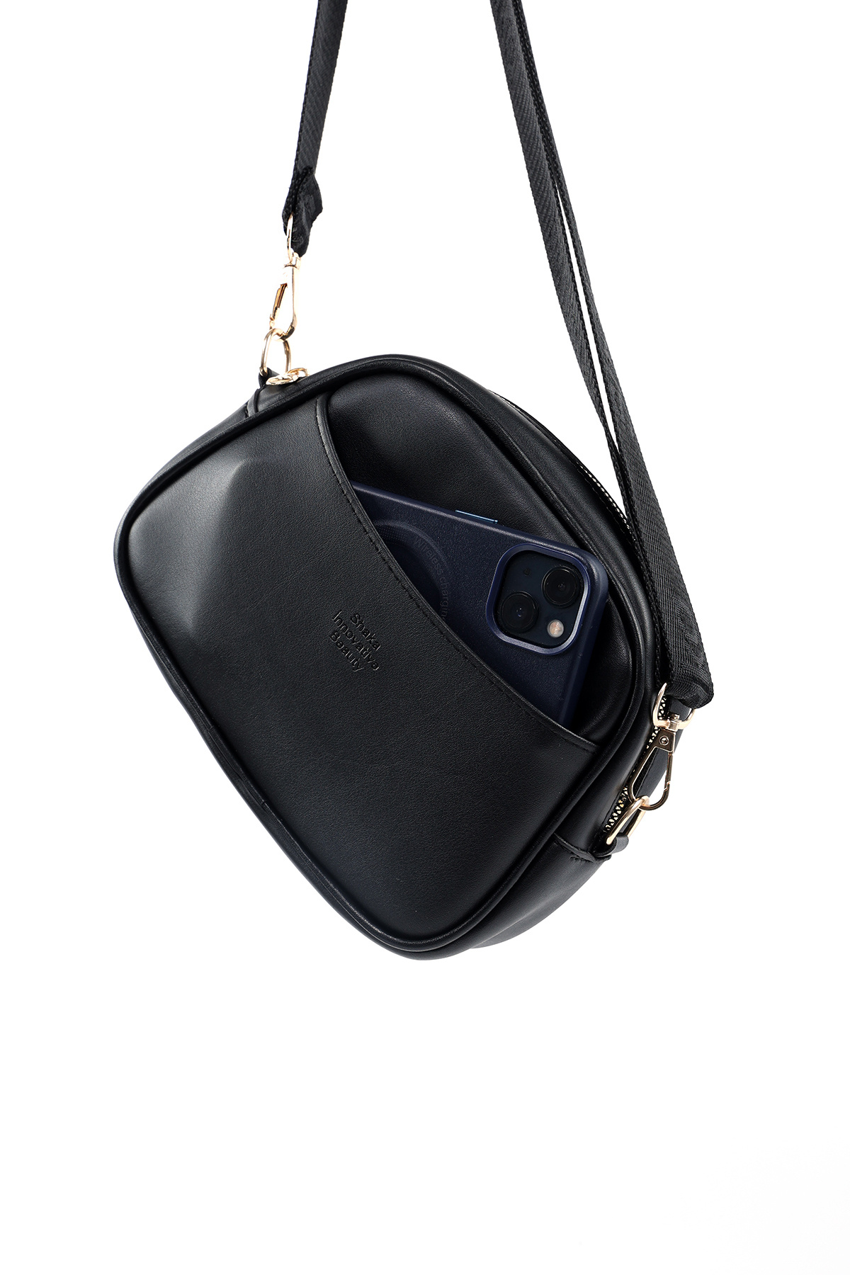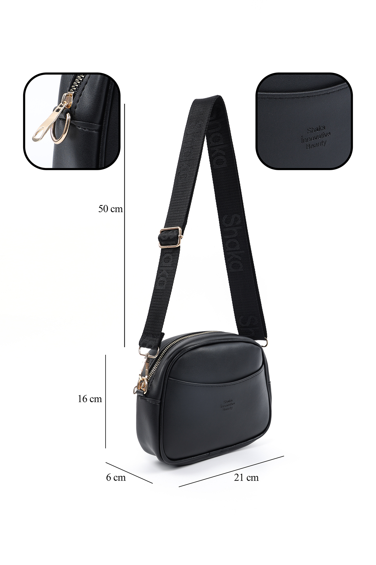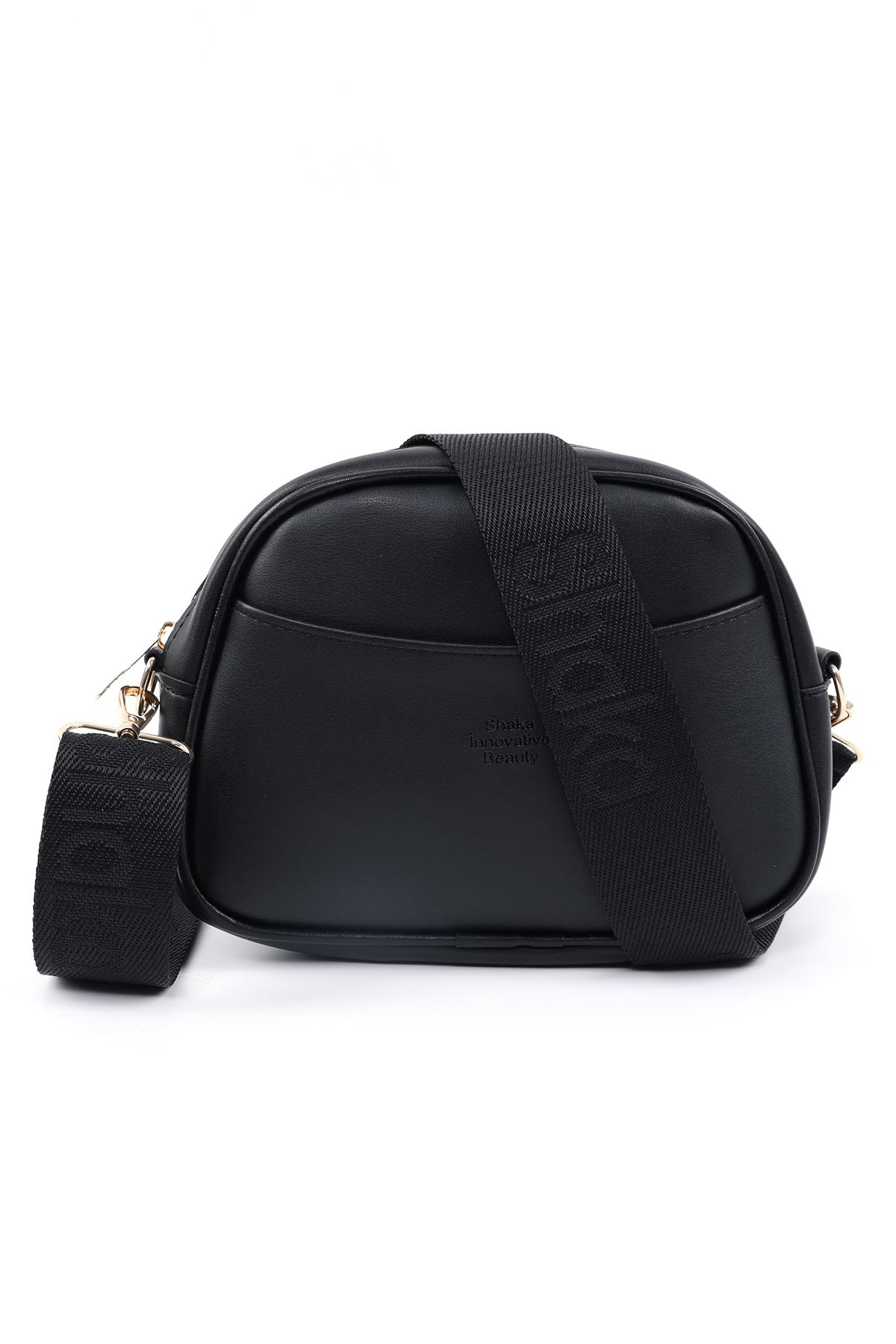 SHAKA Black SHK194 Faux Leather Zipper 2 Compartment Adjustable Column Strap Shoulder Bag | ByTR