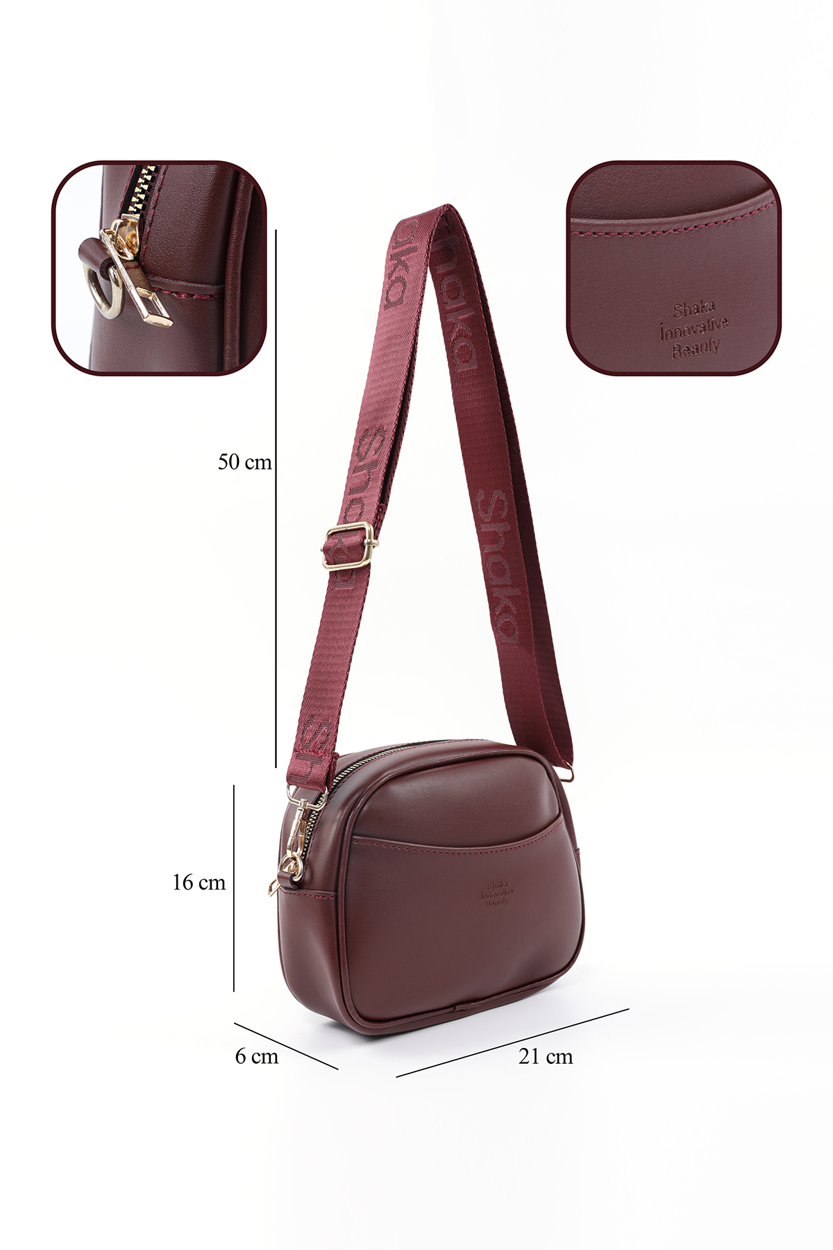 SHAKA Burgundy SHK194 Faux Leather Zipper Shoulder Bag with Adjustable Column Strap with 2 Compartments | ByTR