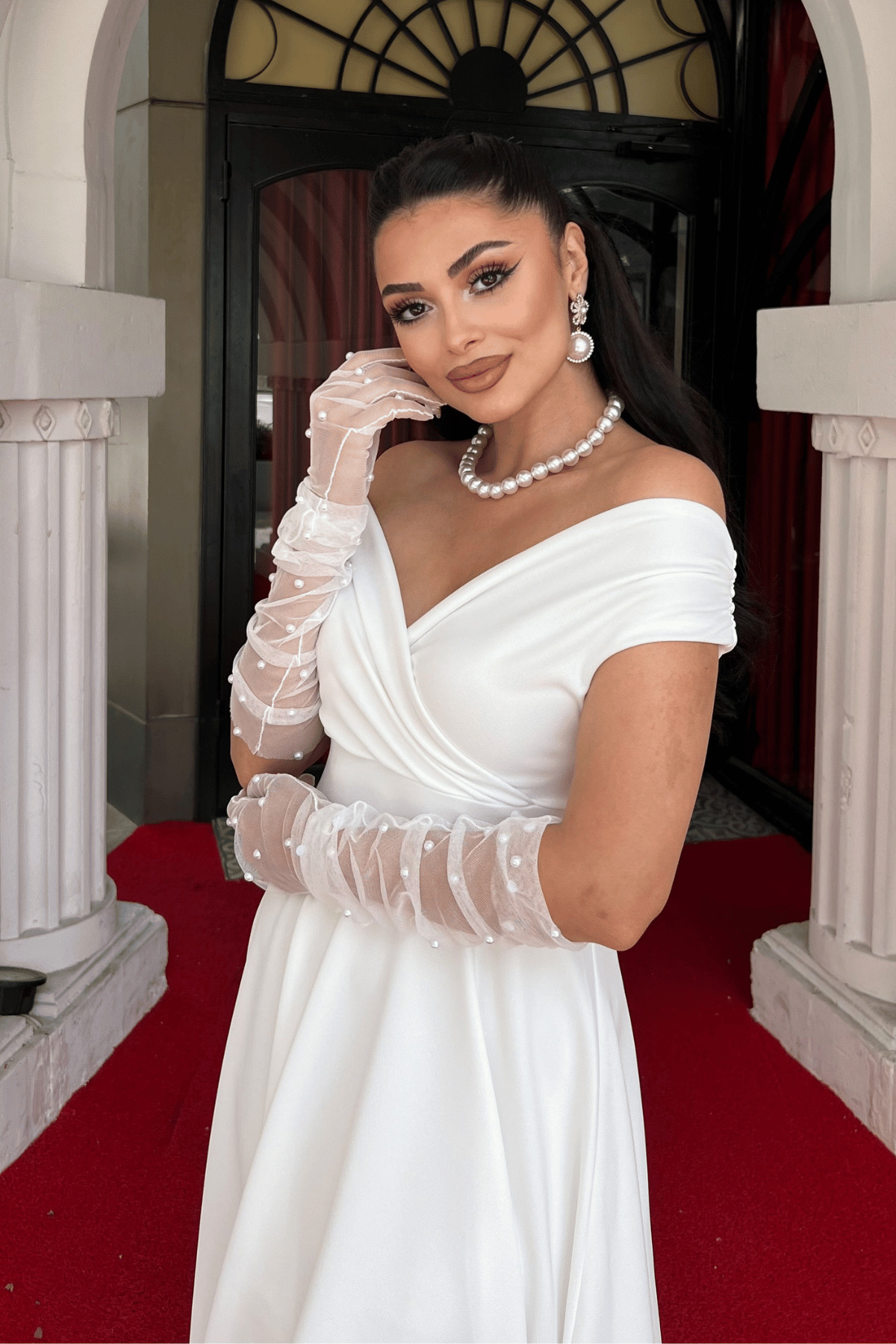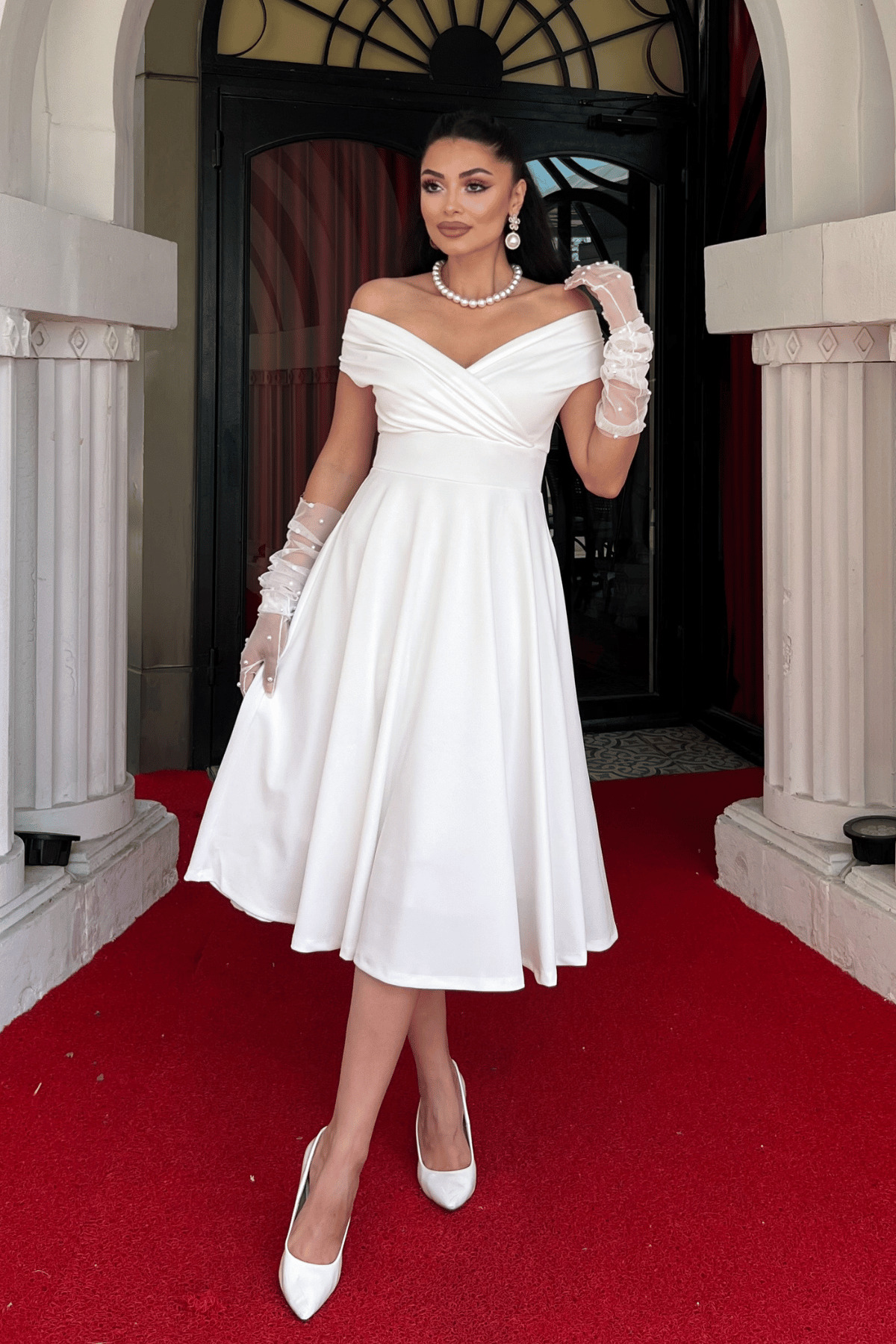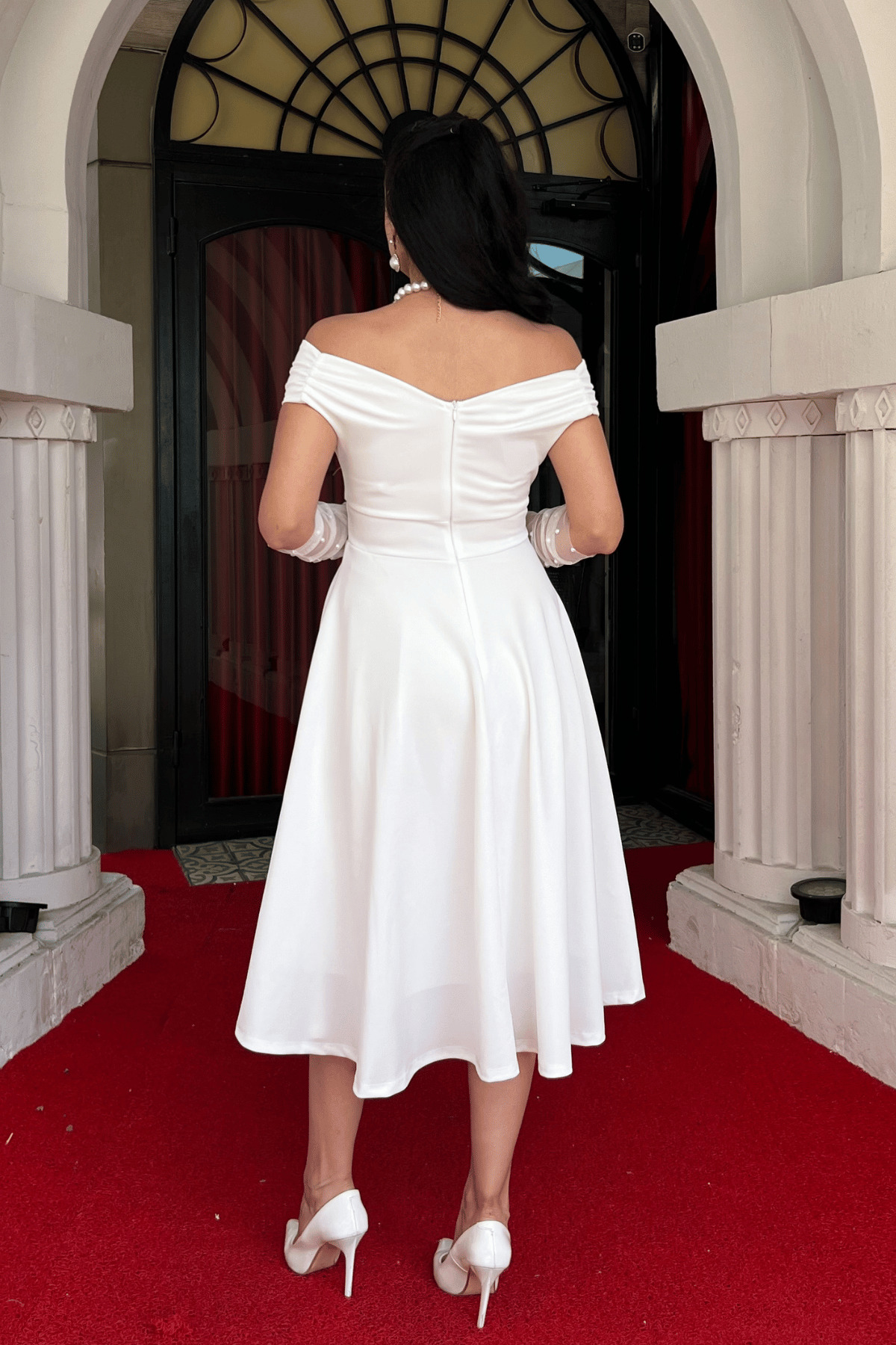 giyimmasalı Kayak Collar Midi Dress - White New | ByTR