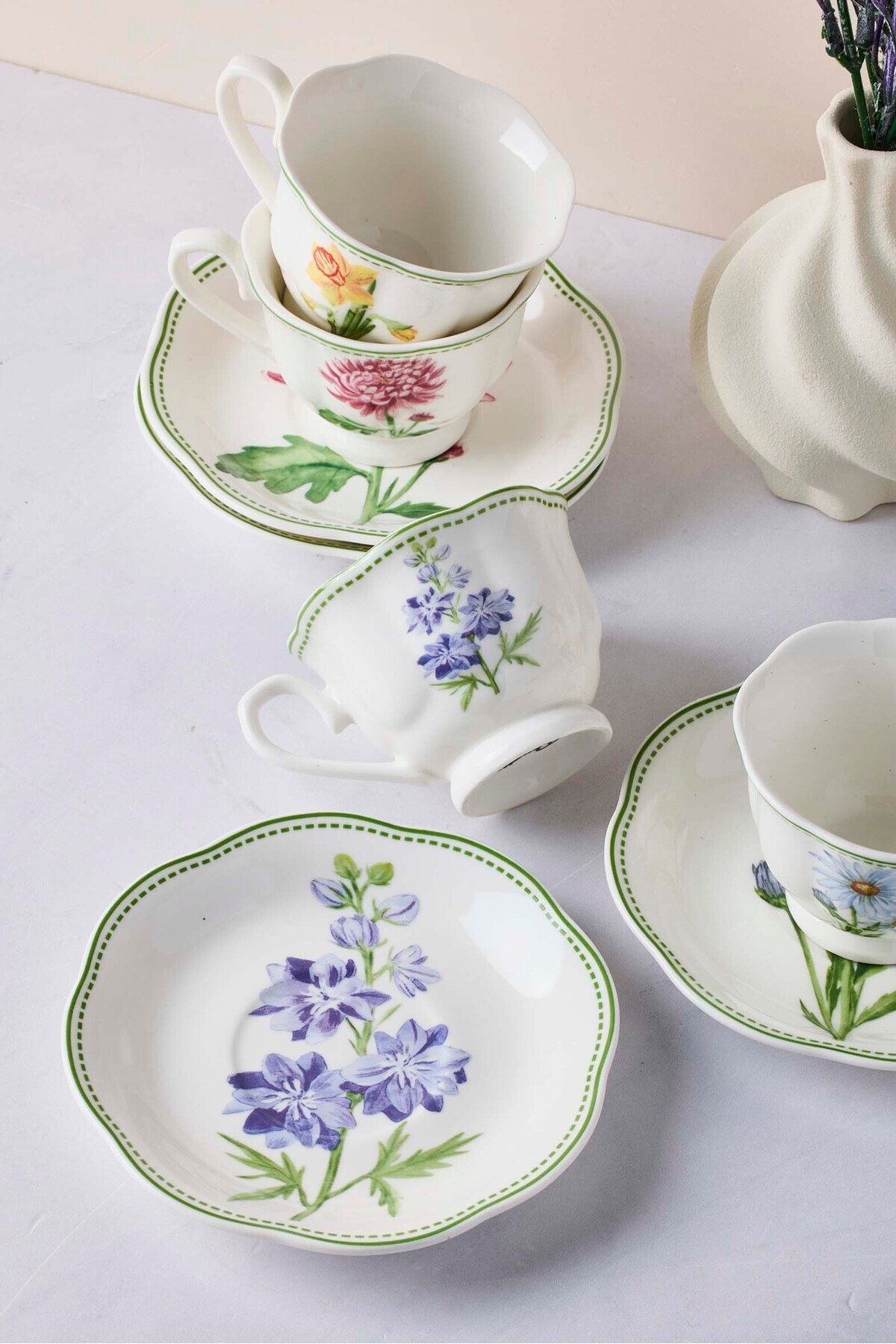 De Flore 6-Person 12-Piece Porcelain Coffee Set, which combines elegance and elegance, takes your coffee pleasure to the next level.