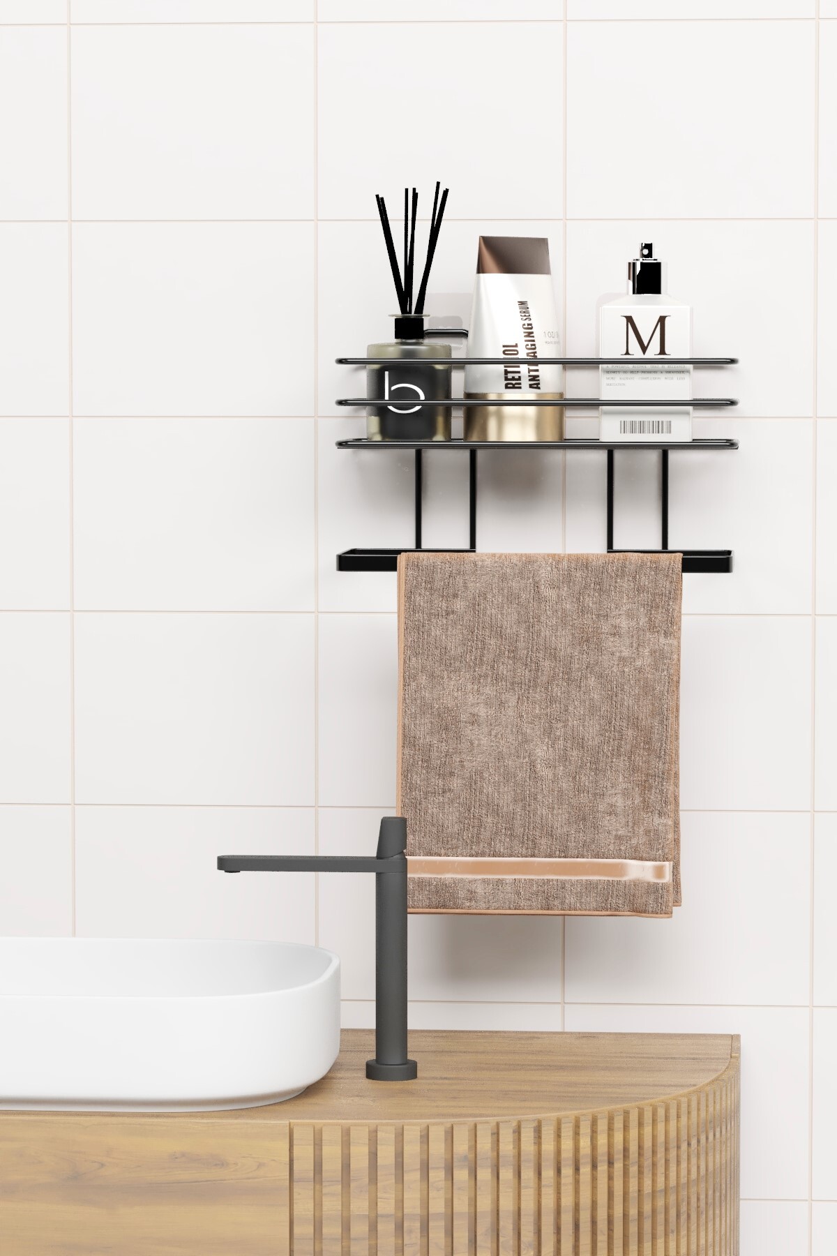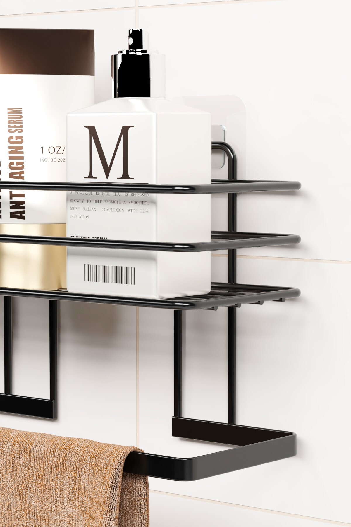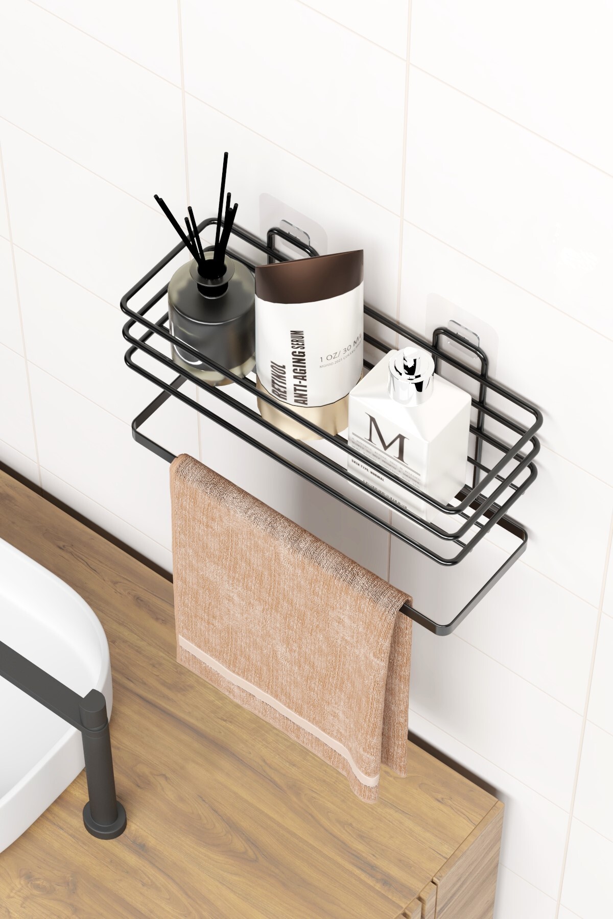 zabata Adhesive Bathroom Shelf Towel Hanger Shelf Shower Shampoo Rack Wall Organizer Organizer Towel Rack | ByTR