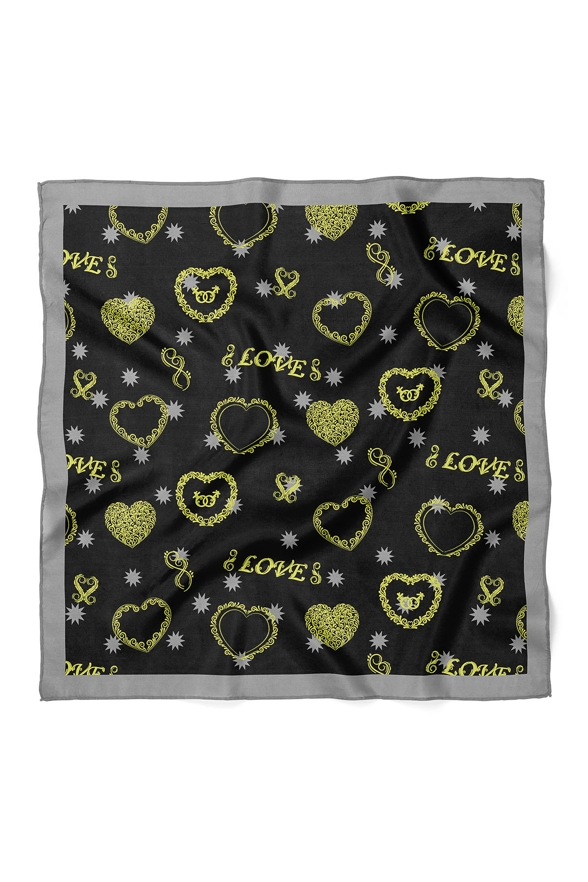 nehir eşarp Heart & Love Written Valentine's Day Special Scarf Bandana 50x50 Cm | ByTR
