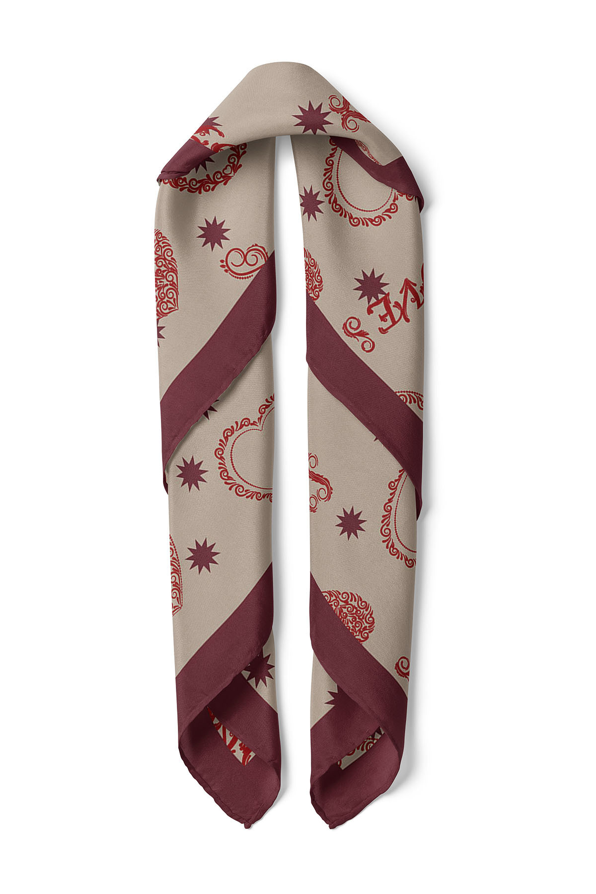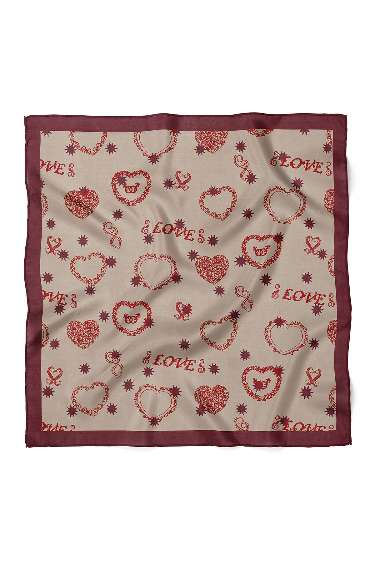 nehir eşarp Heart & Love Written Valentine's Day Special Scarf Bandana 50x50 Cm | ByTR